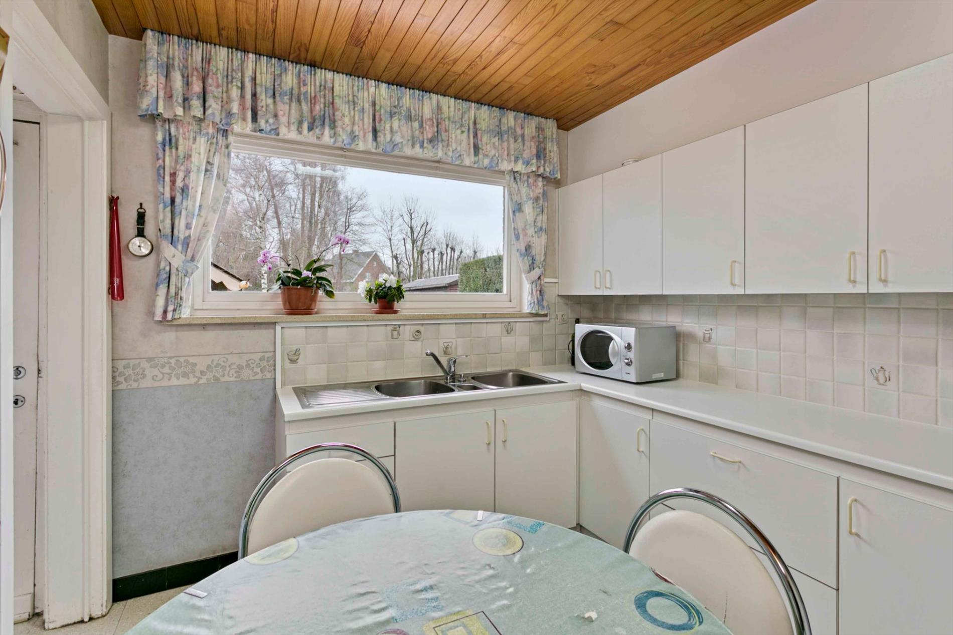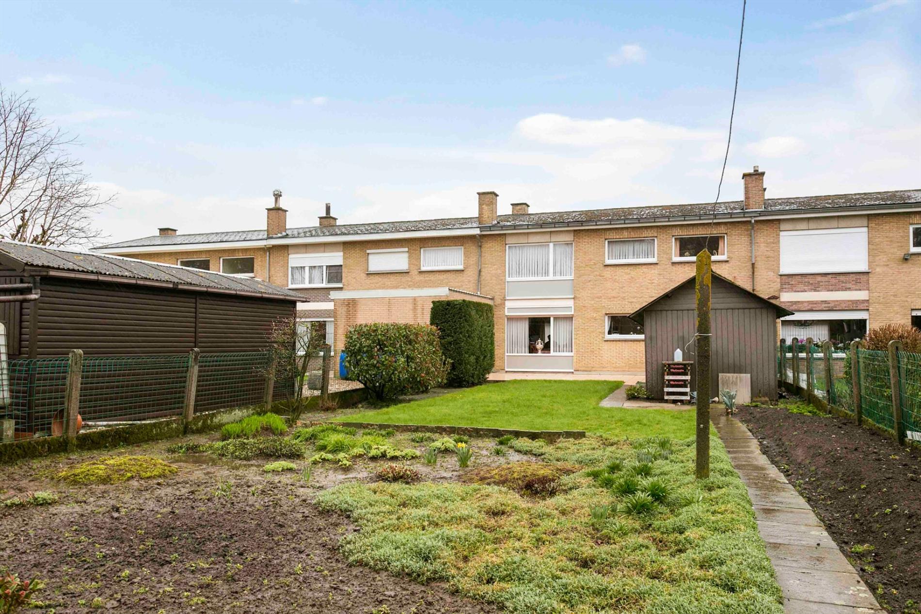 Nabij het centrum van Moorsele vinden we deze woning met mogelijkheden. Via de voortuin komen we de woning binnen in de hal met apart gastentoilet. De living reikt van voor- tot achtergevel en is door de grote ramen zeer lichtrijk. Aansluitend vinden we de eenvoudige keuken, langswaar we naar de garage kunnen. Via de keuken kunnen we ook naar de grote tuin. Er is een ruim tuinhuis, mooi terras en voldoende privacy!