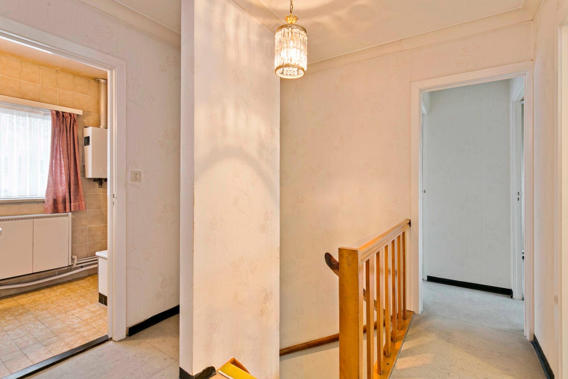 De eerste verdieping beschikt over een badkamer met lavabo, toilet en ligbad. Verder zijn er nog 5 kamers, die volgens de nood ingericht kunnen worden als slaapkamer, dressing, bureau, berging,....