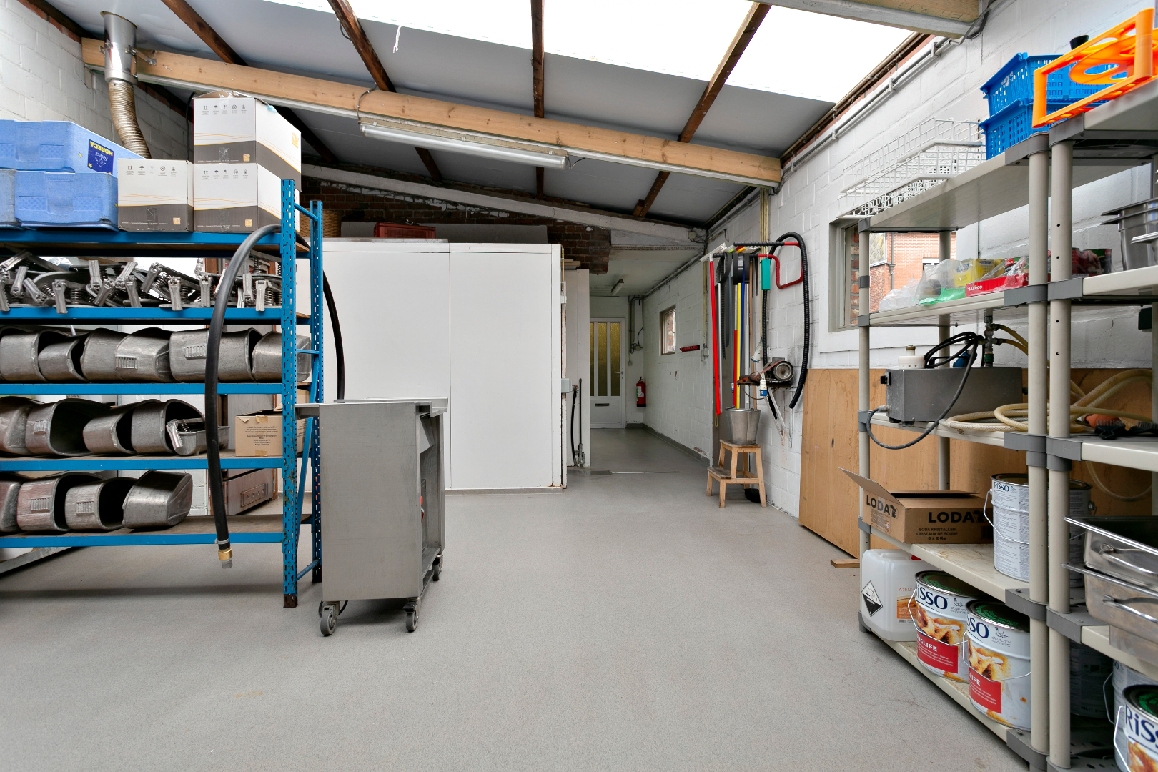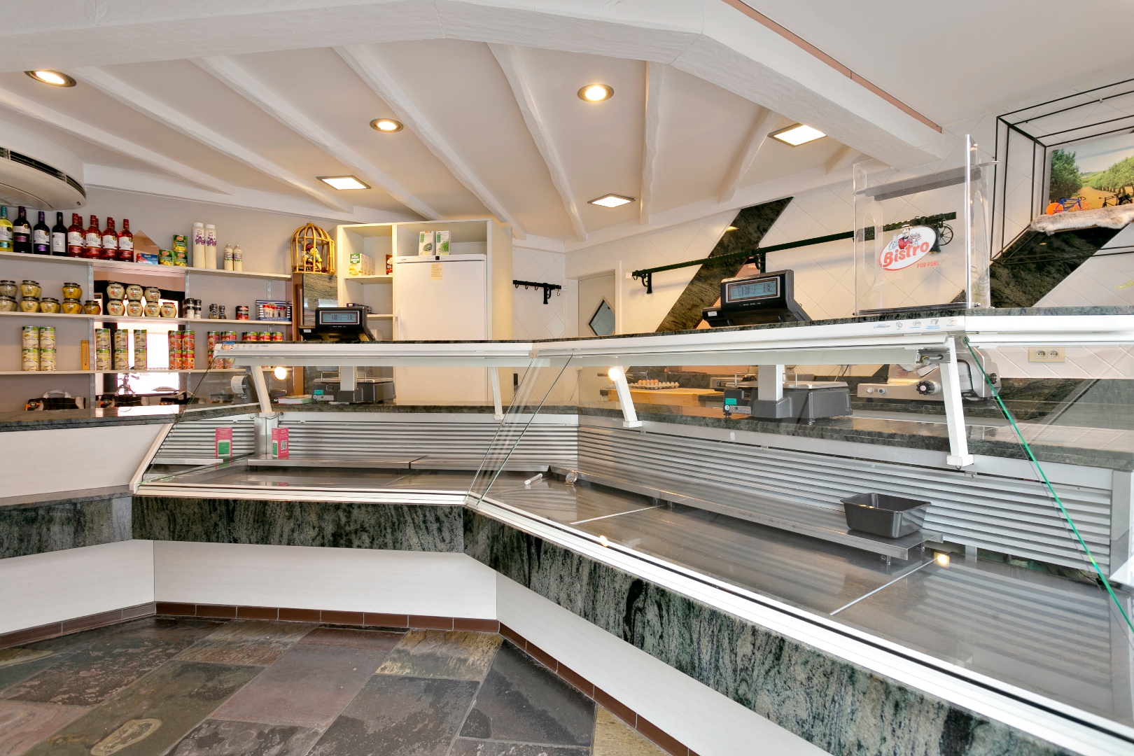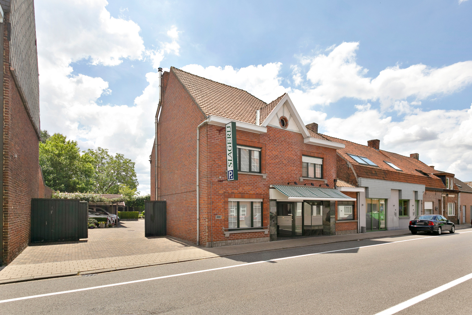 Dit eigendom bestaat op vandaag uit een slagerij met woonst in een oase van rust. Vooraan vinden we de winkel met aansluitend de ateliers, frigo's, stockage,.... Dit alles is ook langszij bereikbaar.