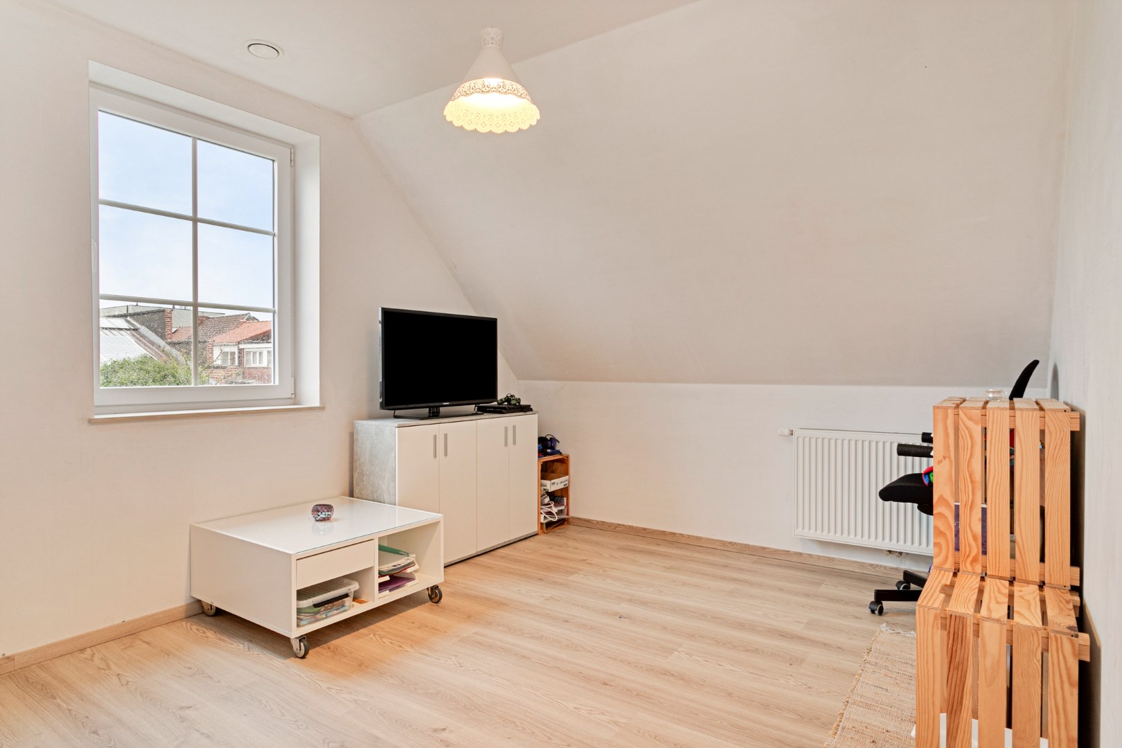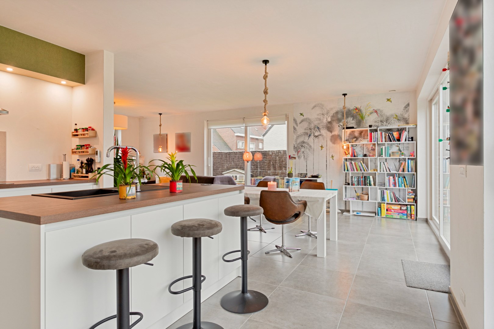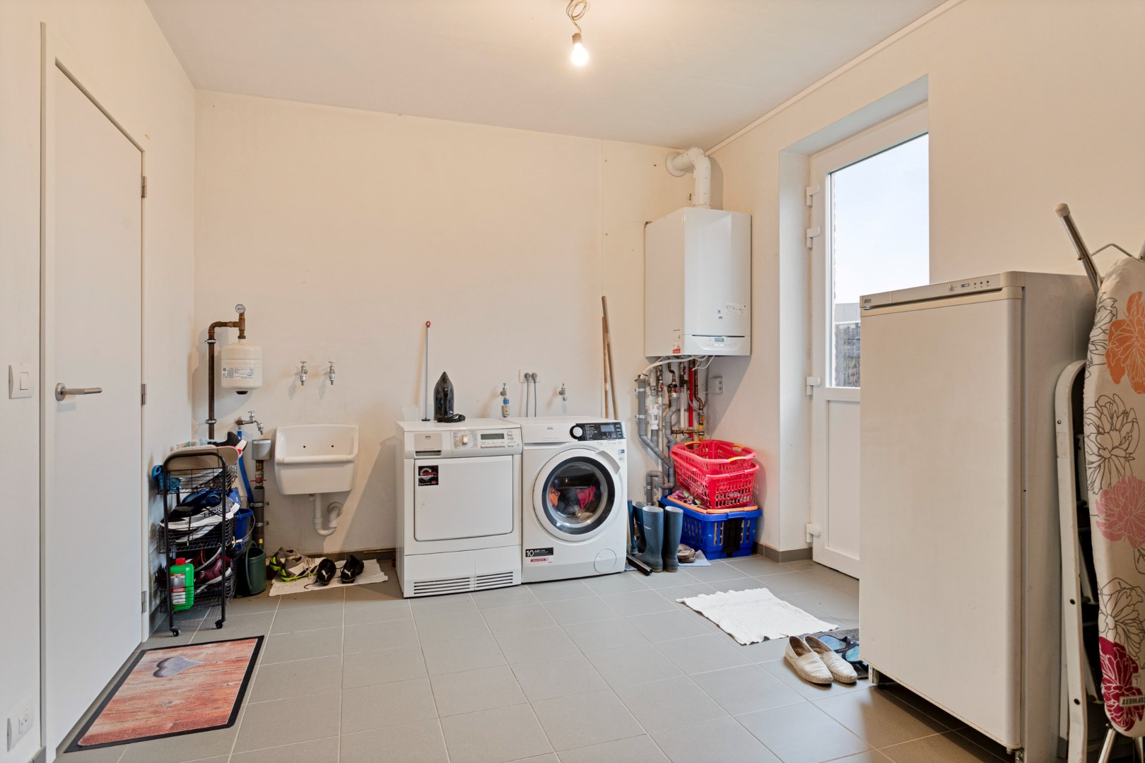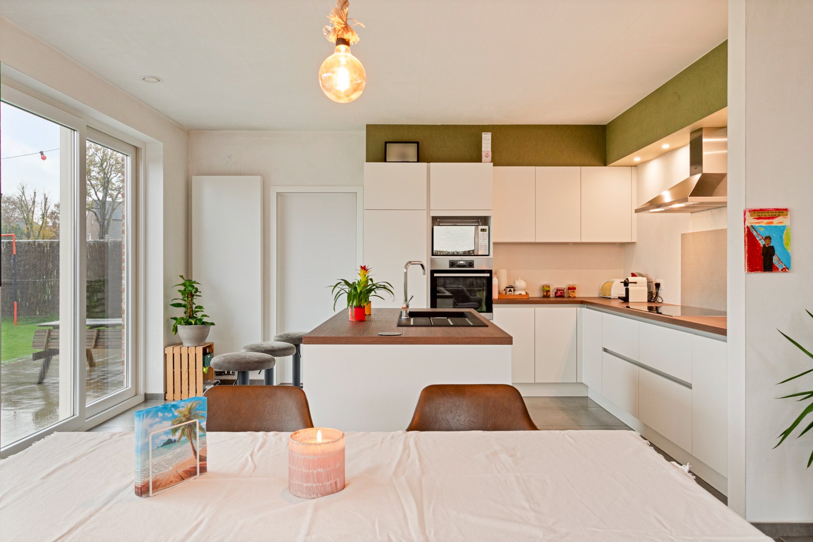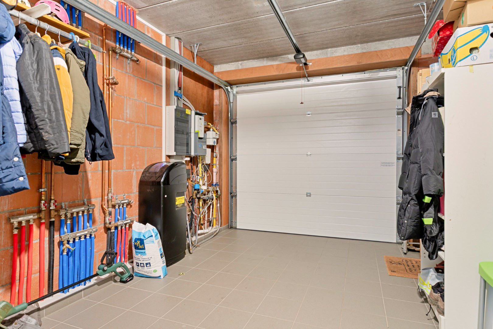 De lichtrijke living is ruim, strekt zich uit van voor- tot achtergevel en biedt een mooi zicht op de tuin. De leefruimte gaat over in de mooie open keuken. Aangrenzend vinden we een grote berging met daarbij een inpandige garage met elektrische poort.