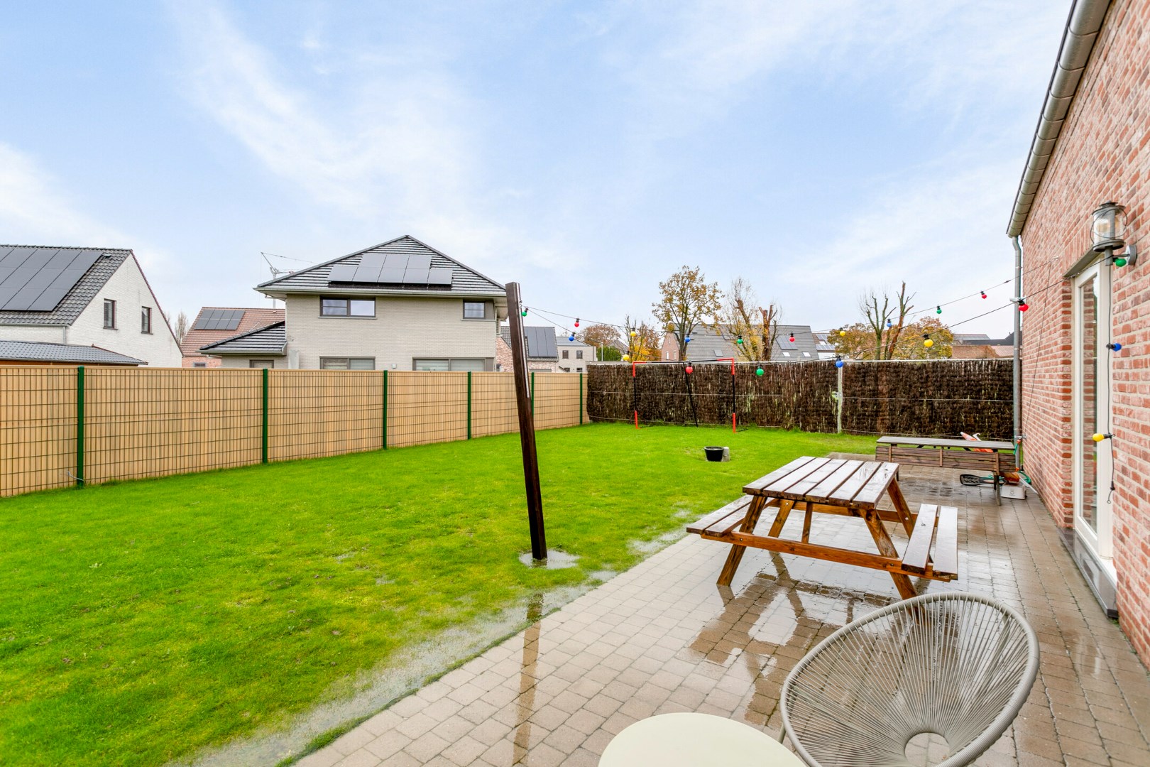 De tuin is voorzien van een terras, volledig omheind en via een poortje achteraan kunnen we naar een leuk speelpleintje in de nieuwe wijk. Dankzij de ideale westoriëntatie is het de hele dag genieten van de zon!