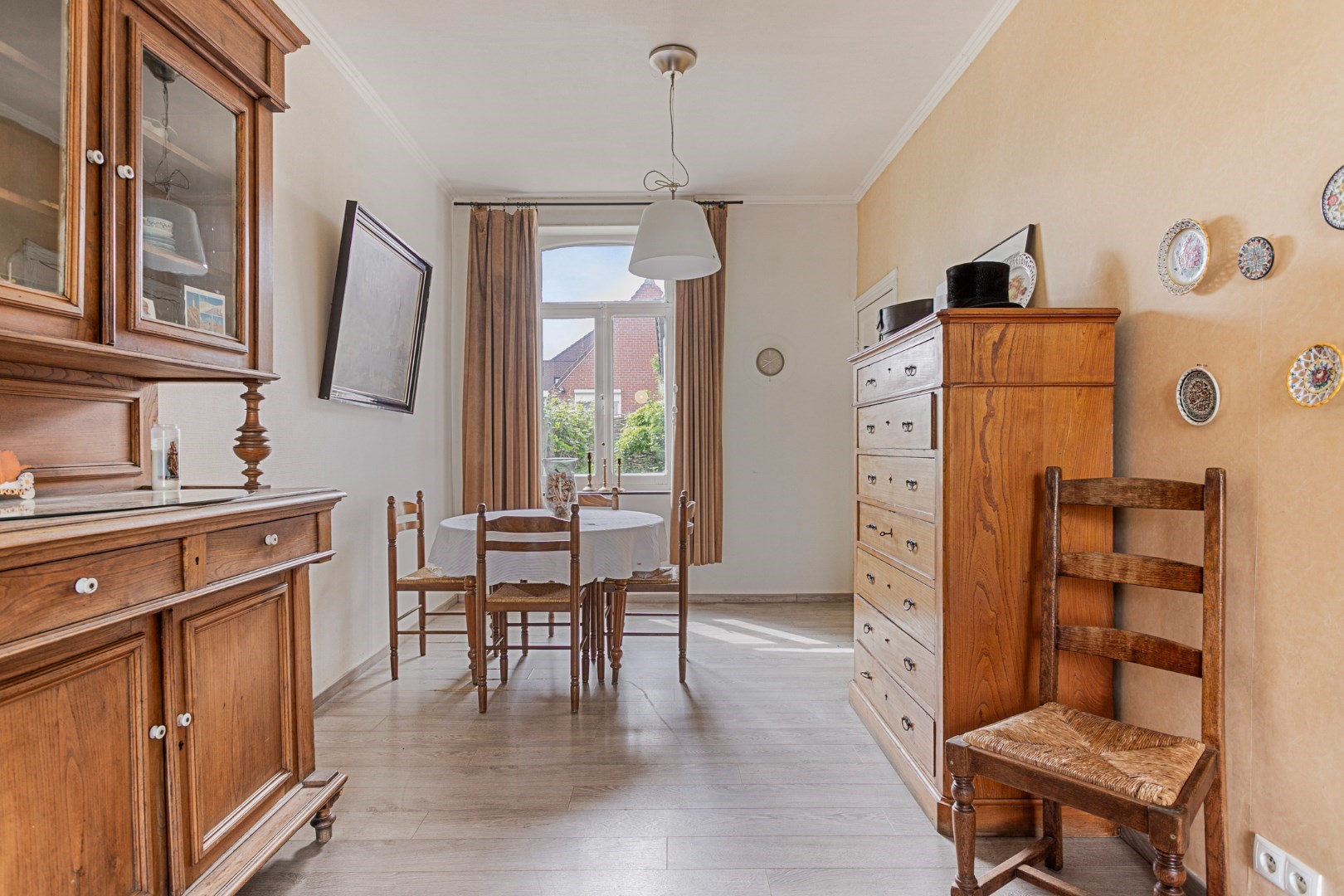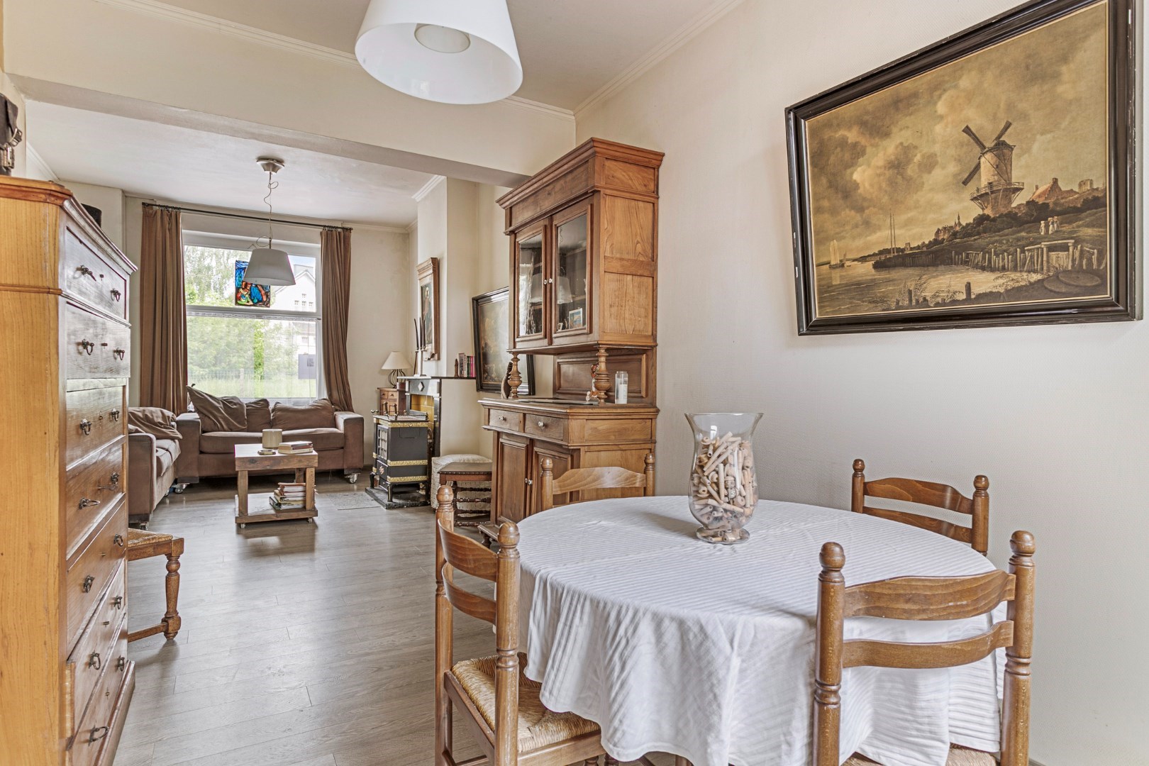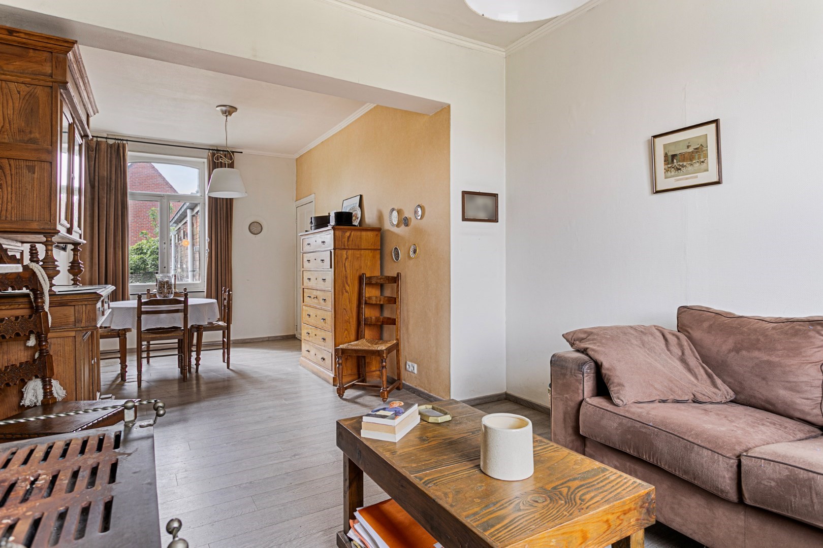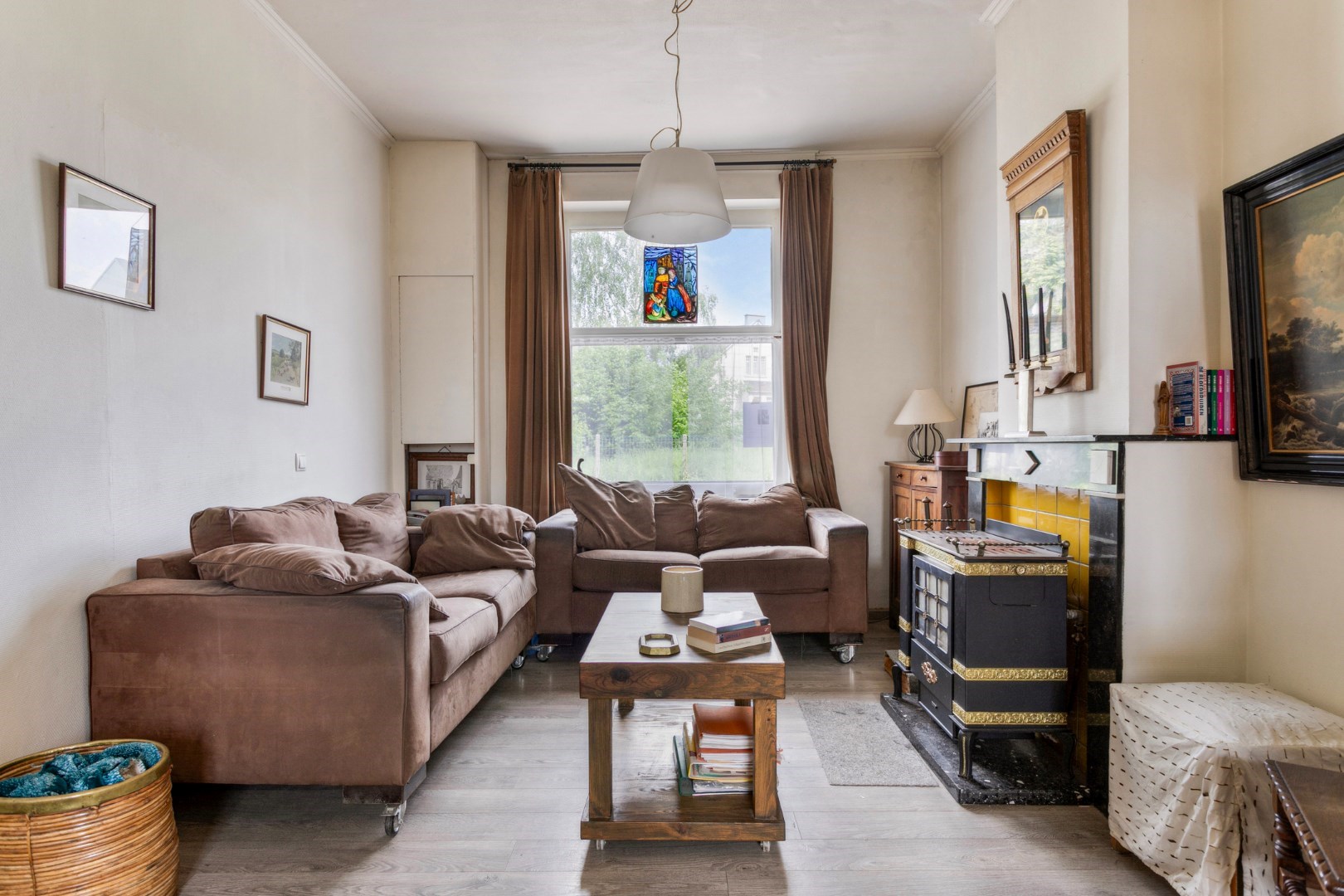 De living is lichtrijk en kijkt achteraan uit op de stadstuin. De mooie gaskachel past er in de geest van de woning.
