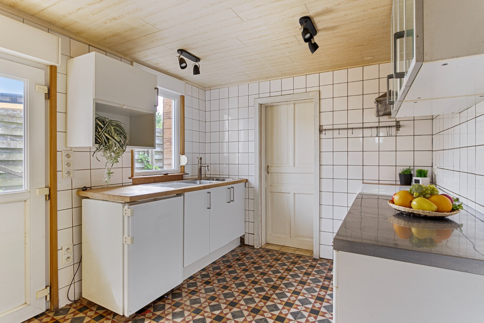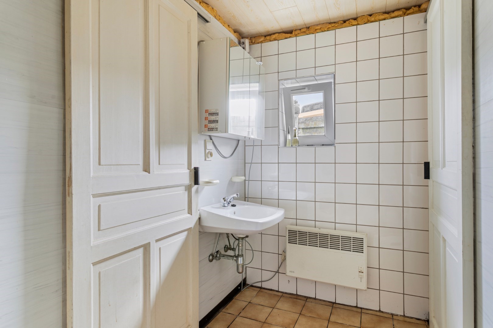Aanpalend is er de keuken met daarnaast de badkamer met toilet, lavabo en douche. Er is hier ook plaats om een wasmachine te plaatsen.
