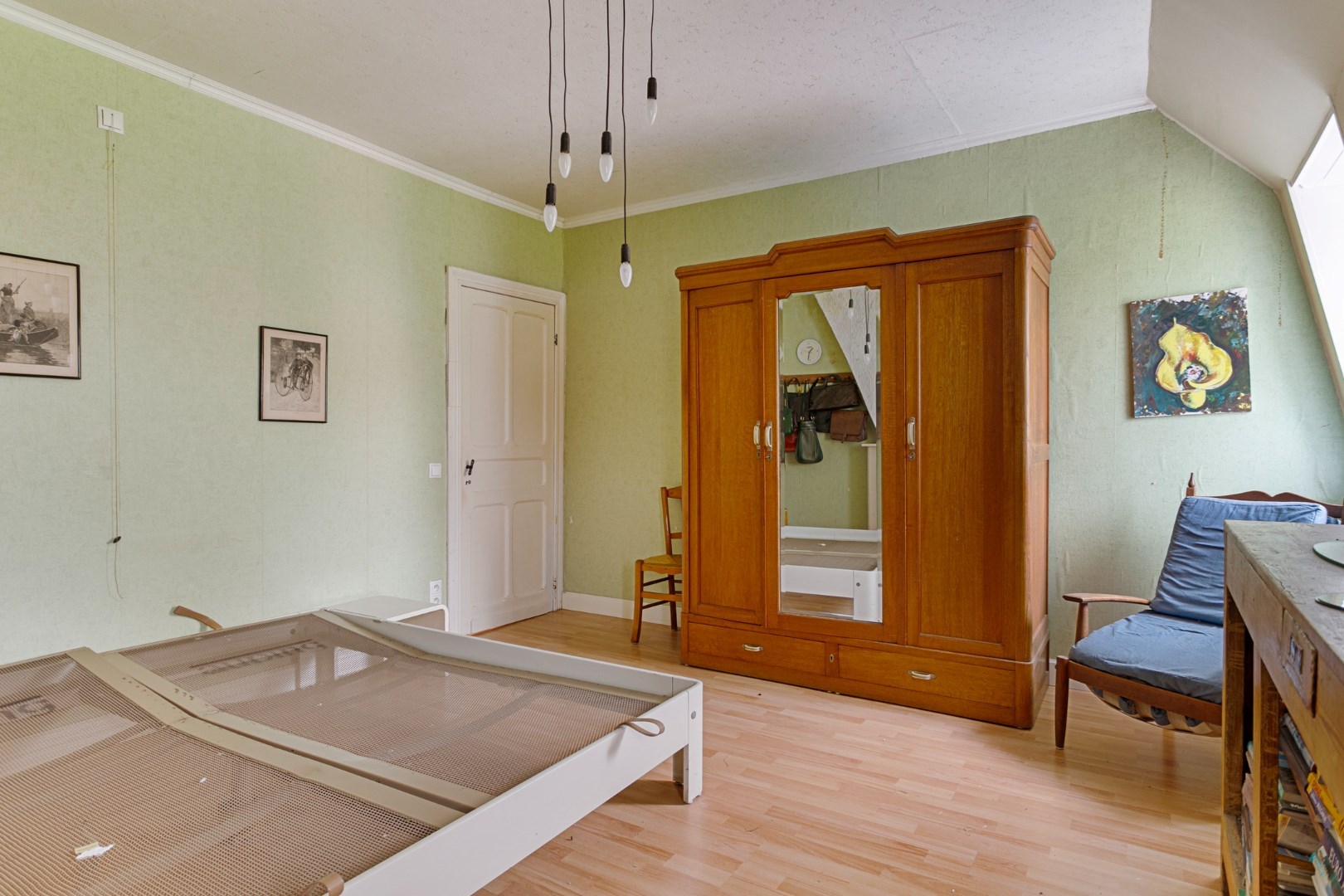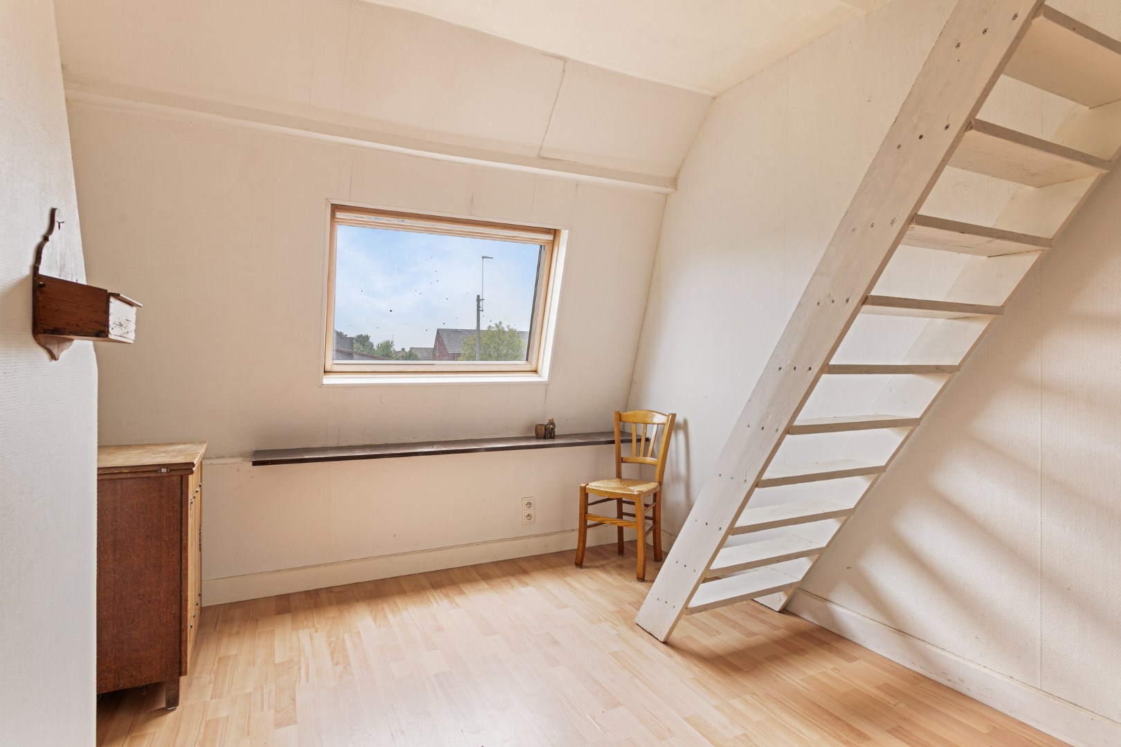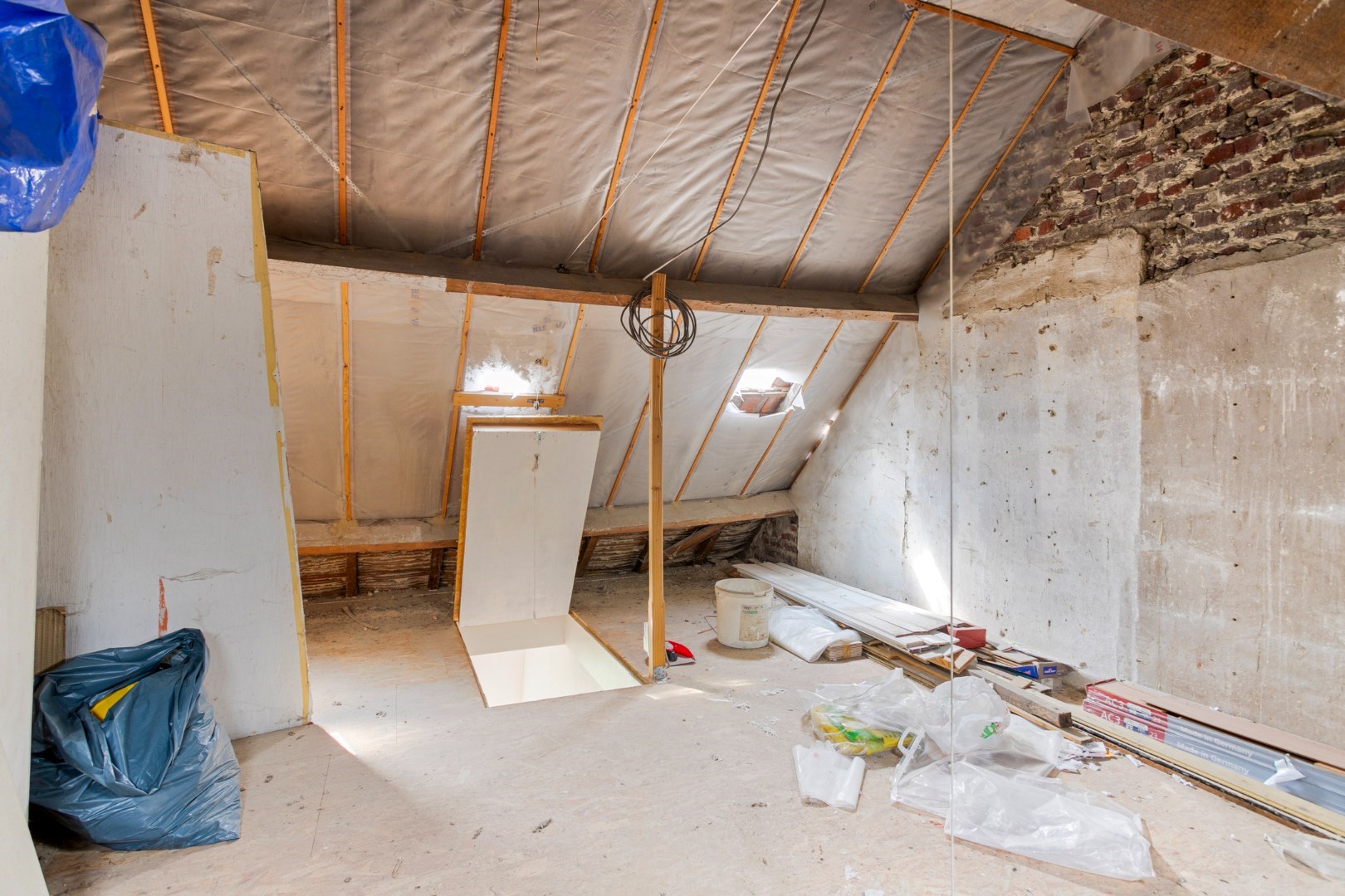 Op de eerste verdieping zijn er 2 ruime kamers. Vanuit de achterste kamer vertrekt er een vaste trap naar de zolder. Deze heeft geen onderdak en is niet geïsoleerd. Mits de nodige werken kan hier een hele mooie kamer gemaakt worden.
