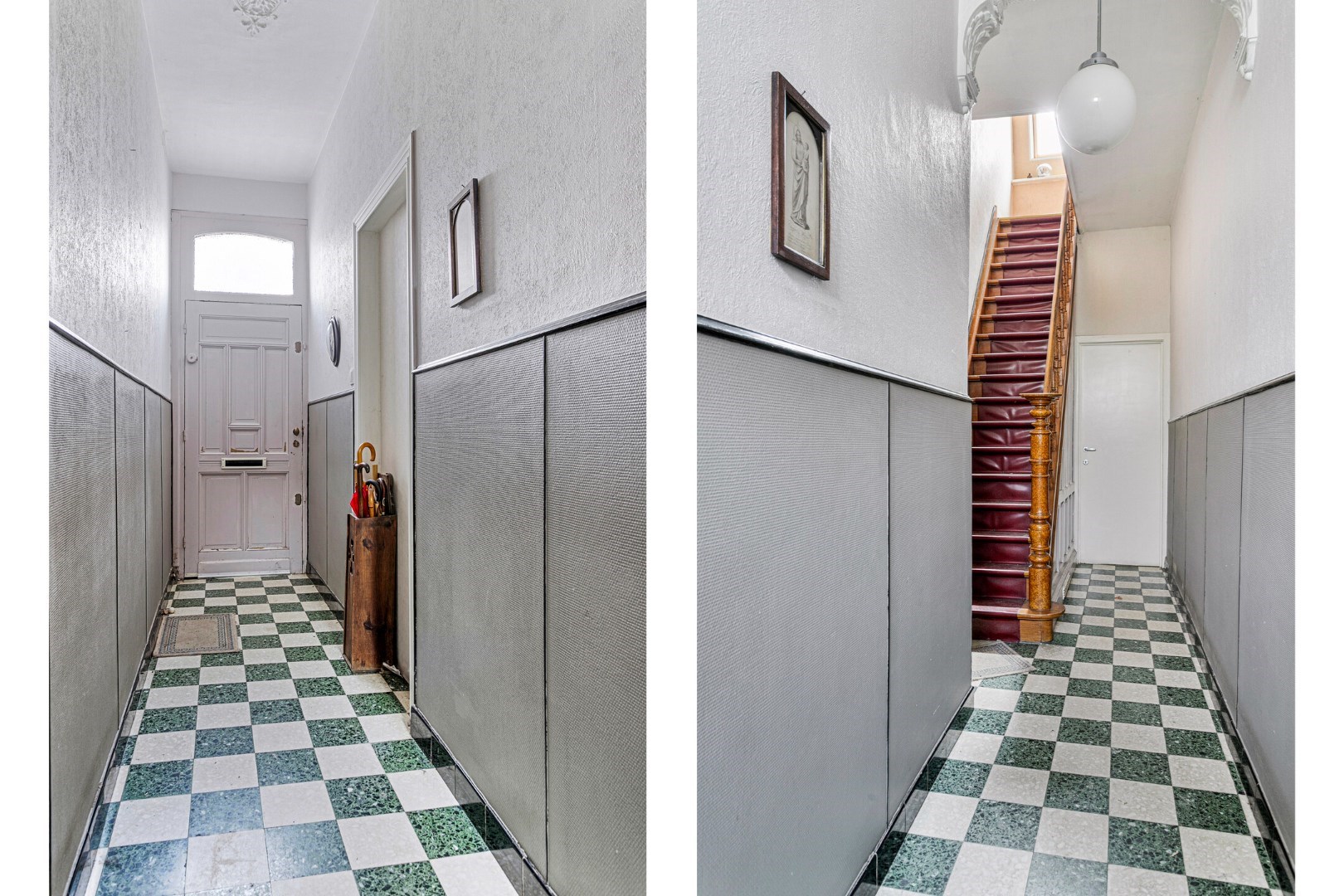 Via de inkomhal hebben we toegang tot de living en de keuken. We hebben er ook de mooie trap naar de bovenverdieping.