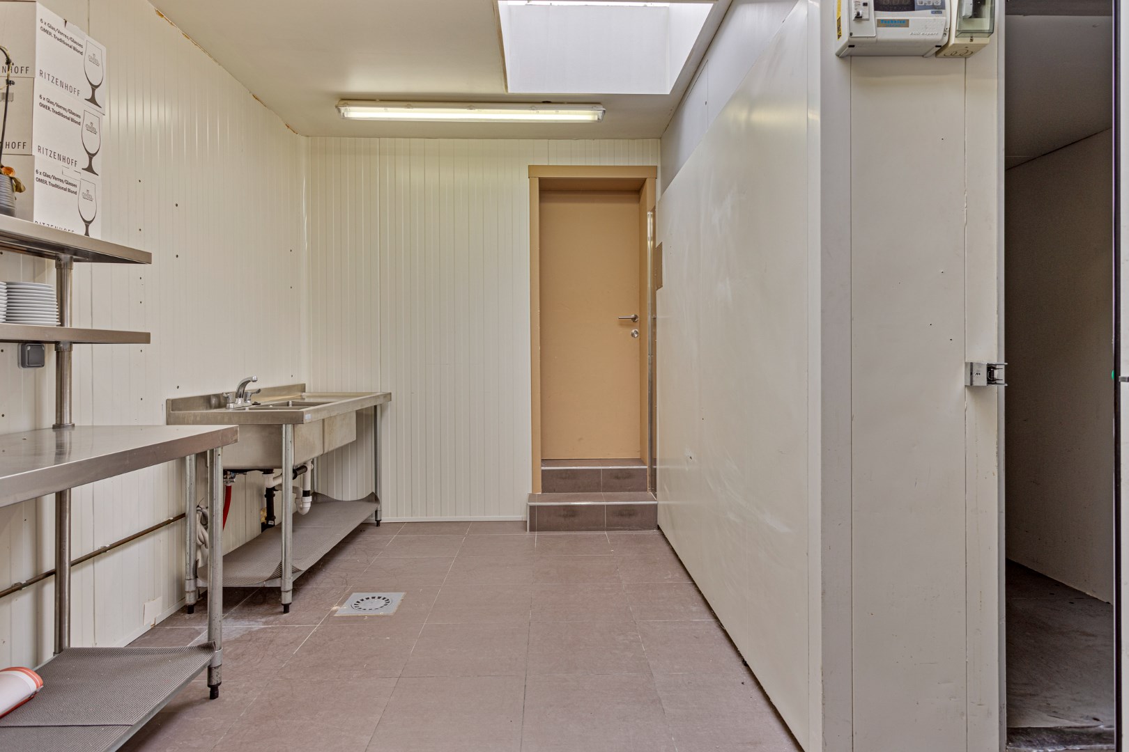 Het café is heel gezellig ingericht en beschikt over een mooie toog en lambriseringen. Aansluitend is er de keuken met kook- en wasgedeelte, een grote koelcel en een aanpalende berging. Verder is er nog een sanitair gedeelte dat is opgesplitst in een vrouwen- en een mannentoilet. Vanuit het café kunnen we naar de binnenkoer waar de klanten bijvoorbeeld rustig een sigaretje kunnen roken. Deze binnenkoer is trouwens ook bereikbaar via een ingang langs de zijkant. Achteraan de zaak is er een feestzaaltje waar er tal van bijeenkomsten en feestjes kunnen worden georganiseerd. Als kers op de taart bevindt zich achter deze zaal ook een grote tuin. Deze tuin is ook bereikbaar via een poort langs de zijkant.