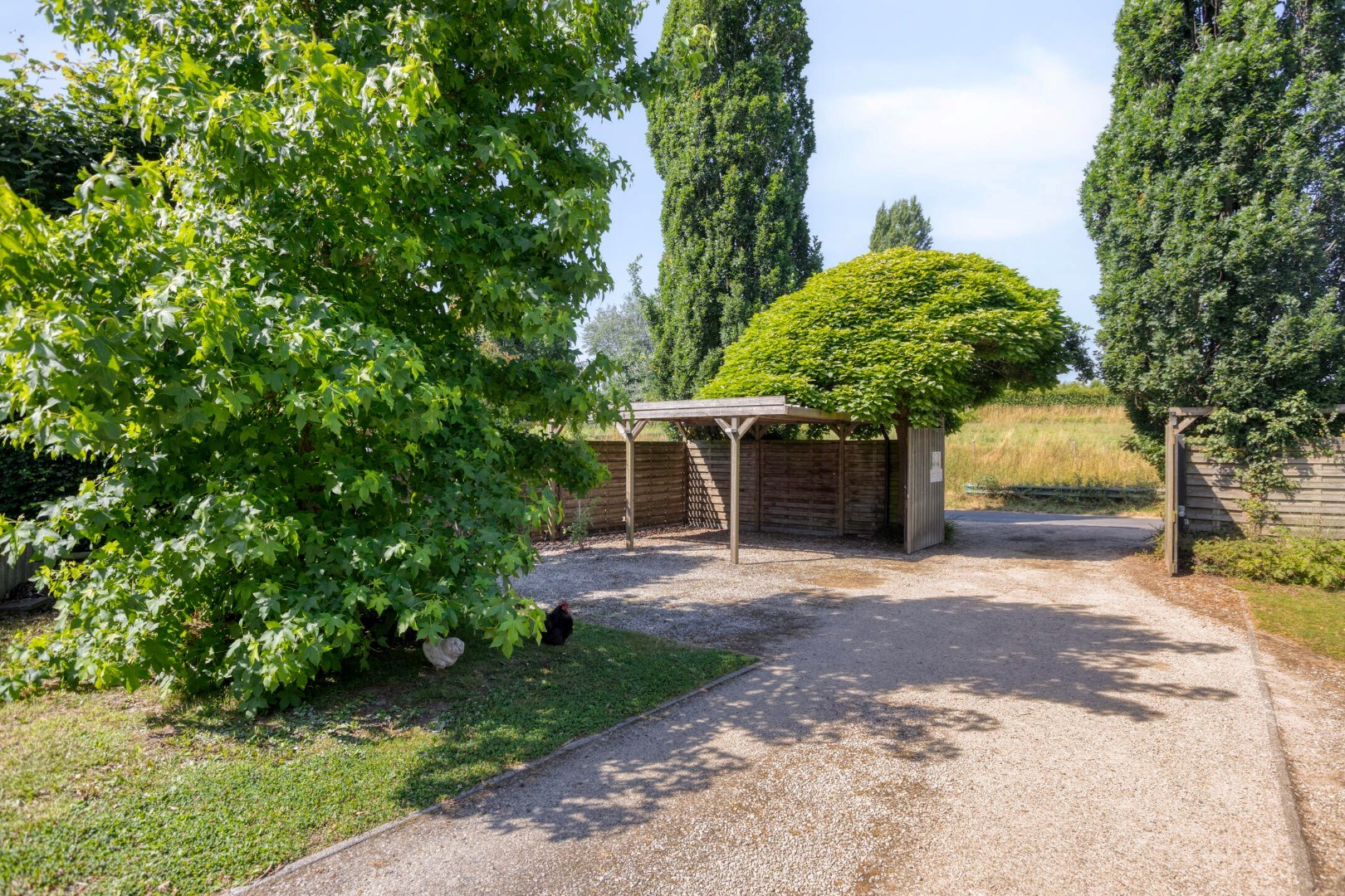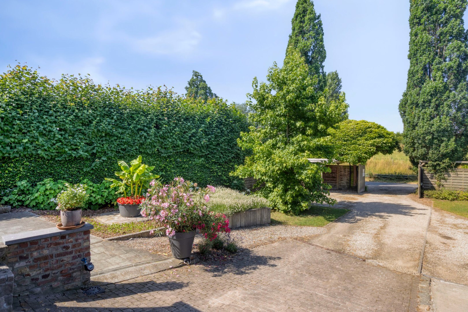 De tuin is bereikbaar via de garagestraat achteraan. Van hieruit kunnen we naar het terras en het atelier.