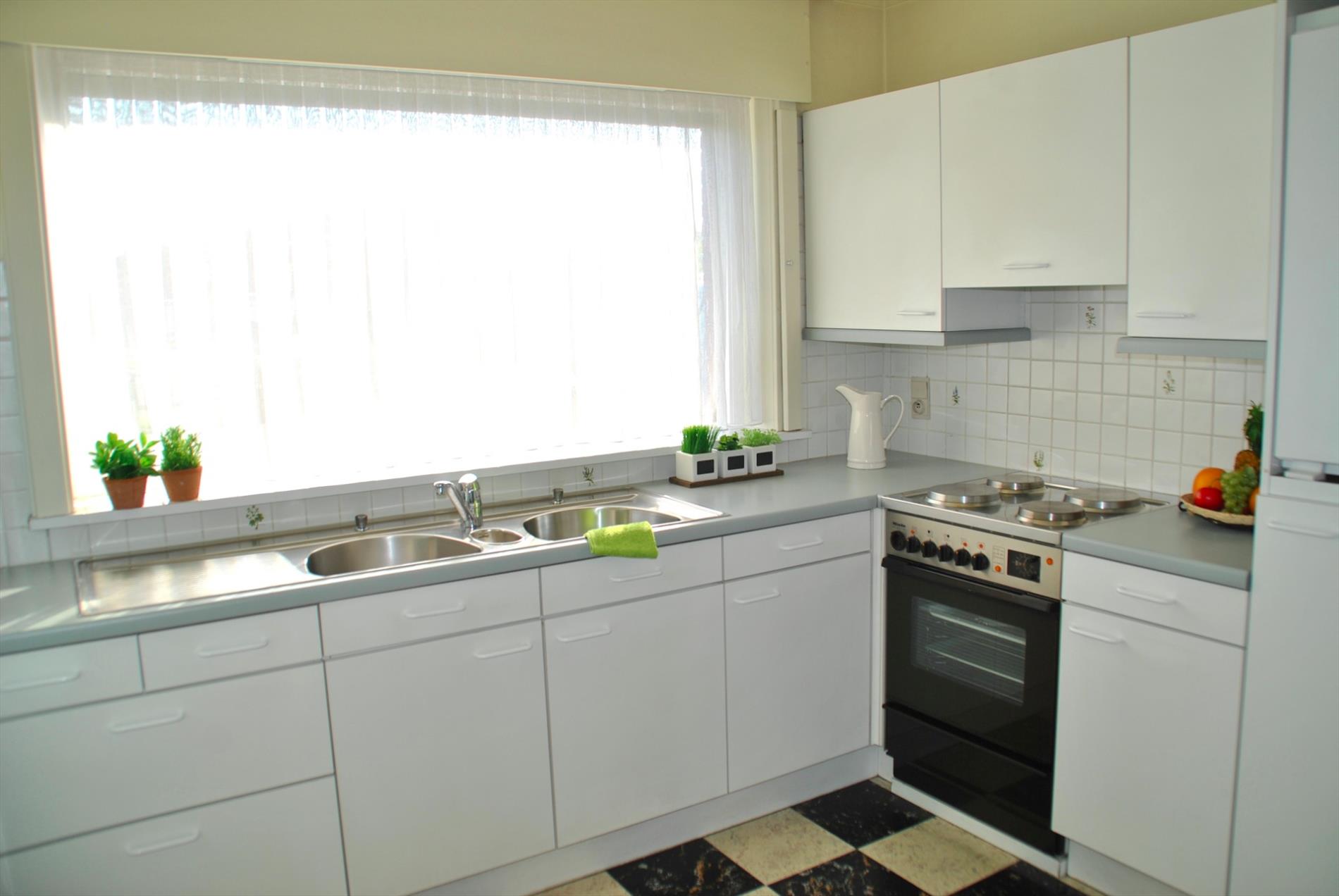De keuken bevindt zich aan de voorzijde van de woning. Via de keuken kunnen we naar de garage met berging.