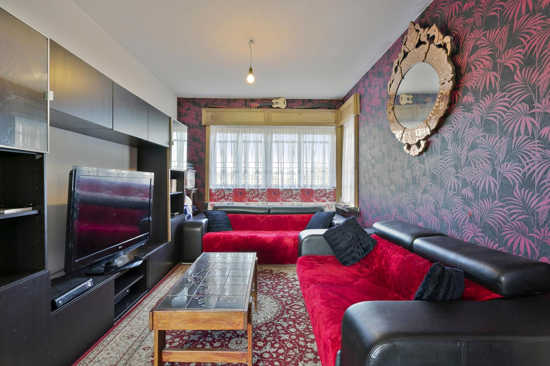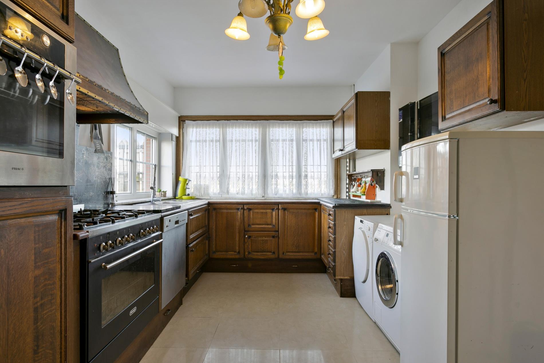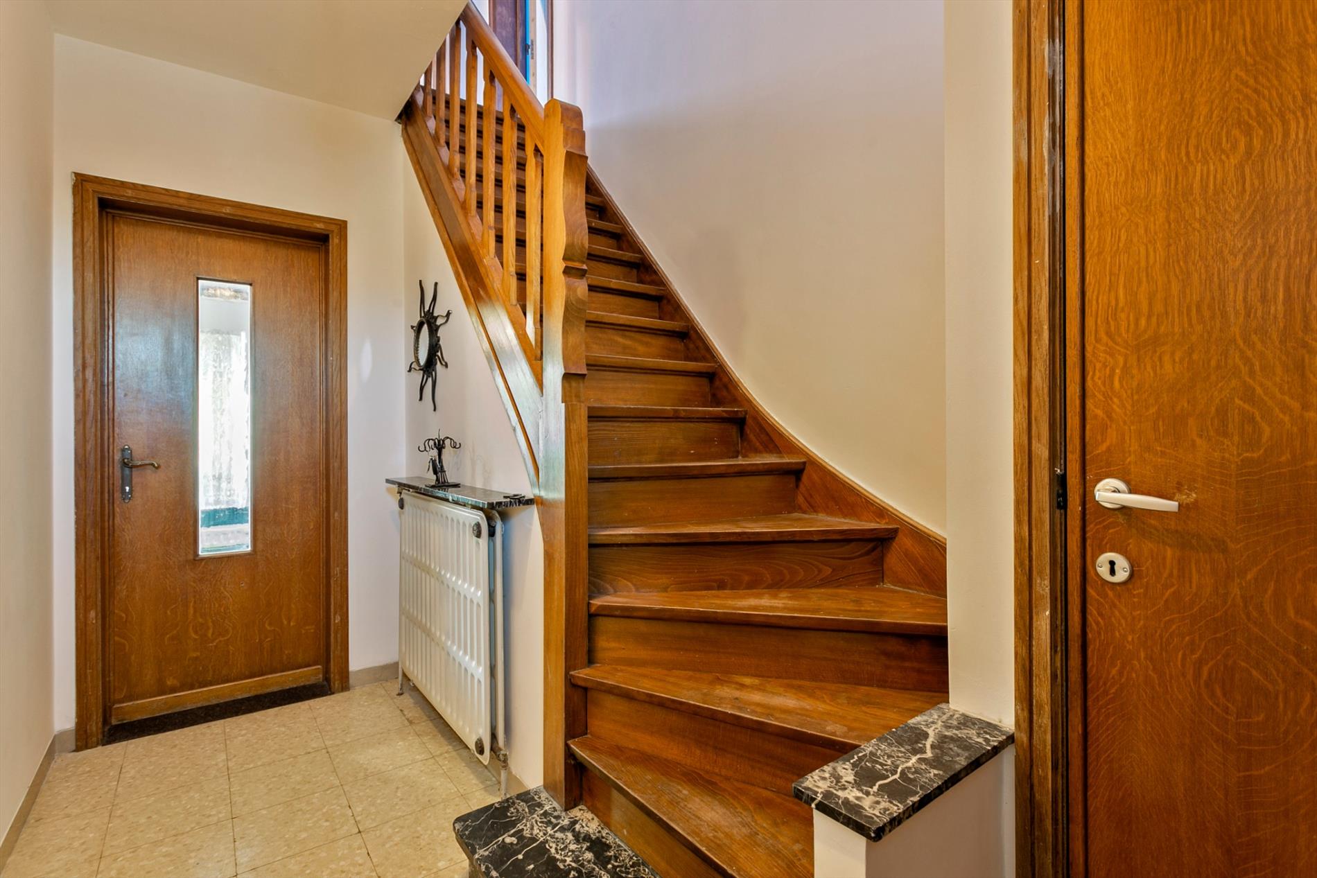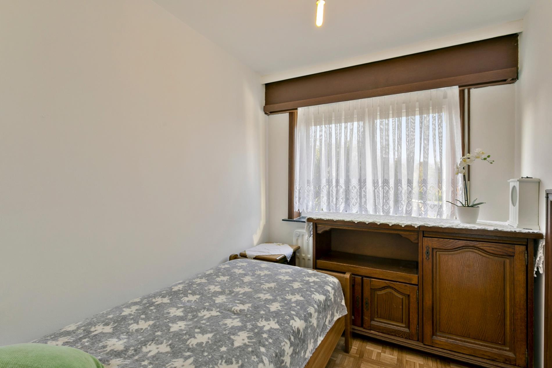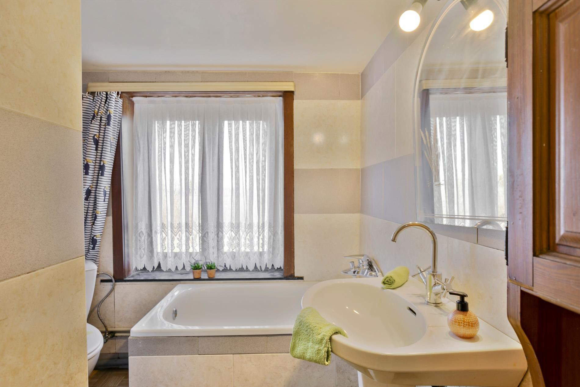 Via de voortuin stappen we naar de karaktervolle woning toe die gezelligheid uitstraalt. In de inkomhal vinden we een apart gastentoilet. We hebben toegang tot de leefruimte of de bovenverdieping. De leefruimte met salon is gezellig en lichtrijk. Er is een heel mooi zicht op de grote, zongerichte tuin. Naast de leefruimte vinden we een buroruimte of bijkeuken. Daarnaast vinden we de keuken terug. Vanuit de keuken kunnen we ook naar de droge en gerieflijke kelder.