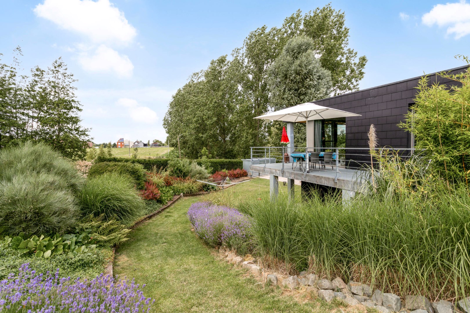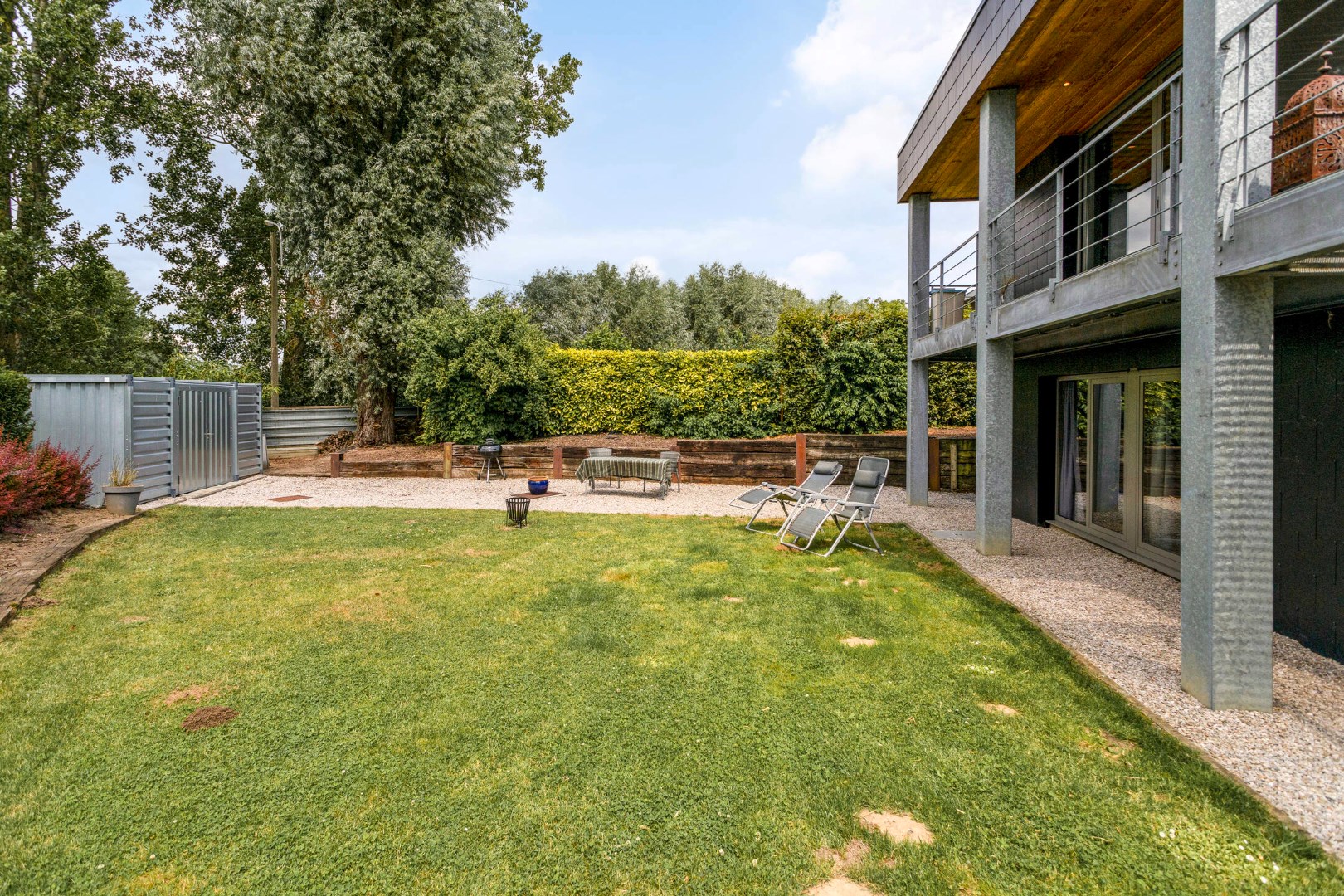Achter de woning bevindt zich natuurgebied en de beekvallei. Het zicht blijft dus gegarandeerd! U bevindt zich ook op wandelafstand van de Leie … wandel- en fietsplezier ten top!