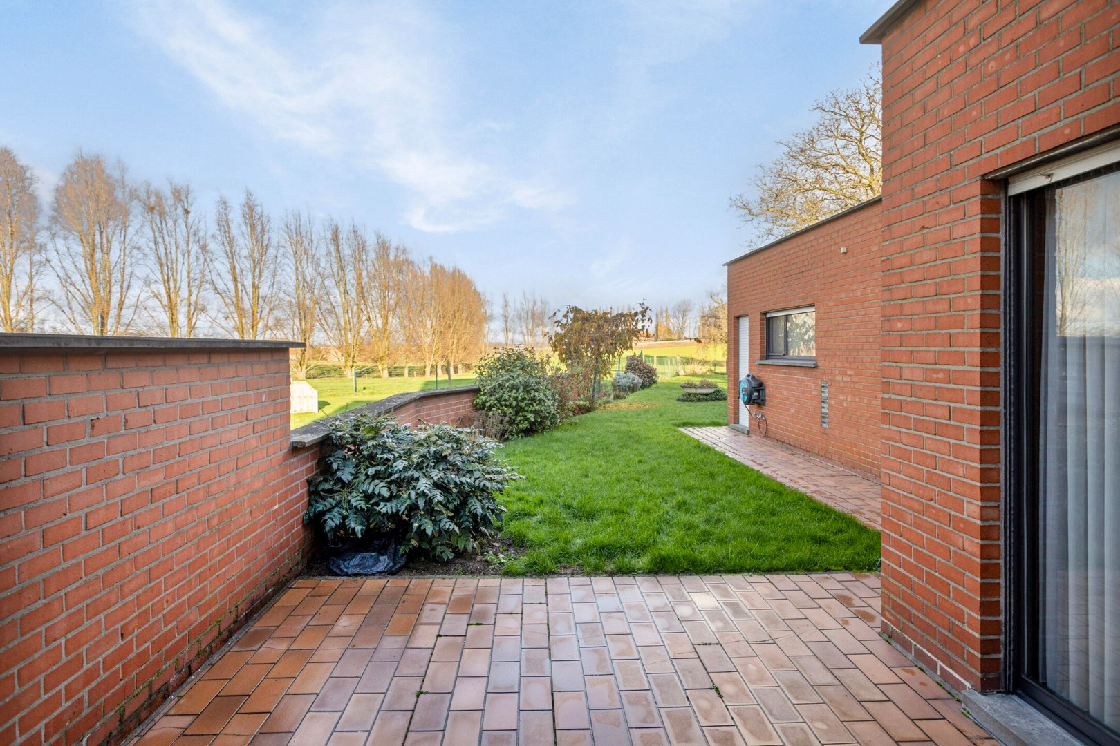In de tuin is het genieten in alle rust. U heeft er een overweldigend zicht op de achtergelegen velden.