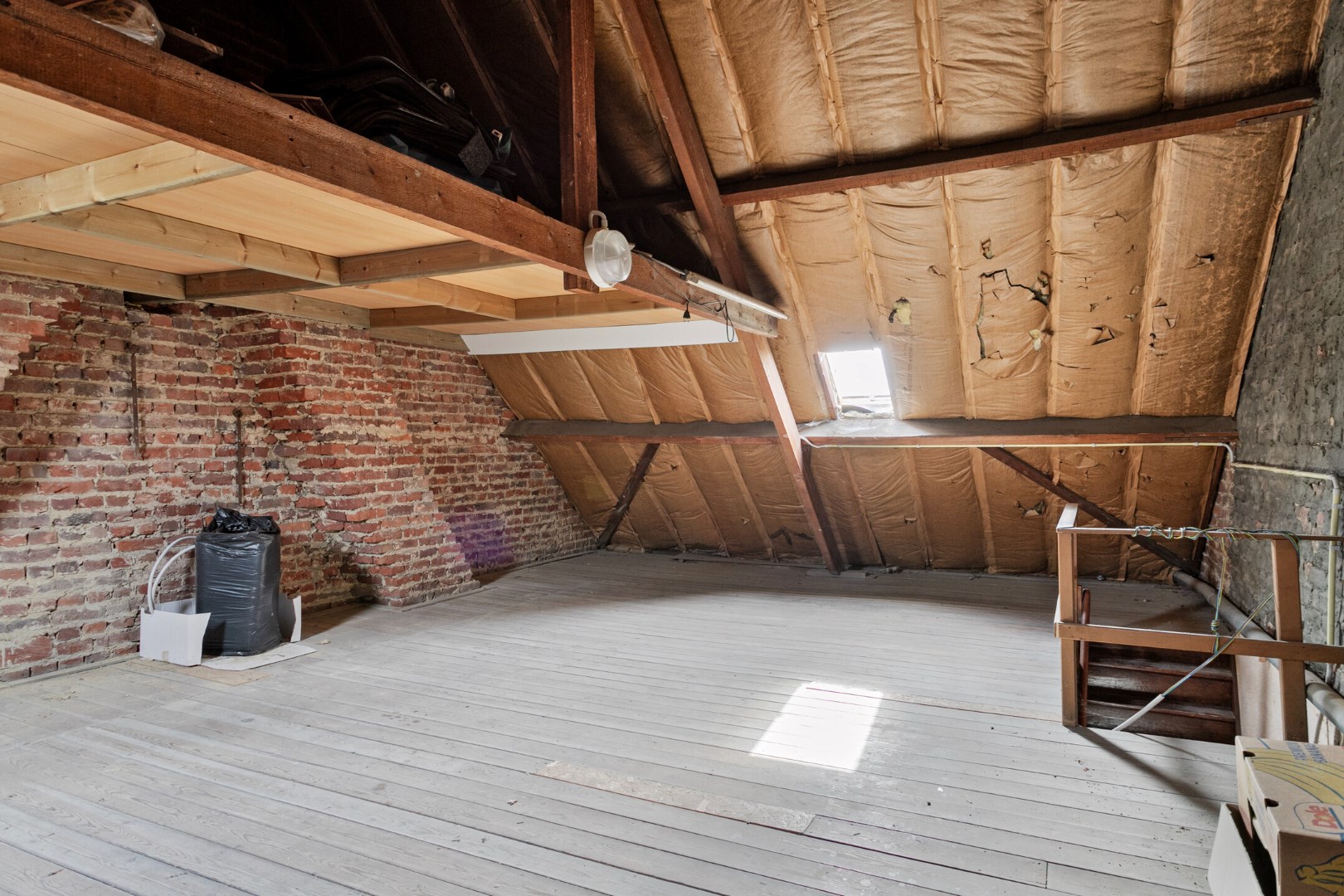 De eerste verdieping beschikt over 2 ruime slaapkamers op een mooie planken vloer. Langs de vaste trap kunnen we naar de zolderverdieping. Hier kunnen makkelijk 1 of 2 kamers bijgemaakt worden!