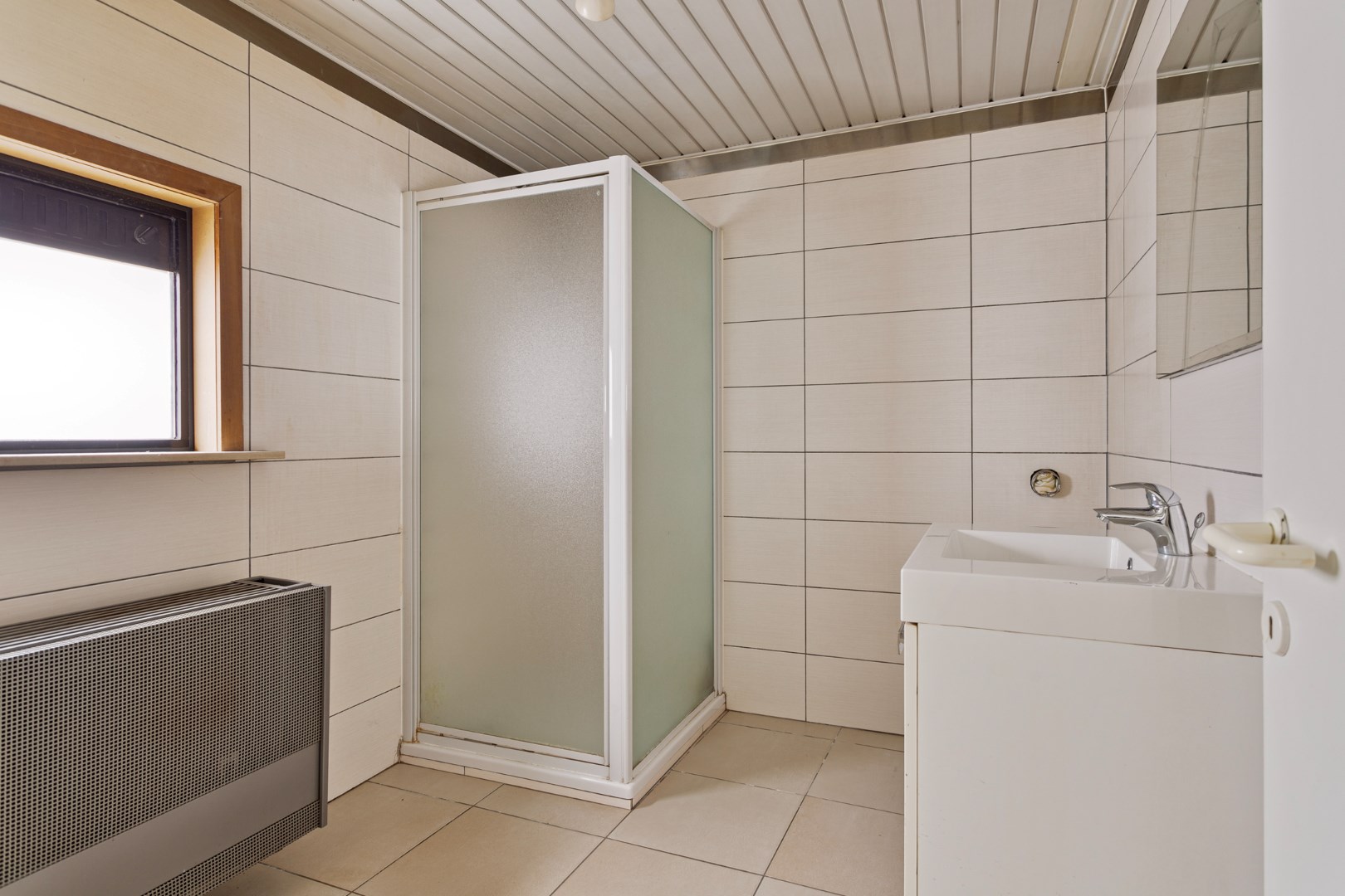 Het gelijkvloers beschikt verder nog over een badkamer met douche en lavabo. Het toilet is apart.