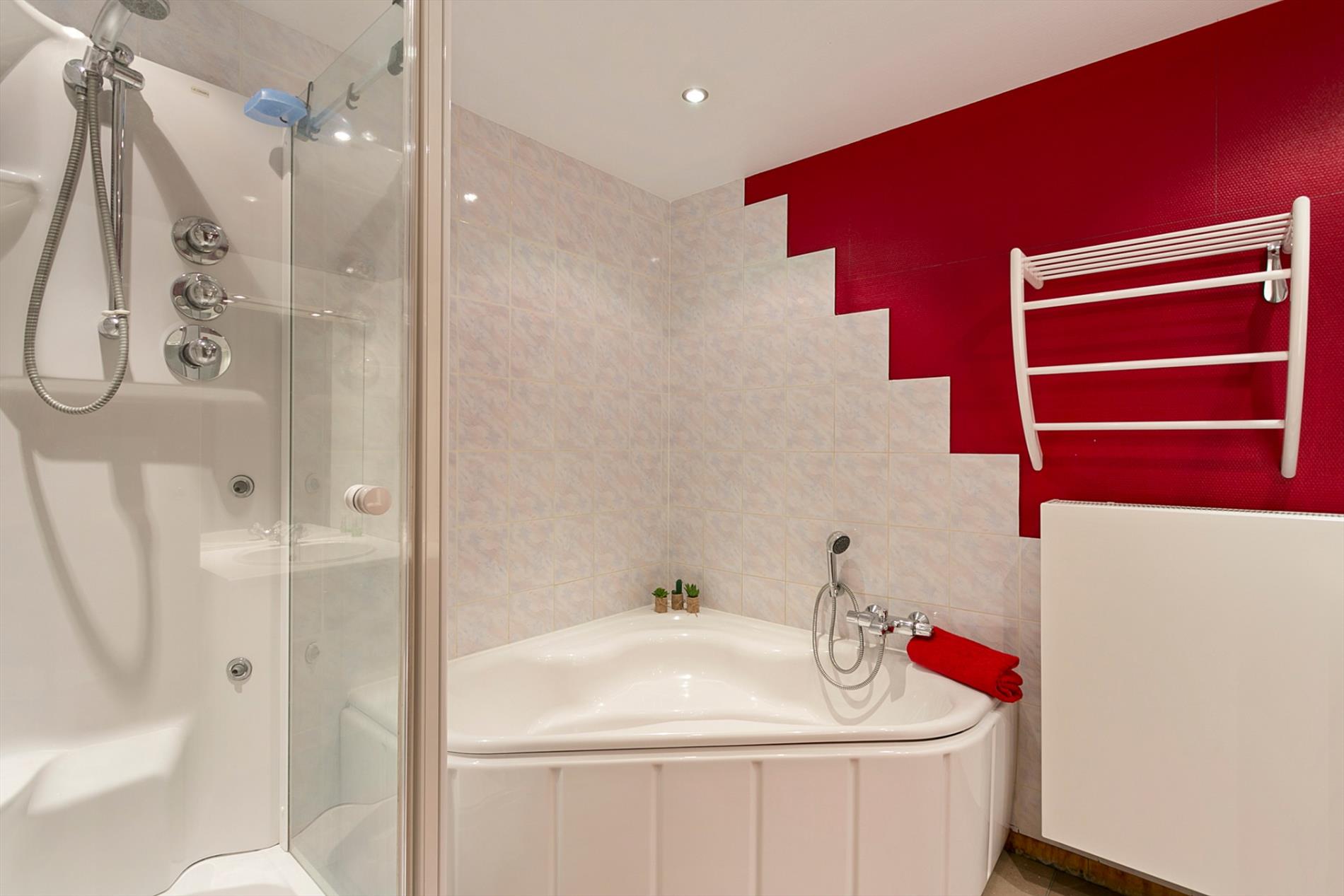 Op de gelijkvloerse verdieping vinden we verder nog een badkamer terug met lavabo, bad en douchecabine. Er is eveneens een apart toilet en berging. Naast de veranda is er een wasplaats die ons ook toegang verleent tot een handige zolder erboven.