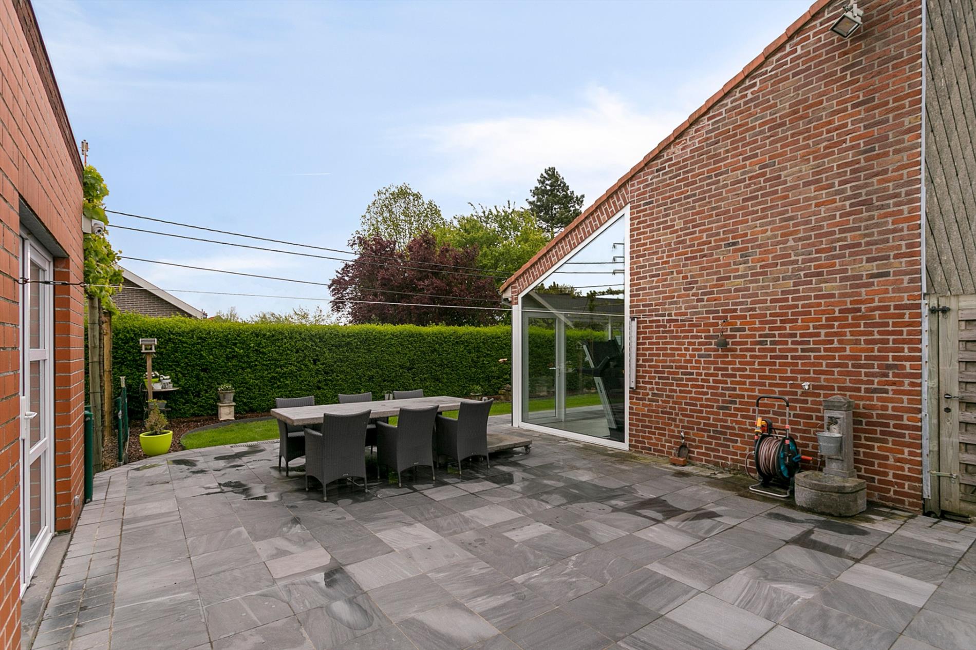 Terwijl we op het mooie en grote terras zitten, kunnen we de woning, tuin en vijver overschouwen. ‘Men kwam, men zat en men zag dat het goed was’, is hier zeker van toepassing.