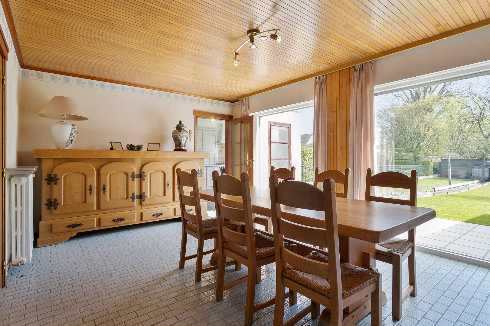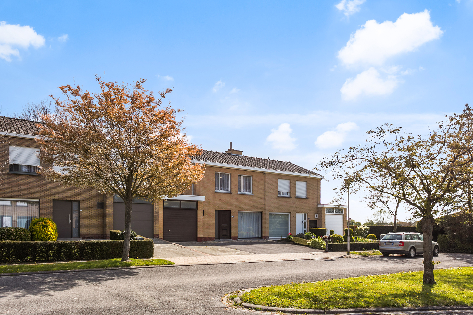 Bij het binnenrijden van de wijk merken we meteen het rustige karakter van deze aangename buurt op. Het pleintje voor de deur en de weides opzij zorgen ervoor dat het hier aangenaam toekomen is. We parkeren de wagen op de oprit en komen de woning binnen in de hal met apart toilet om verder te gaan naar de living. Deze is door de L-vorm gezellig en zeer lichtrijk. Van hieruit hebben we een zicht op de grote, oostgerichte tuin.