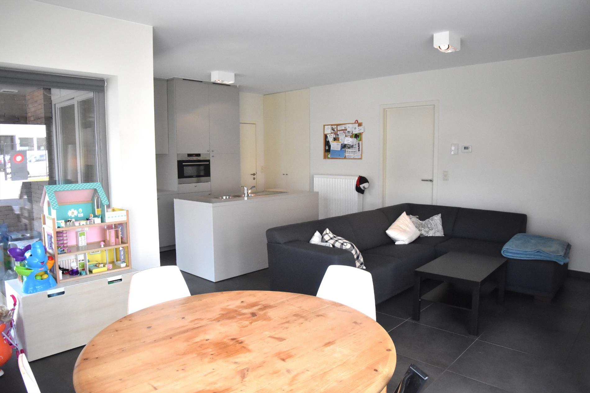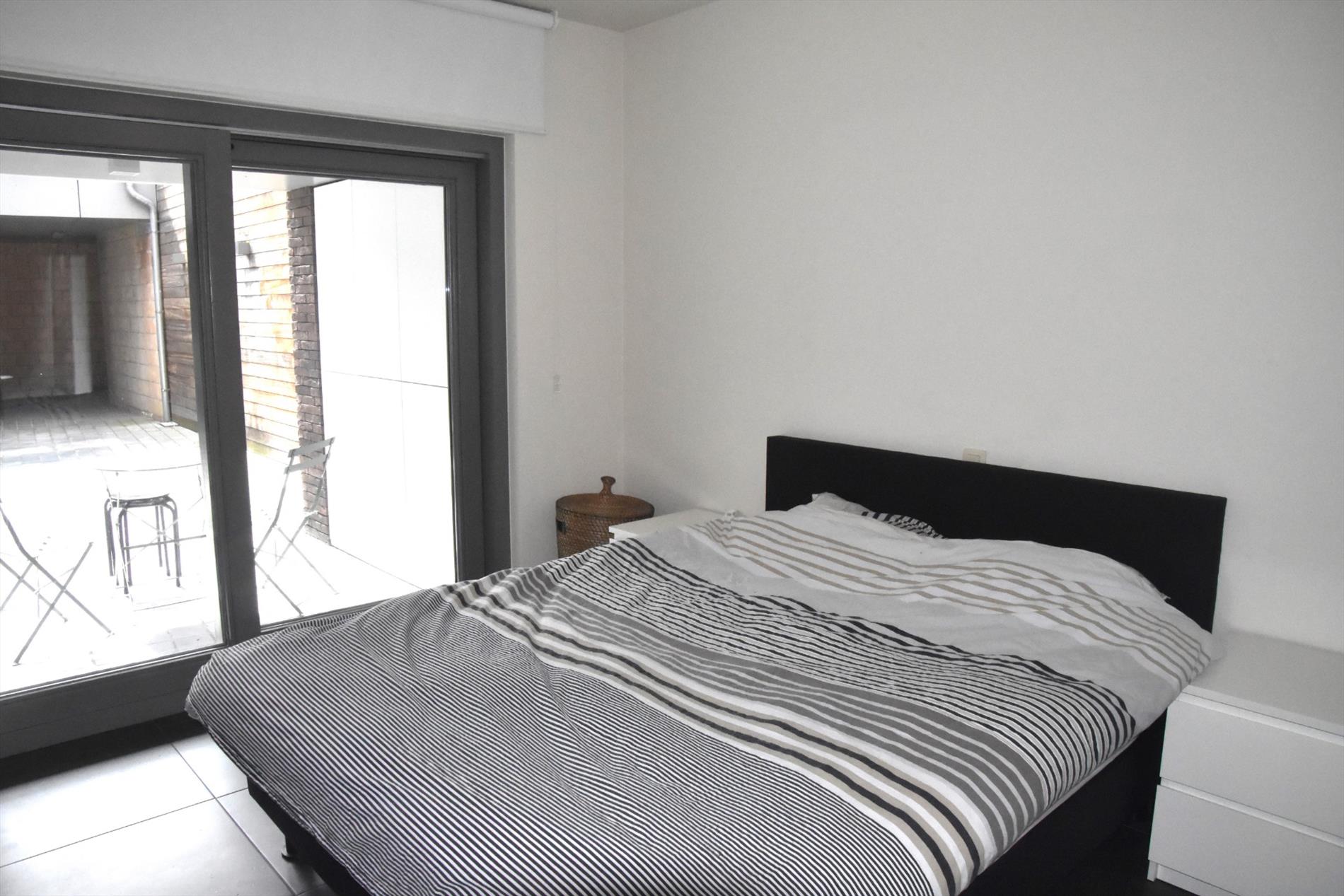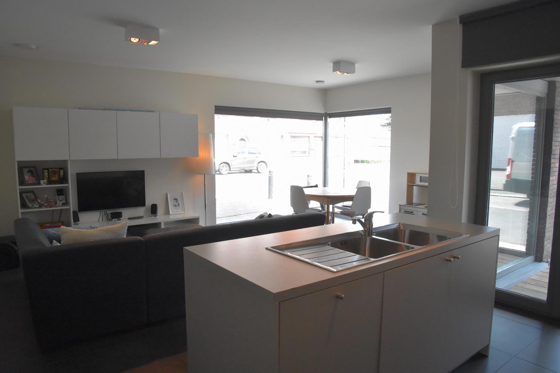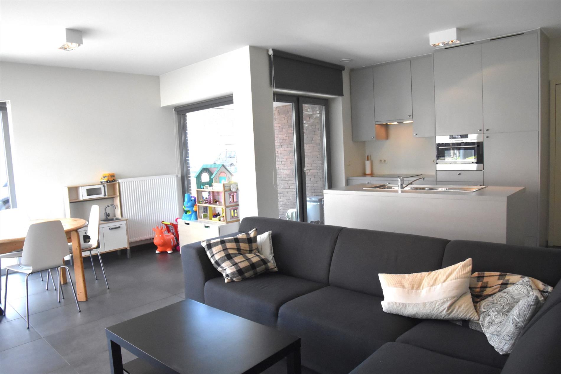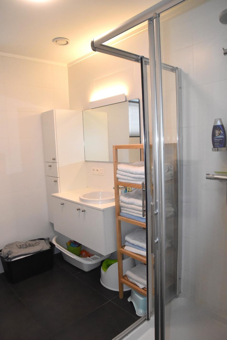 In de leefruimte bieden de grote ramen veel daglicht. De open keuken is modern en smaakvol ingericht (kookplaat, dampkamp, warmeluchtoven, ijskast en vaatwasmachine). Vanuit de leefruimte kunnen we het terras aan de straatkant bereiken. Dit terras is heel stijlvol met glazen balustrade. Het is hier heel aangenaam verpozen. Verder komen we vanuit de nachthal in de badkamer met douche en wastafel. Er is ook toegang tot een apart toilet en 2 slaapkamers. Vanuit de achterste slaapkamer kunnen we ook hier terug een terras betreden. De rolgordijnen en de prachtige lichtarmaturen doorheen het appartement zorgen voor de 'finishing touch'.