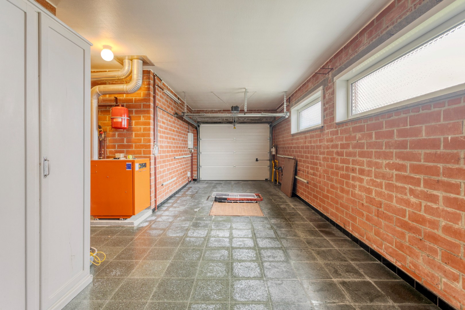 De grote garage met sectionaalpoort biedt plaats voor een wagen, wasmachine en droogkast en heeft een rechtstreekse toegang naar de tuin. Daarnaast is de woning volledig onderkelderd met kruipkelder en beschikt ze over een ruime, in 2011 geïsoleerde zolder met potentieel voor extra kamers mits het plaatsen van een vaste trap. Spouwisolatie werd voorzien in 2014 en er zijn twee regenputten van telkens 10.000 liter aanwezig. Buiten geniet u van een groot terras, een onderhoudsvriendelijke tuin en een praktisch tuinhuis.