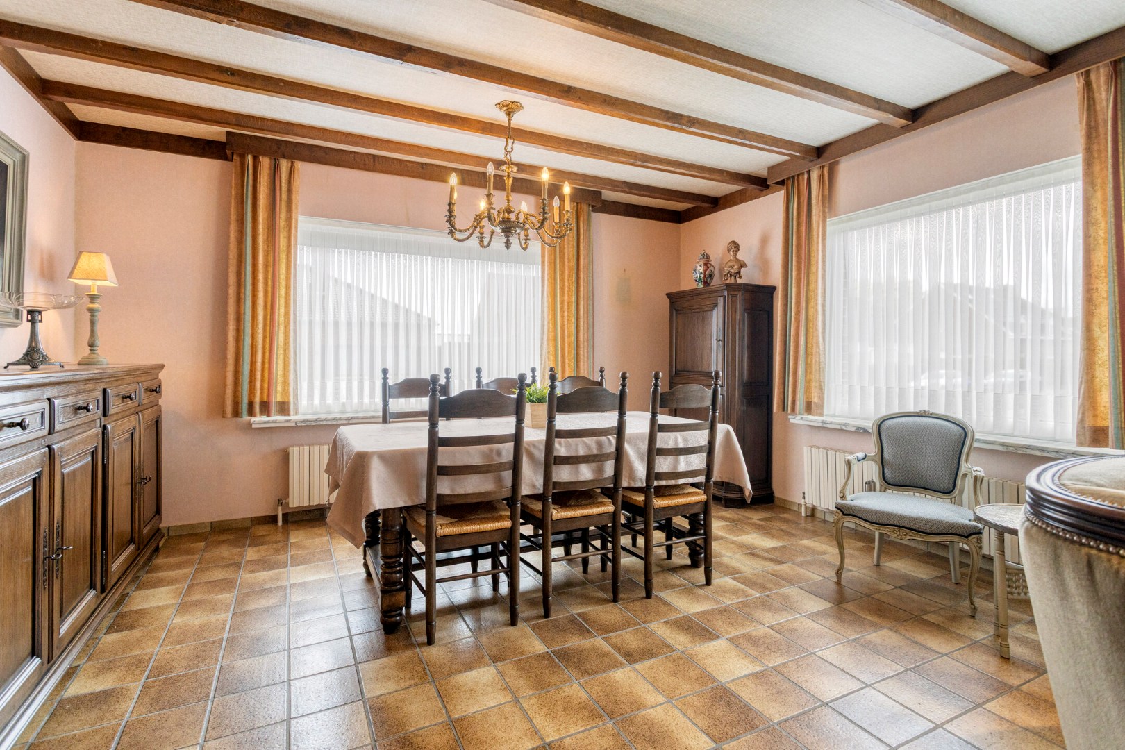 Deze open, gelijkvloerse woning uit 1982 is gelegen in een rustige, residentiële wijk op een boogscheut van de Leie. Met een perceeloppervlakte van 550 m² geniet u hier van ruimte, privacy en een uitstekende bereikbaarheid nabij het centrum van Wevelgem en belangrijke invalswegen. De lichtrijke leefruimte bestaat uit een gezellige zithoek met houtkachel en een aangename eetkamer. Aansluitend bevindt zich een ruime keuken met eiken inrichting, uitgerust met koelkast en gasfornuis, en een praktische koele berging ernaast.