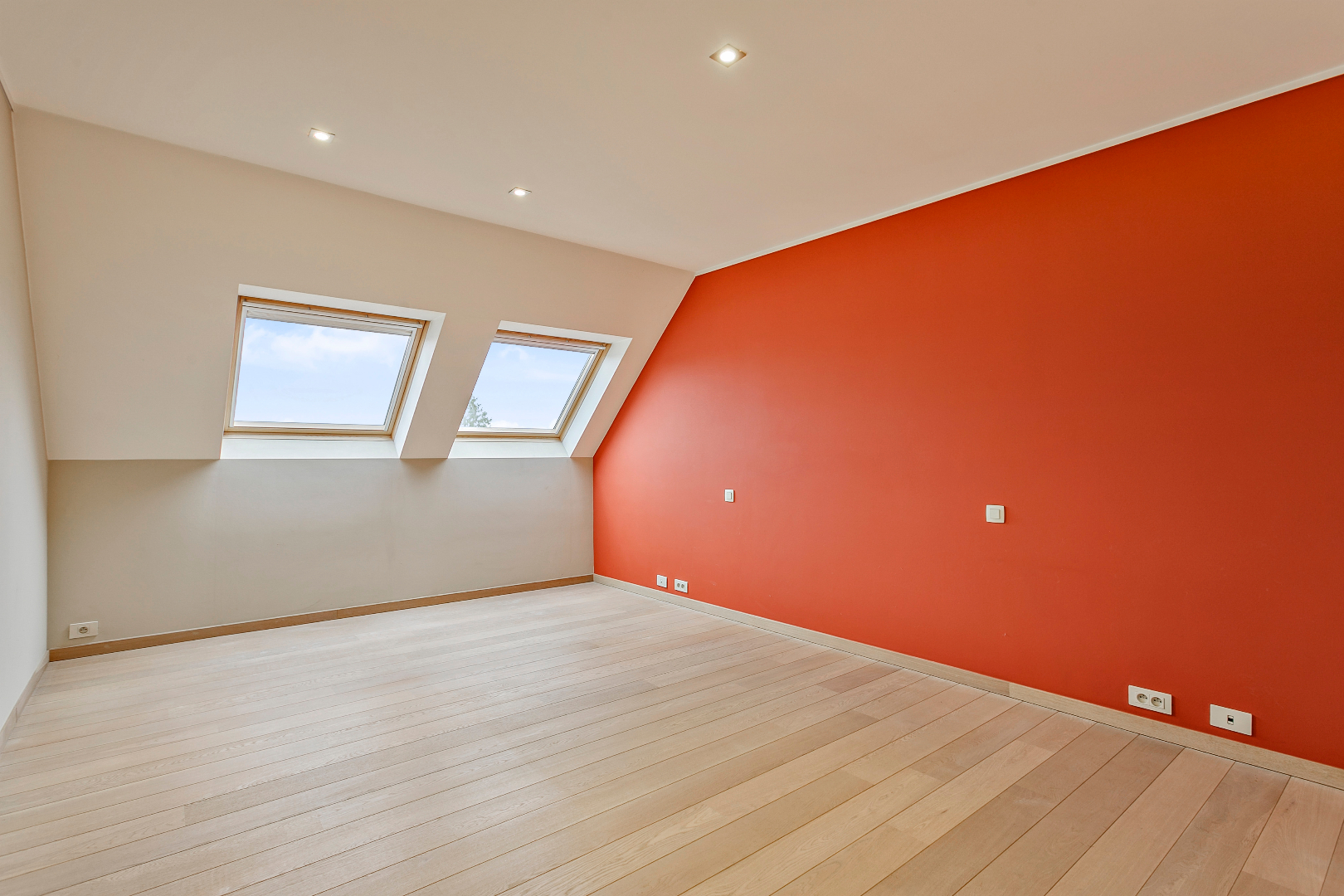 Verder vinden we nog 3 slaapkamers op parket en een prachtige badkamer met lavabomeubel, ligbad en inloopdouche.