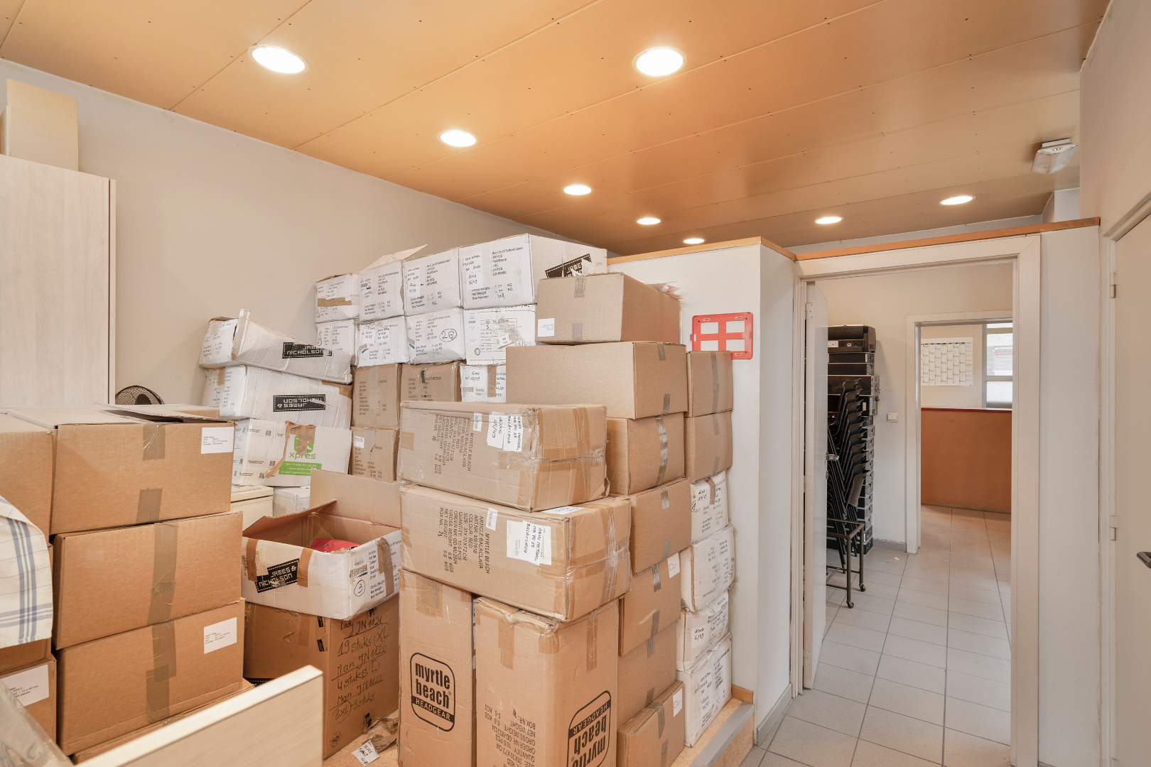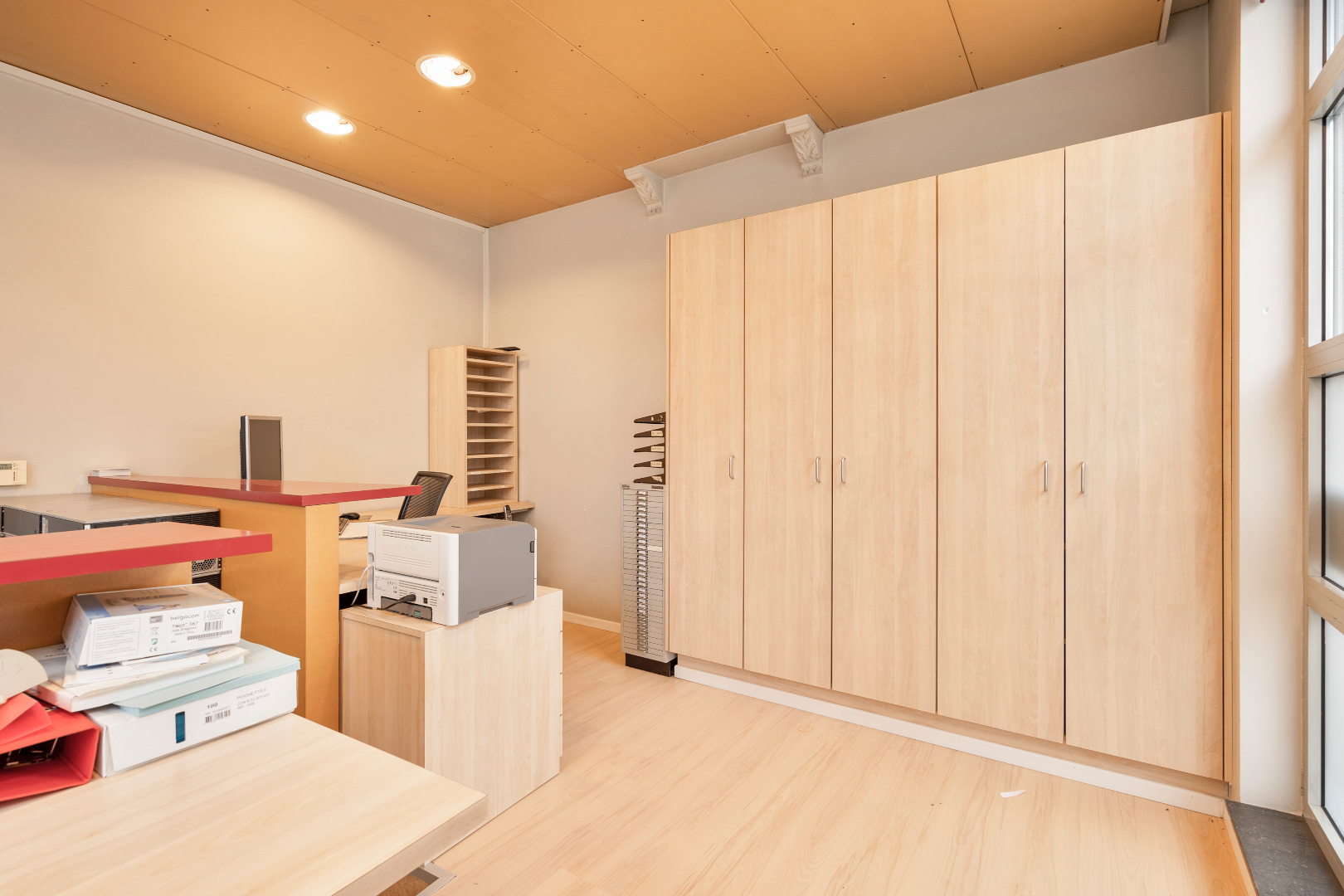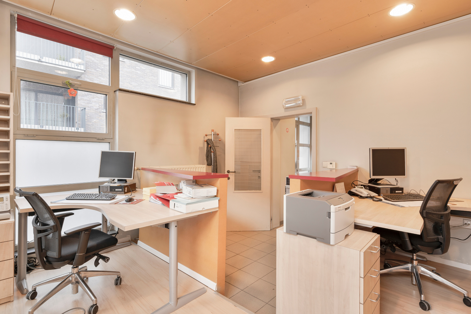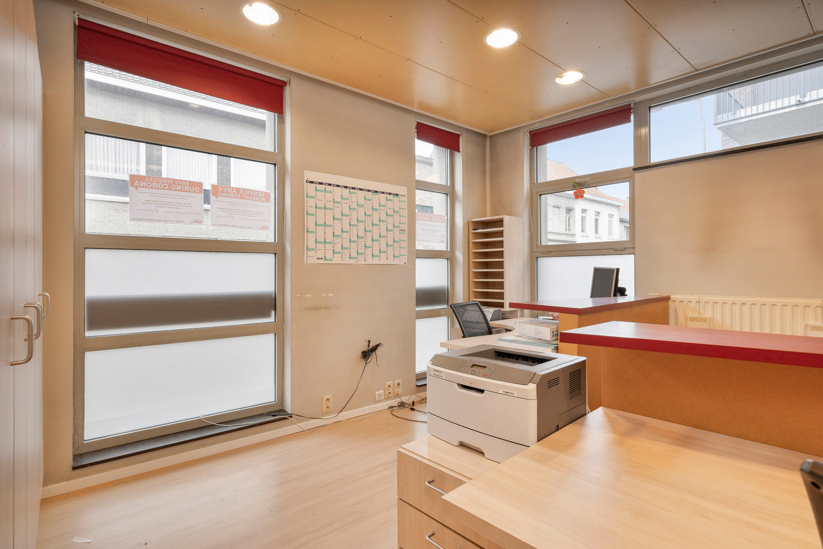 Dit pand heeft op het gelijkvloers een ontvangstruimte, bureelruimte en een kitchenette.