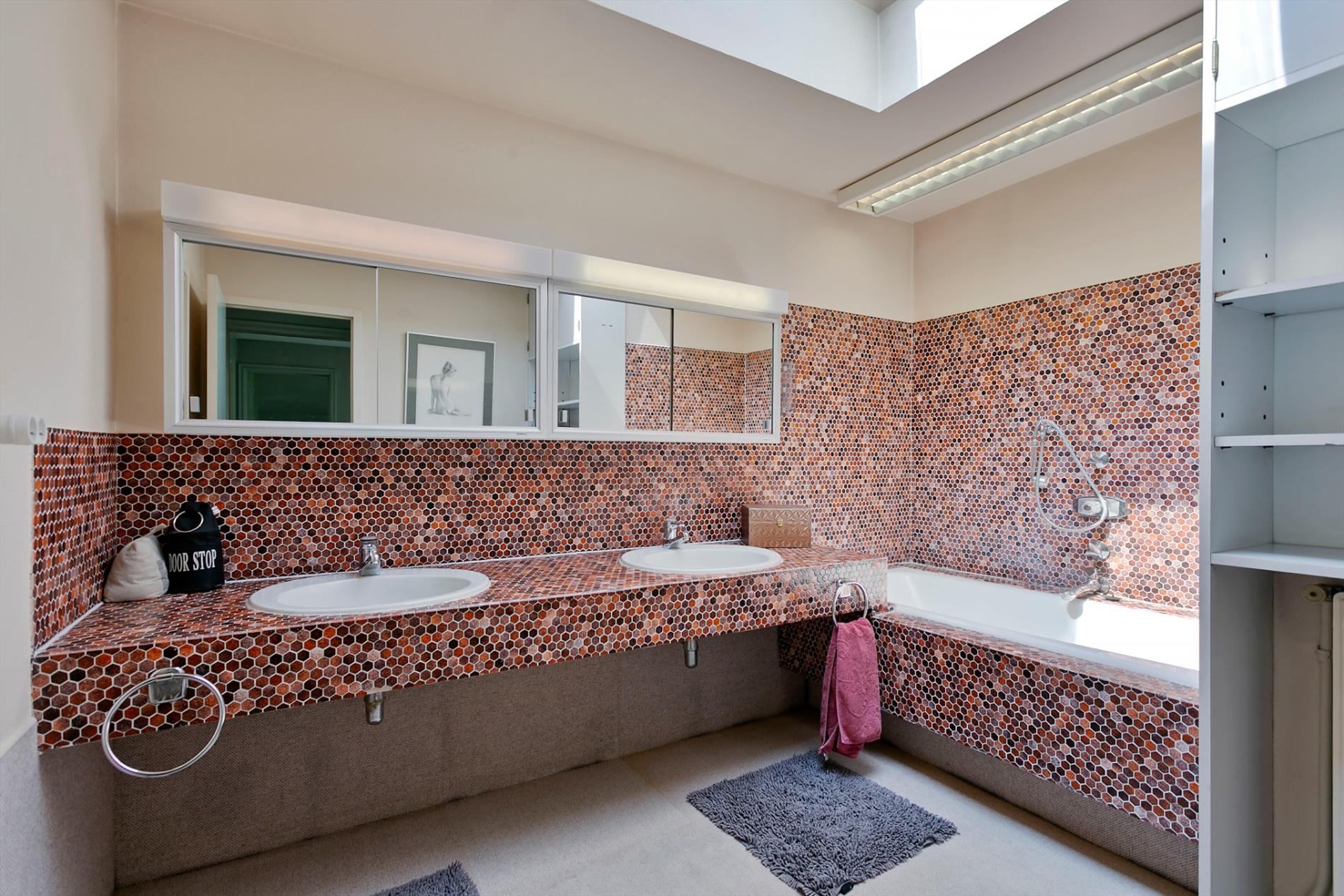 Op de bovenverdieping zijn er 6 slaapkamers, waarvan 4 grote. Op de nachthal is er nog een apart toilet. De badkamer met bad bevindt zich ook op de bovenverdieping en is ook rechtstreeks bereikbaar vanuit de ouderslaapkamer. In deze slaapkamer is er ook airco voorzien.