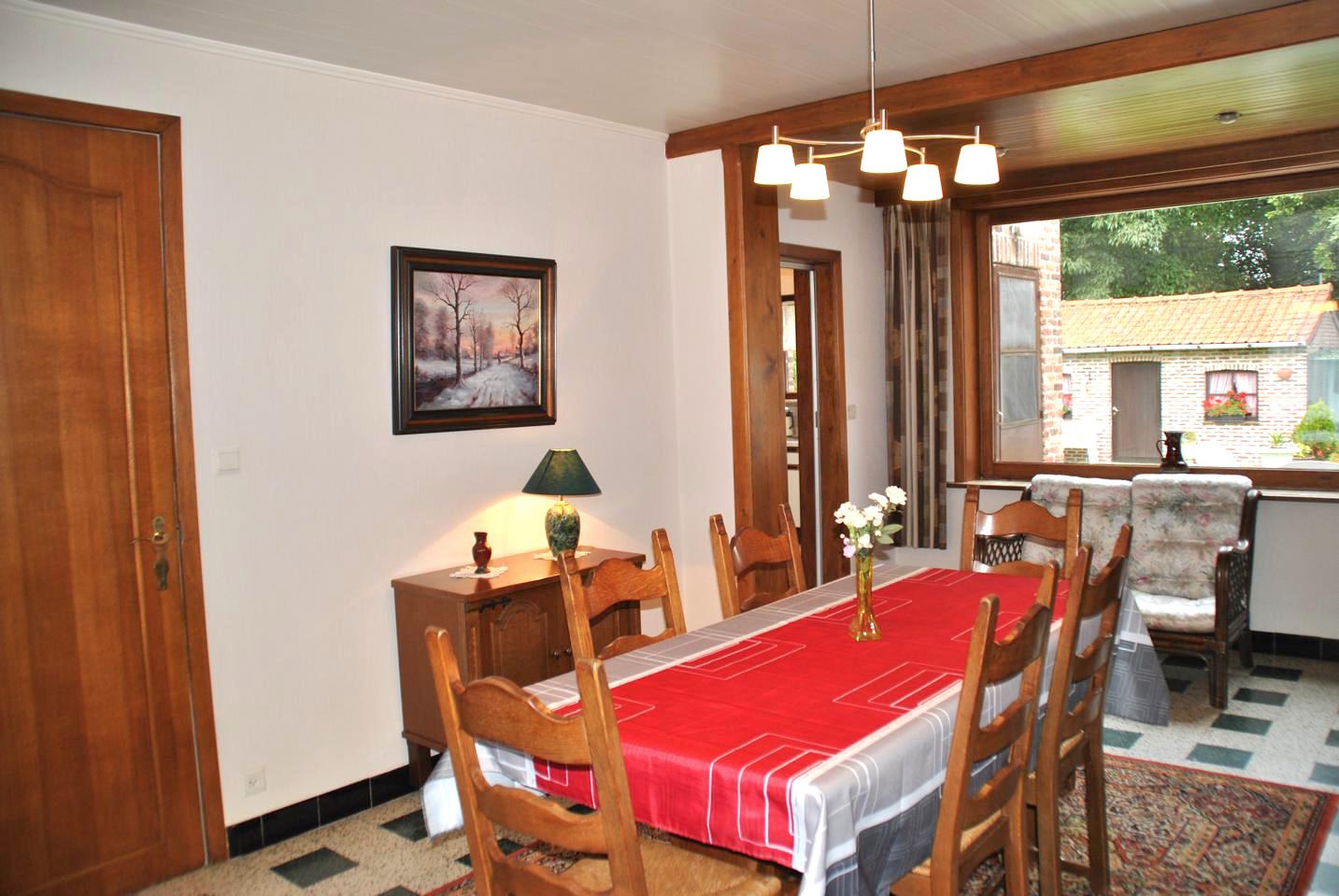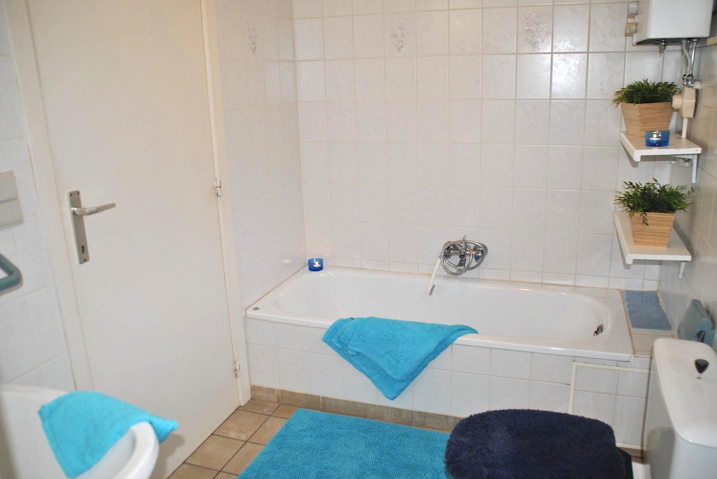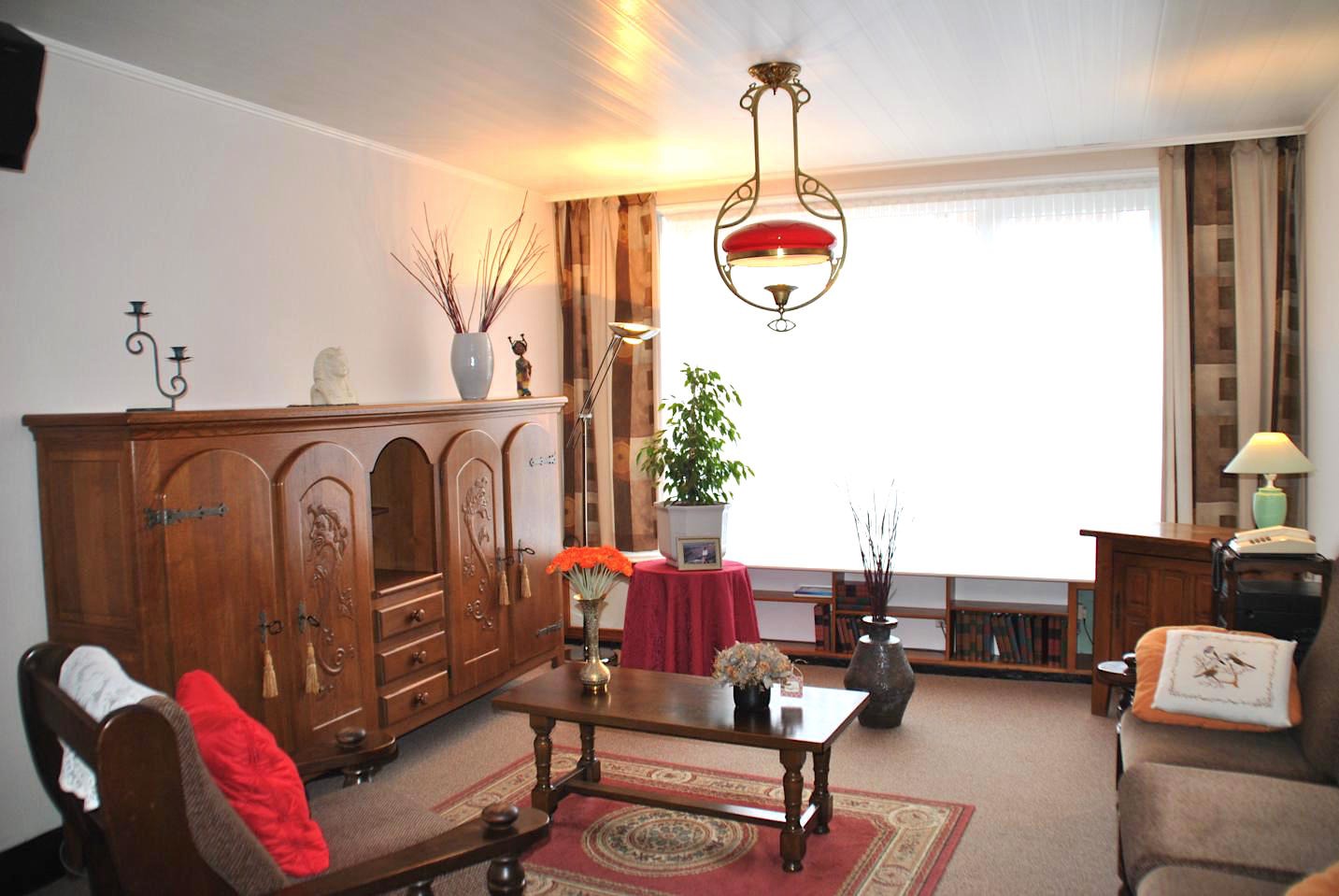 De leefruimte is ruim en gezellig ingericht. Er is heel veel lichtinval door zowel het grote raam langs de voor- en de achterkant. Vanuit de living hebben we ook een heel mooi zicht op de tot in de puntjes onderhouden tuin. Ook in de keuken kunnen we de tuin bewonderen. Er is hier eveneens ruim plaats voor een eettafel. Naast de keuken is een badkamer met bad, lavabo en toilet. Aansluitend is een berging met voorziening voor was- en droogautomaat.