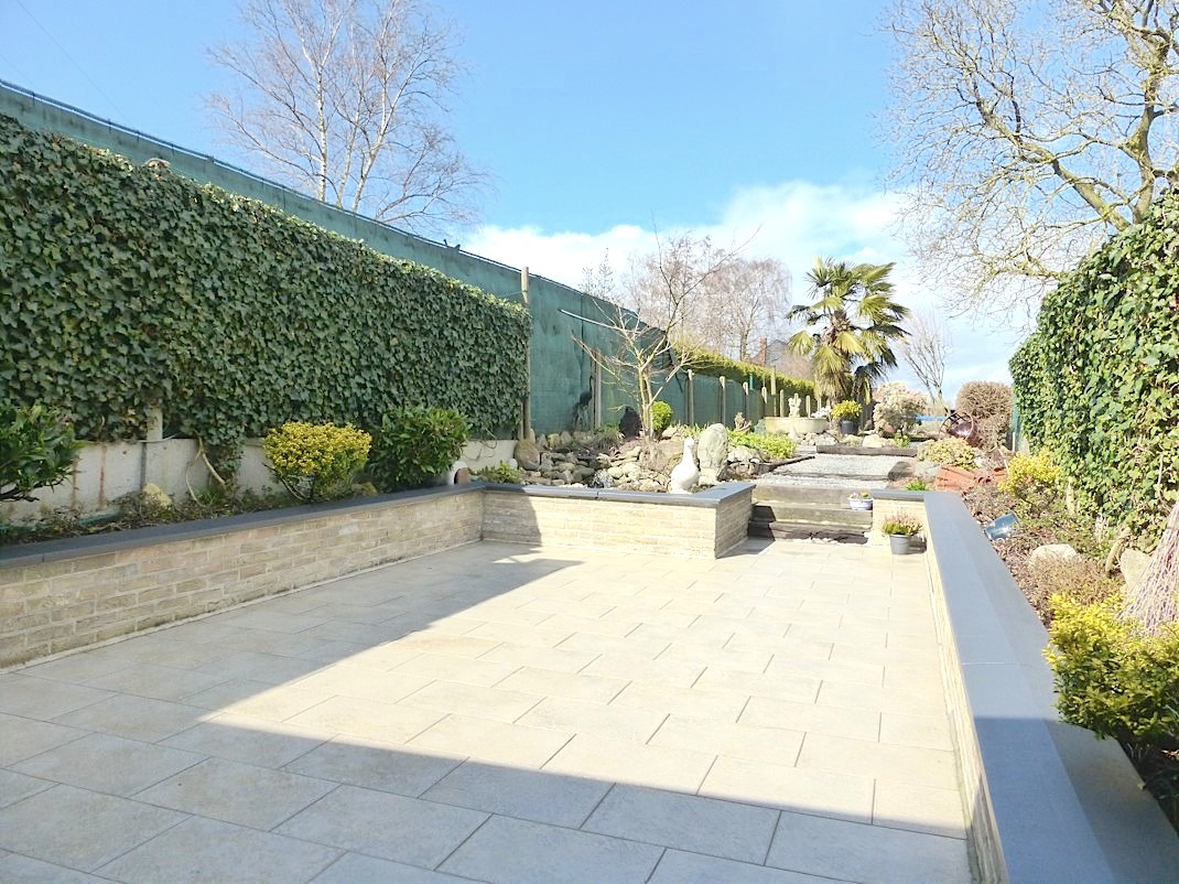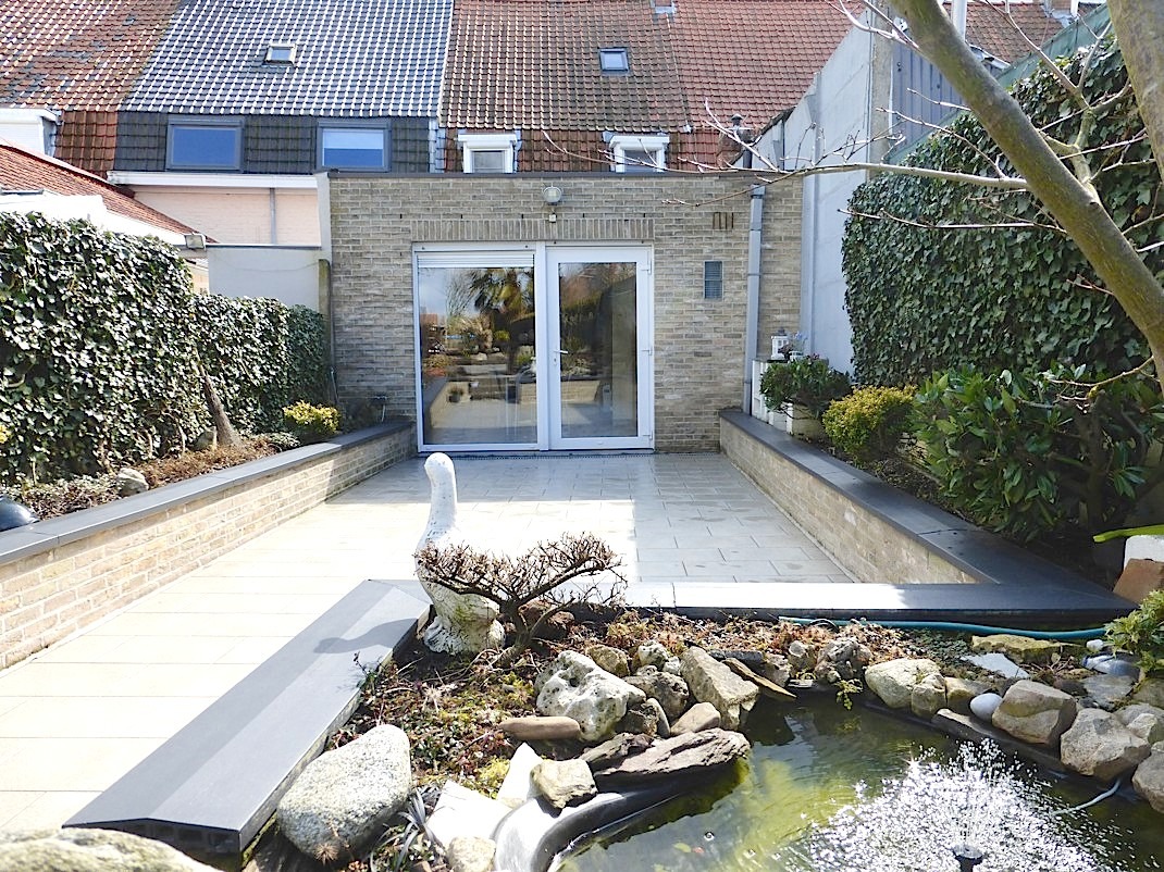 De tuin beschikt over een groot terras. Door de zeer fraaie aanleg van deze grote en gezellige tuin valt men van de ene verrassing in de andere. Het is er zeer rustig en gans de dag genieten!