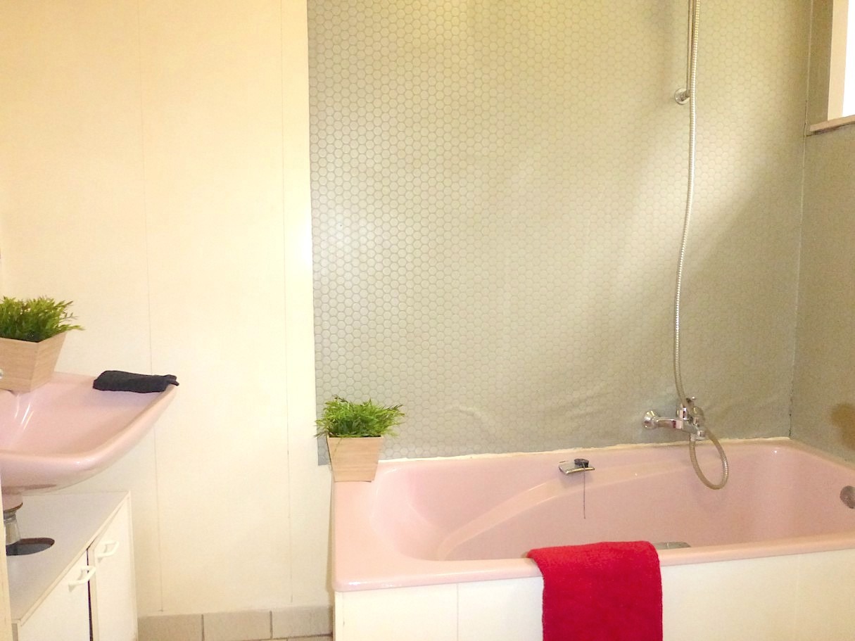 Ook het toilet en de badkamer vind en we op het gelijkvloers. De garage is inpandig en bereikbaar via de hal.