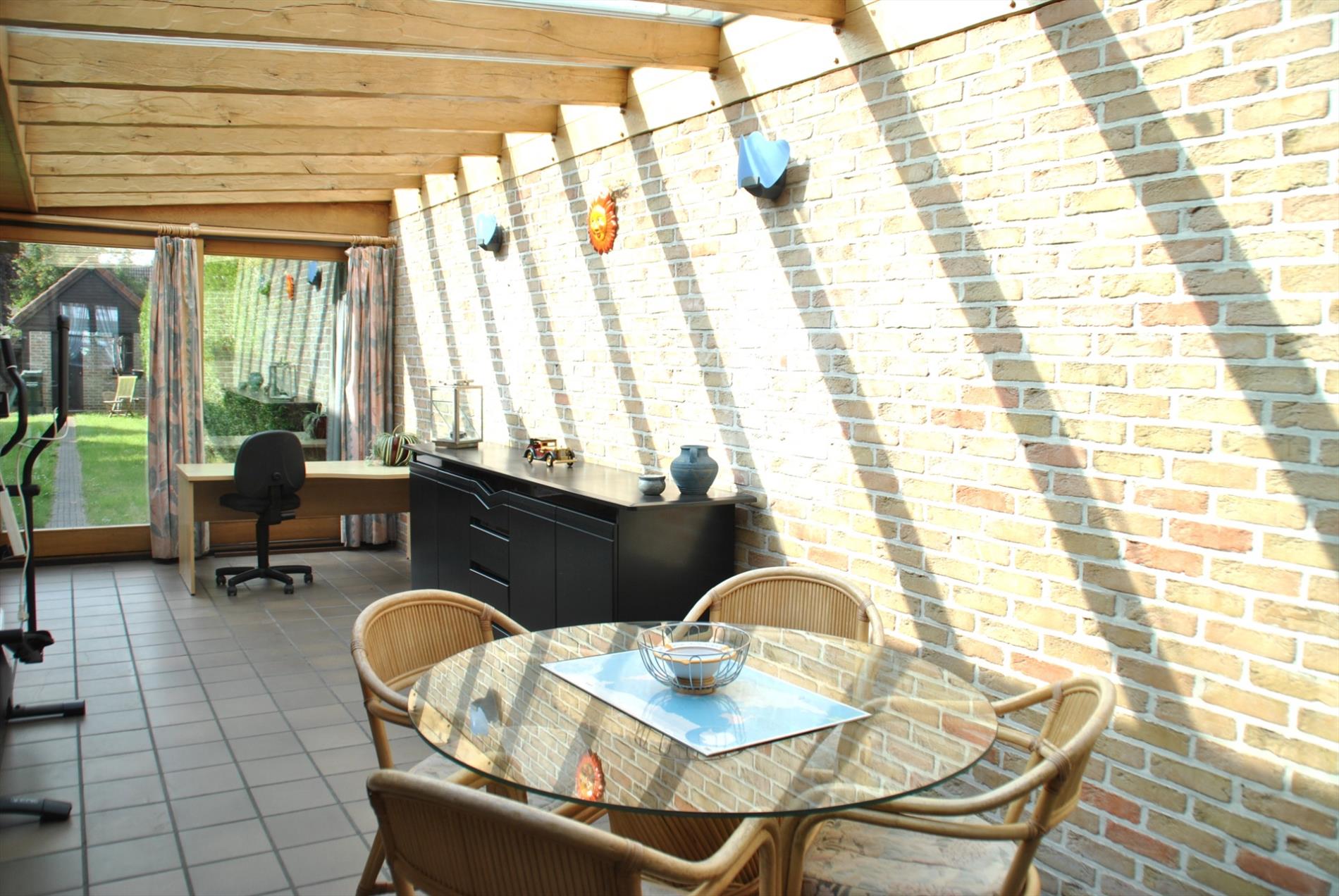Ook in de veranda is het heerlijk zitten. Het zicht op de zuidgerichte tuin is er heel aangenaam.