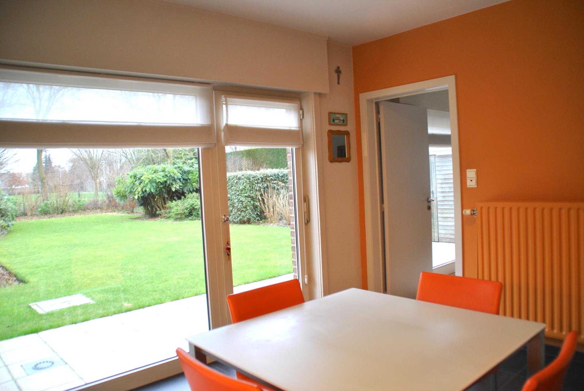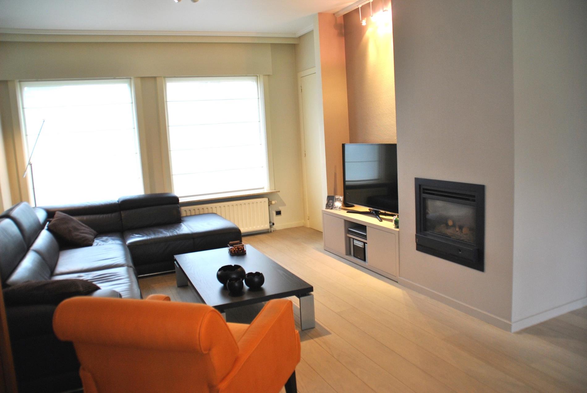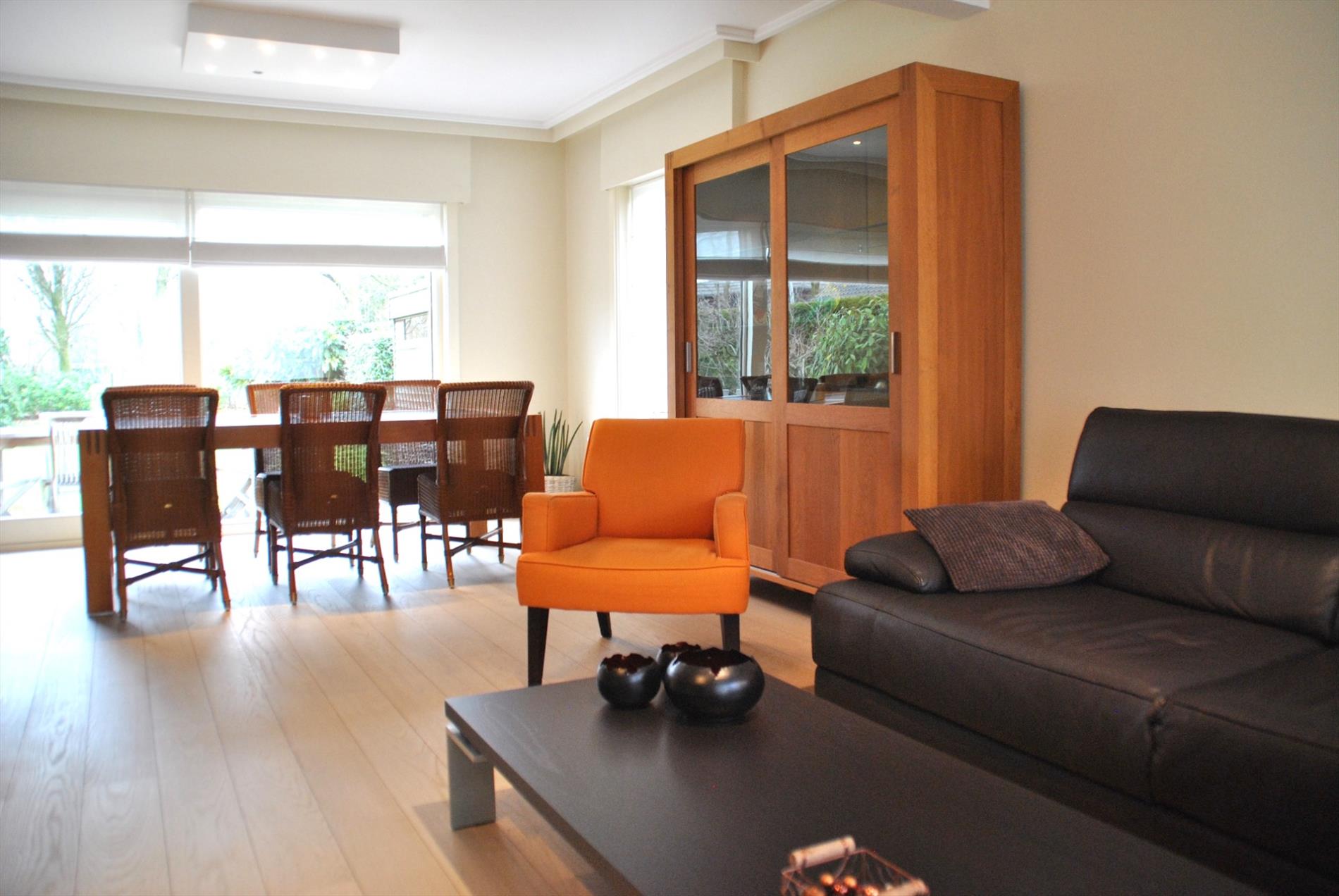 Via de voortuin en oprit komen we aan de inkomhal met gastentoilet om verder te gaan naar de leefruimte. Het massief parket en de gashaard zorgen ervoor dat het hier enorm gezellig is. Dankzij de vele ramen is het er zeer veel licht en hebben we een mooi zicht op de tuin en de groene omgeving.