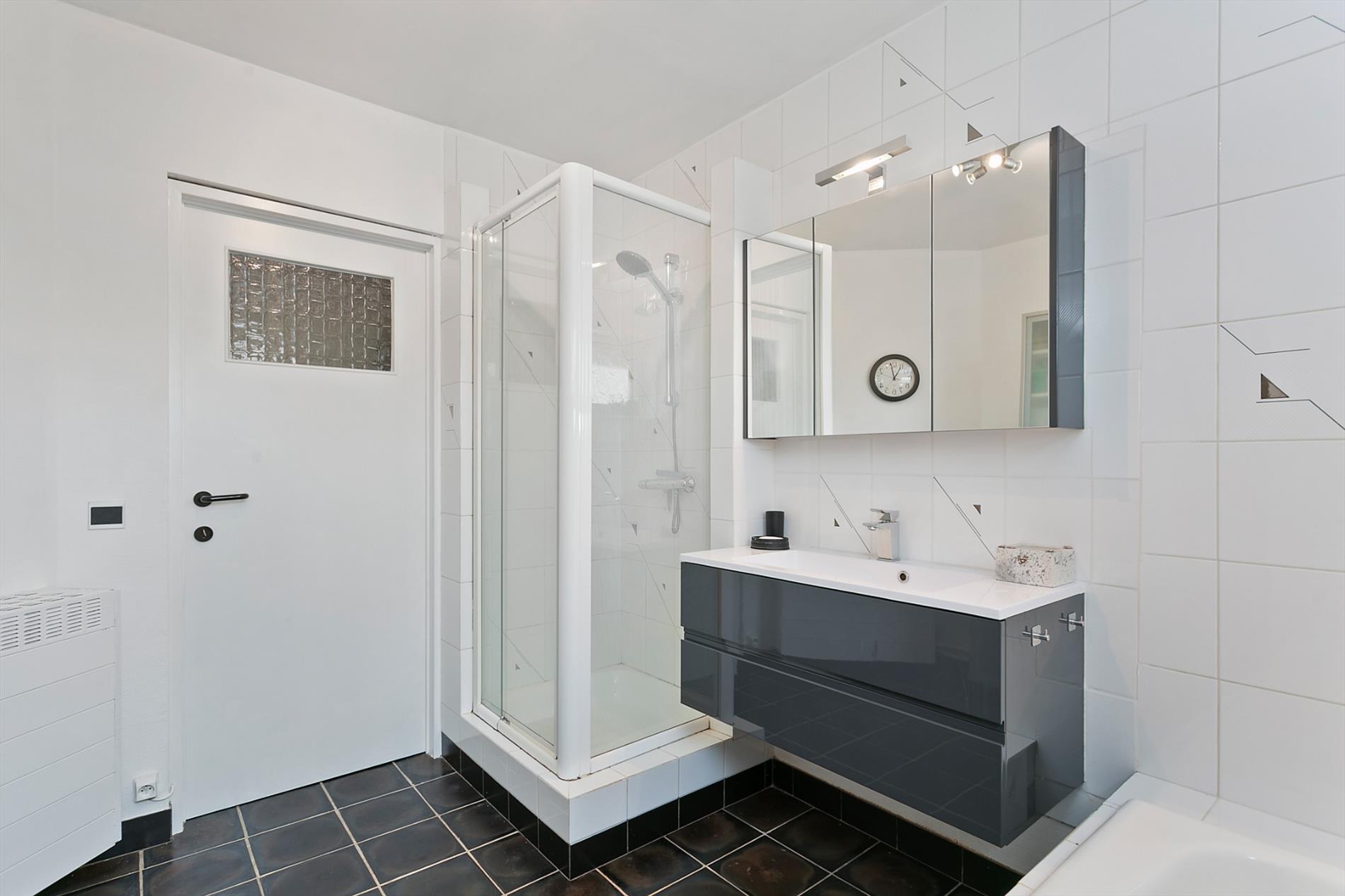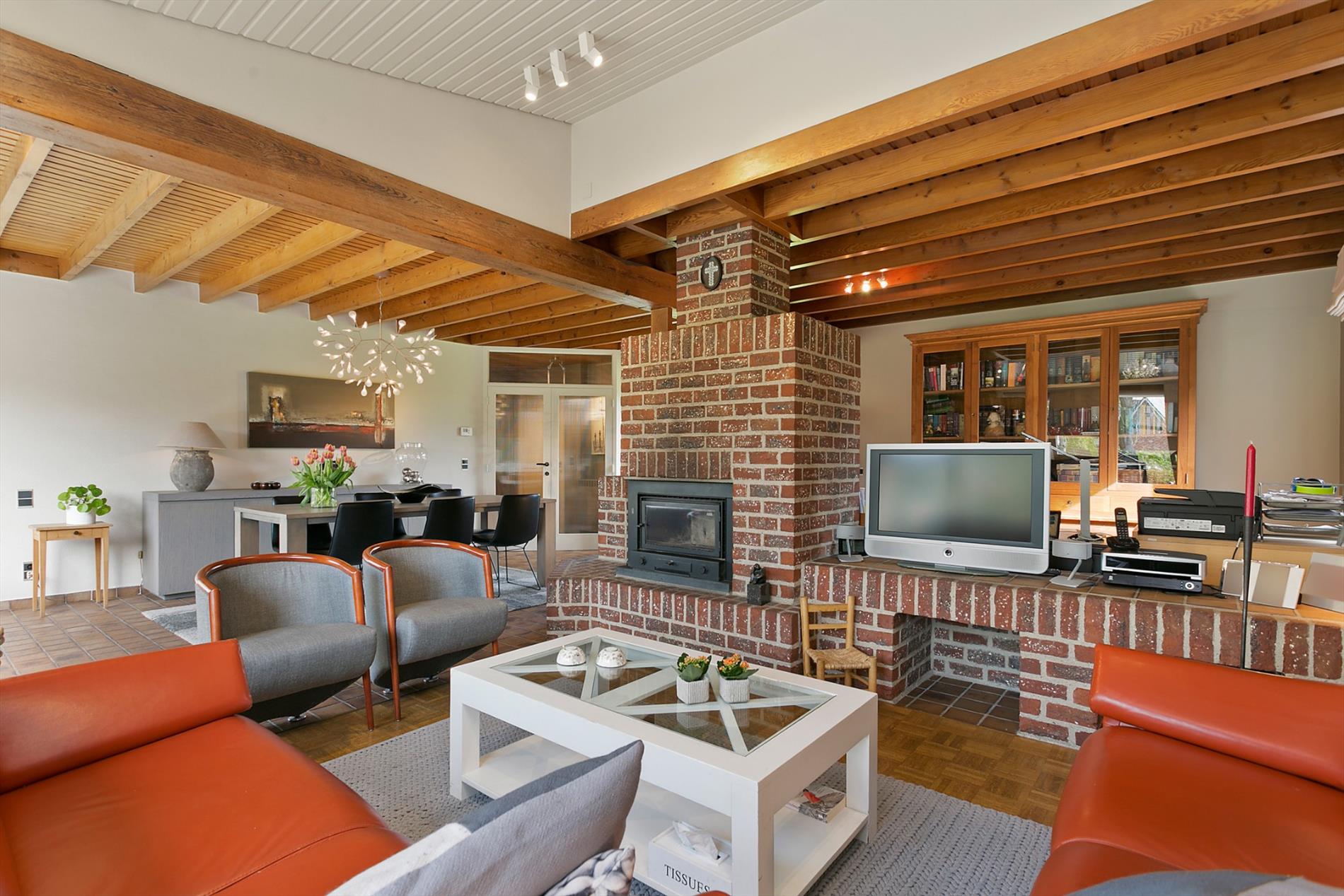 Via een zijstraatje van de hoofdbaan komen we tot bij de woning. Langs de grote voortuin treden we binnen in de hal met gastentoilet. De living is open, zeer leuk ingedeeld en beschikt over een haard. Van hieruit hebben we een zicht op de prachtige tuin. Aansluitend is er een grote ingerichte keuken met ontbijthoek. Op het gelijkvloers vinden we verder nog een zeer handige, grote bergruimte, een slaapkamer en een badkamer met lavabomeubel, ligbad en douche.