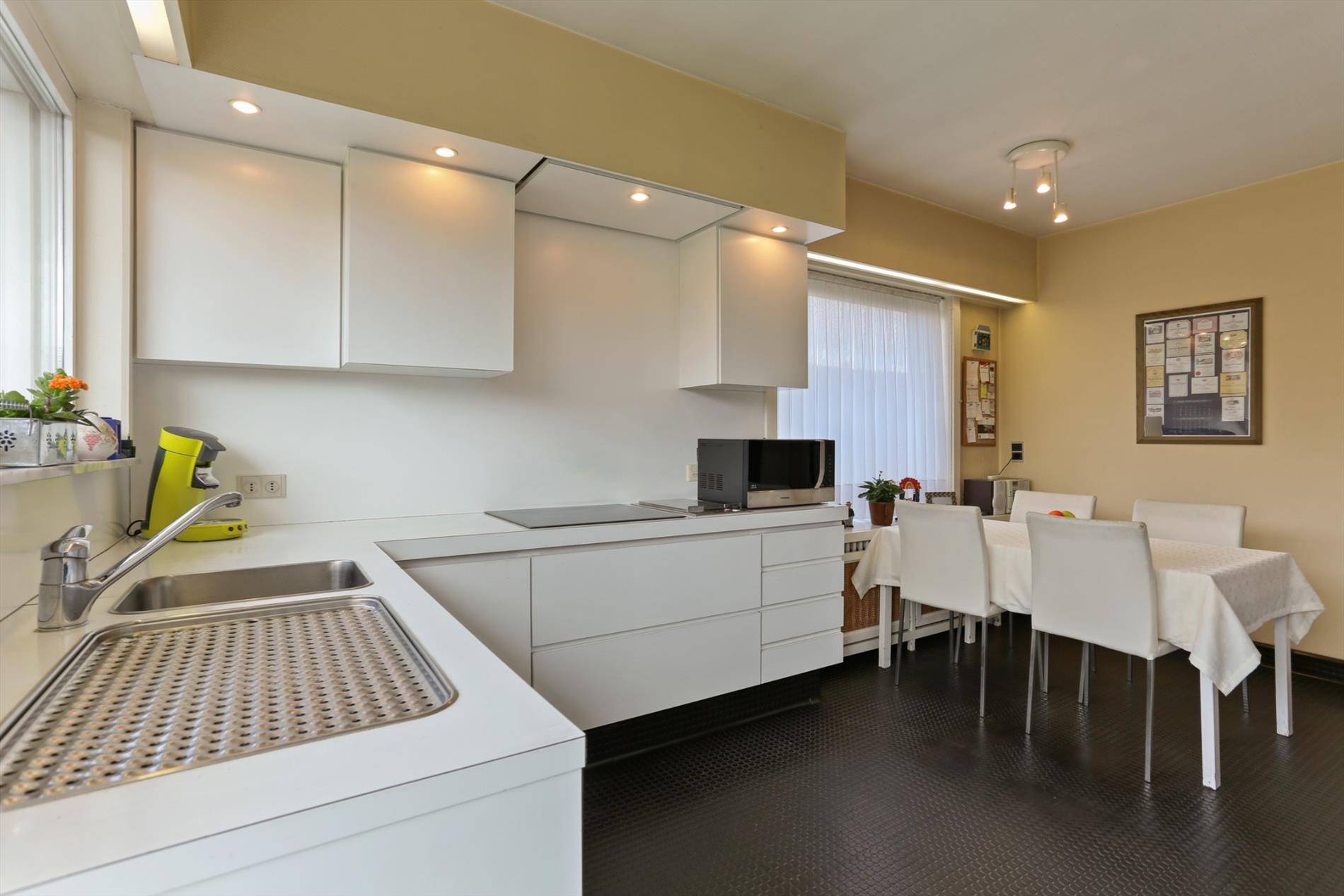 De living is een aantal jaar terug vernieuwd en voorzien van parket en een open haard! Dankzij de vele ramen komt er veel licht binnen en hebben we een open zicht op de tuin. Aansluitend hebben we een ingerichte keuken.