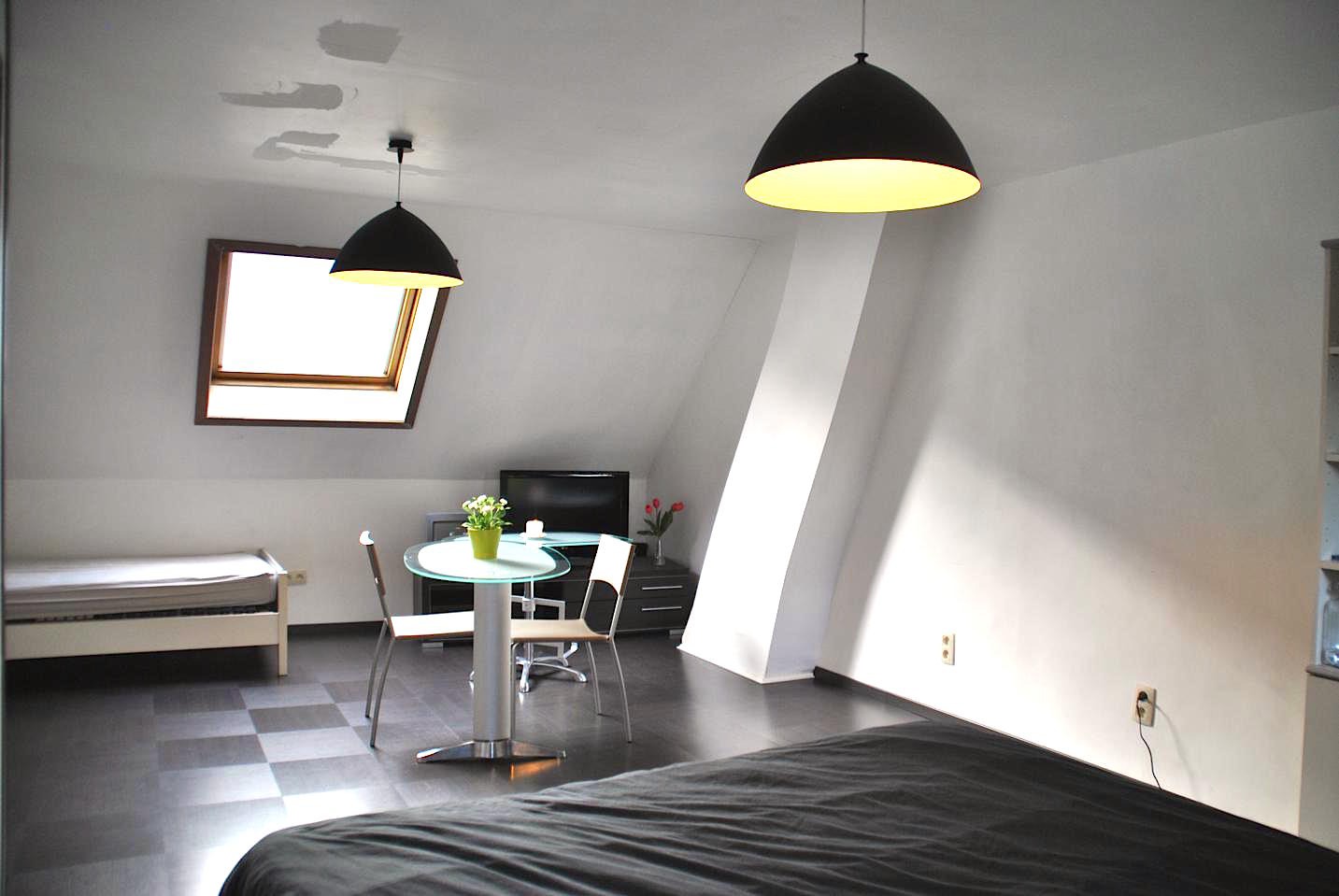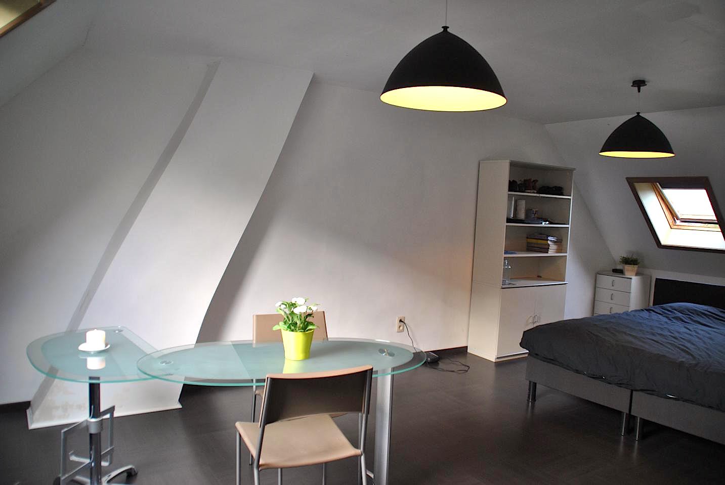 Op de bovenverdieping is er één heel grote kamer die met een minimale inspanning makkelijk kan worden opgedeeld in twee kamers.