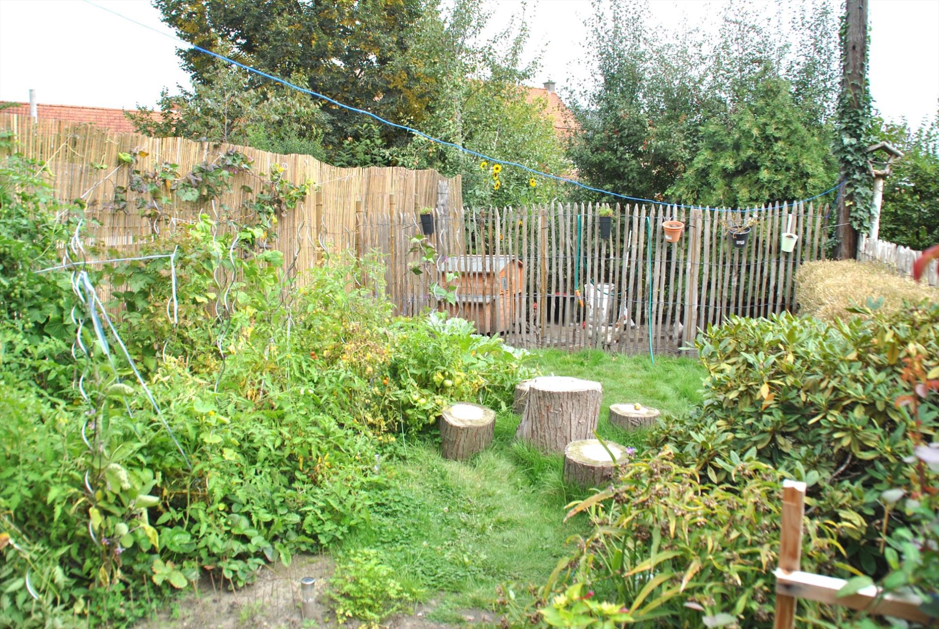 Achter de woning is er een grote berging waar de wasmachine en droogkast makkelijk een plaats vinden. De tuin is een oase van bloemen, groenten en kippen … genieten dus!