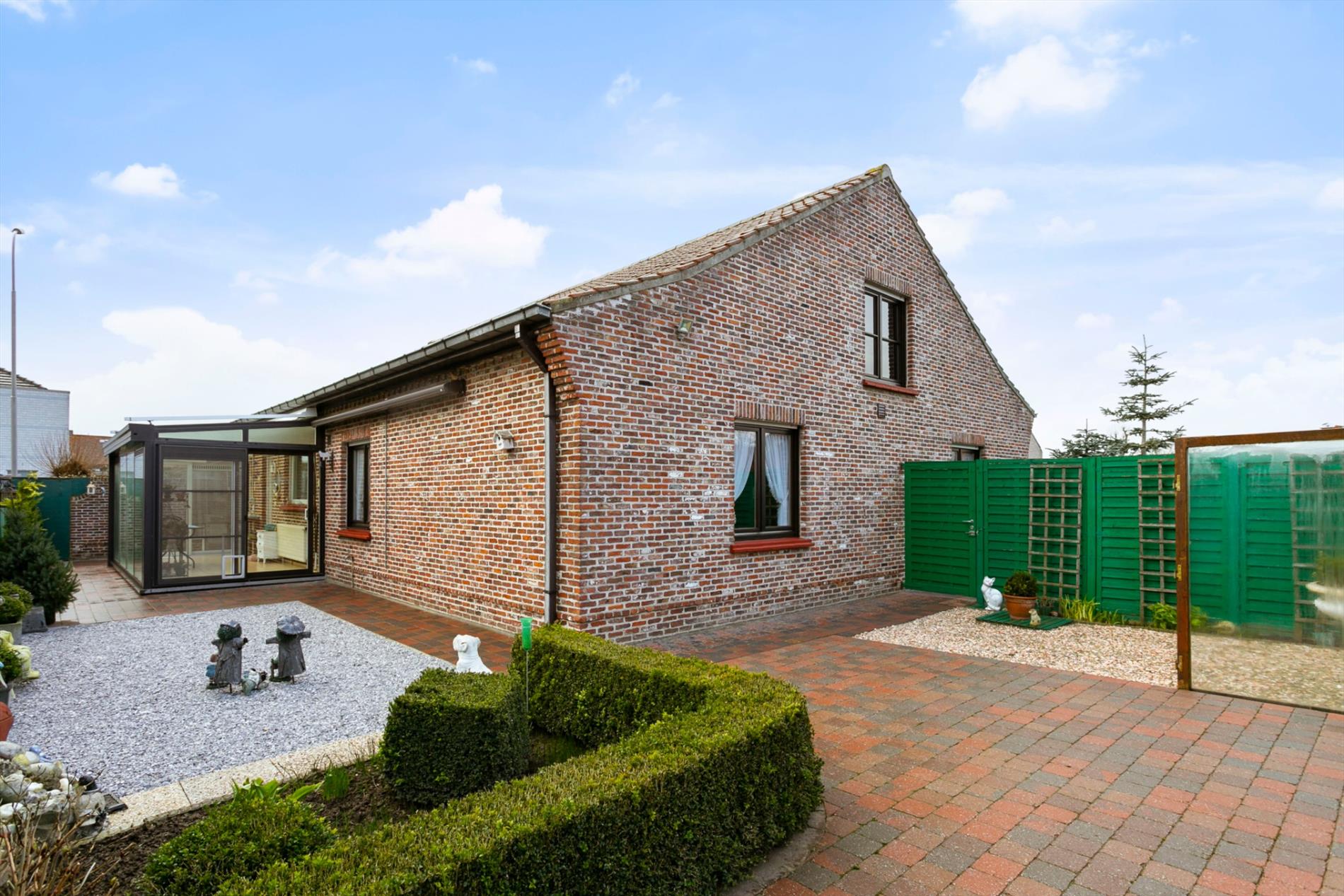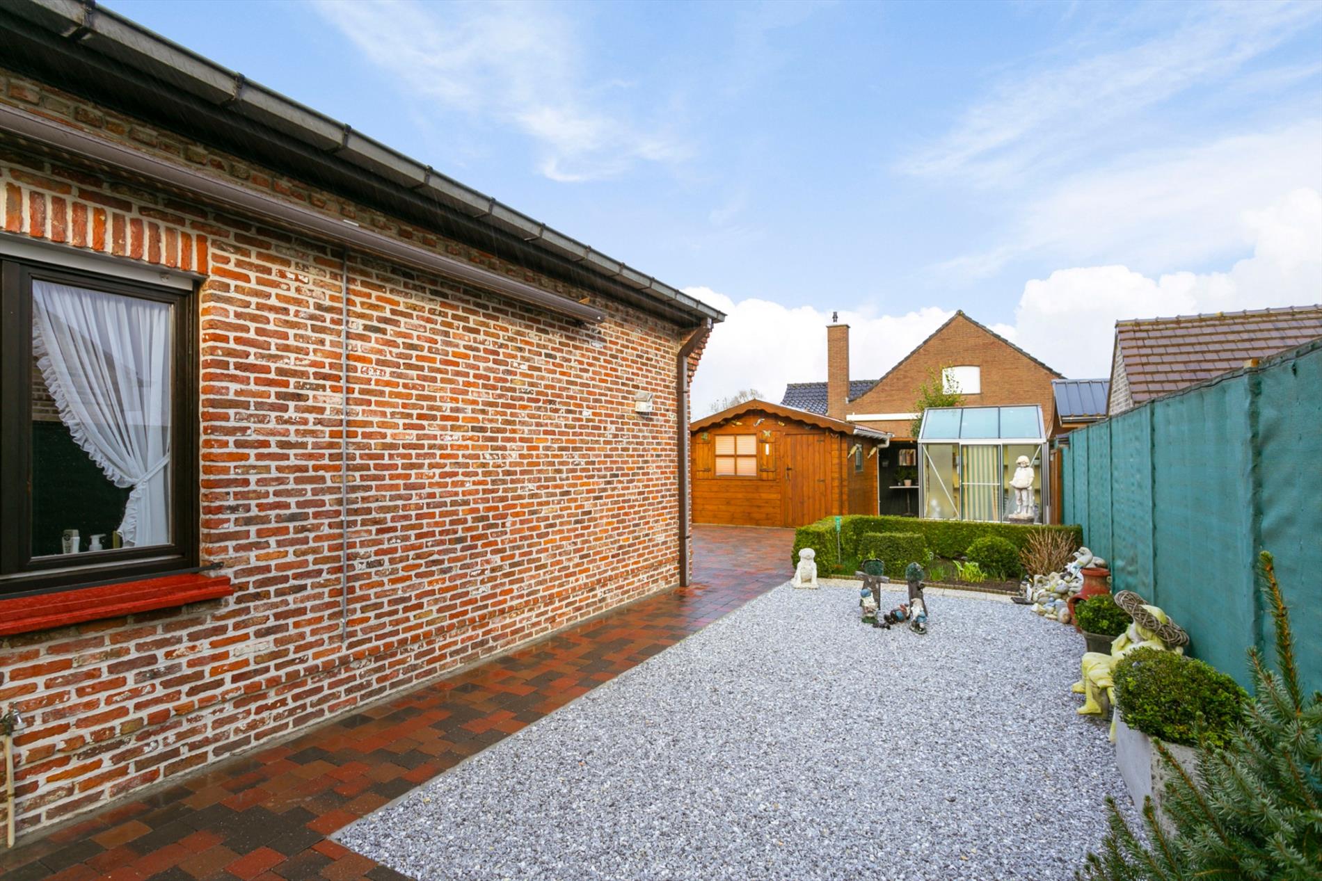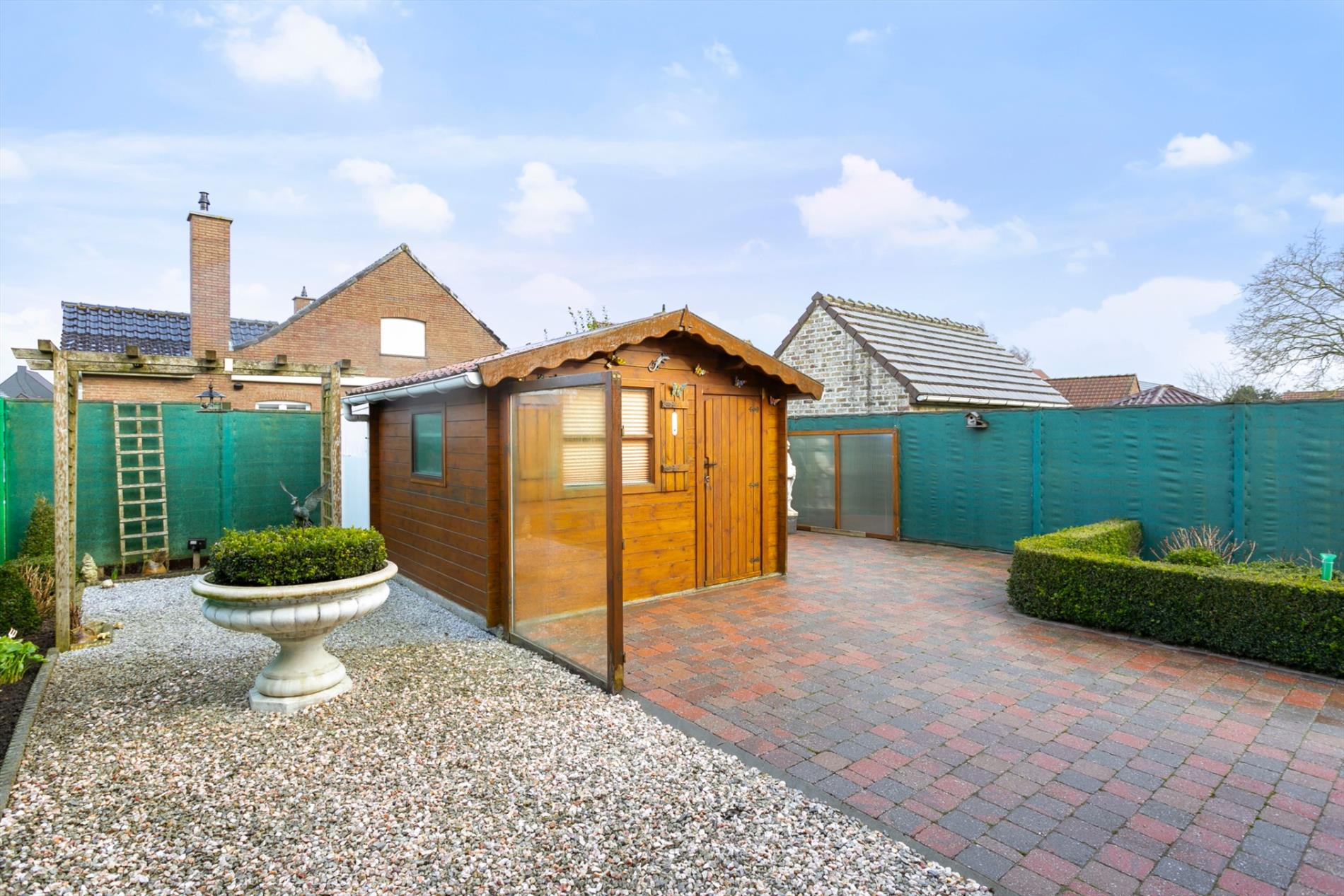 De tuin is onderhoudsvriendelijk aangelegd, voorzien van een tuinhuisje, een zonneluifel en verschillende terrassen. Zo kan men op elk moment van de dag genieten van de zon, in alle privacy!