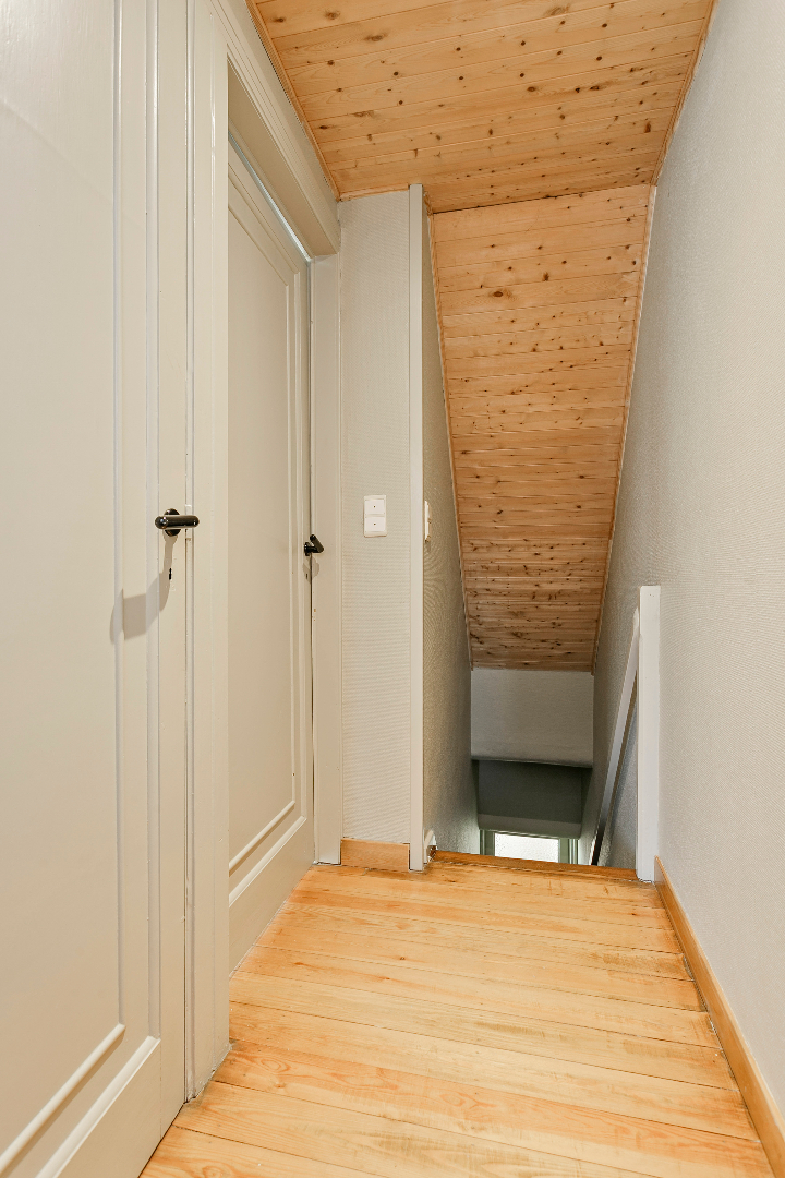 Via een vaste trap kunnen we naar de geïsoleerde zolder. Hier kunnen we nog makkelijk 1 of 2 extra kamers maken.