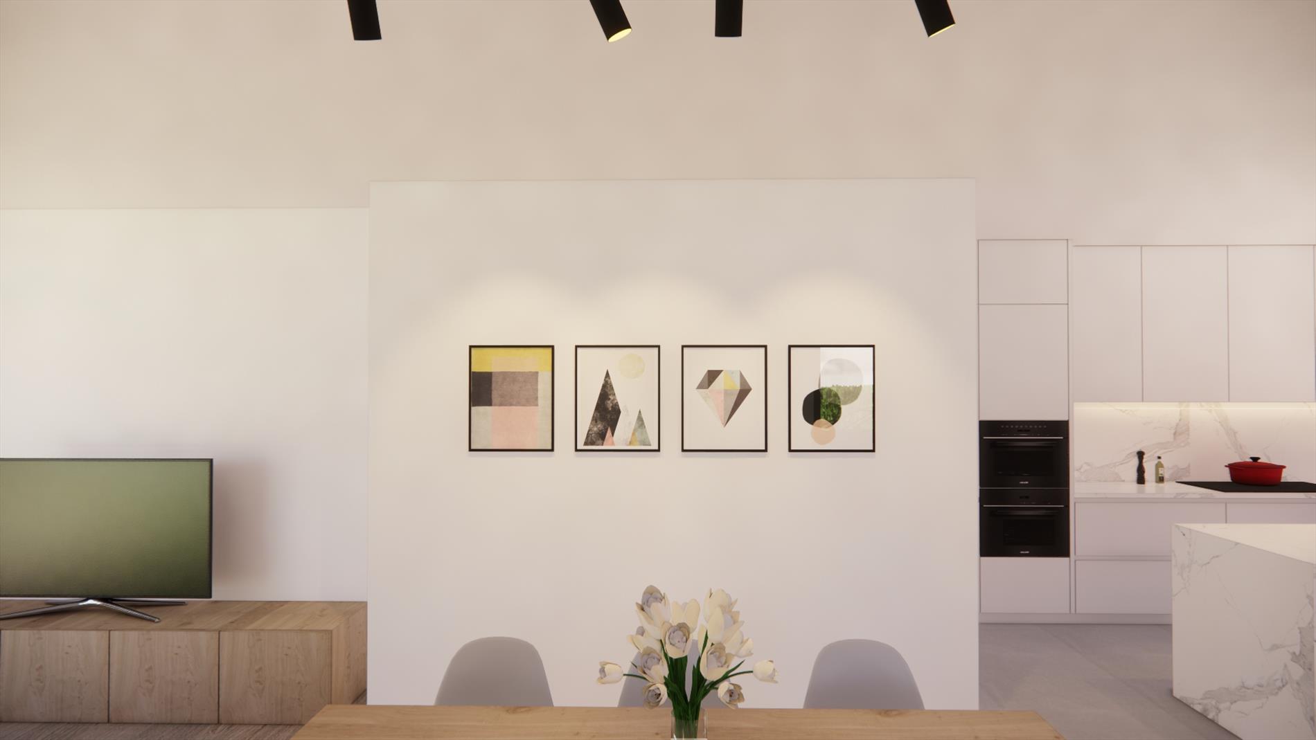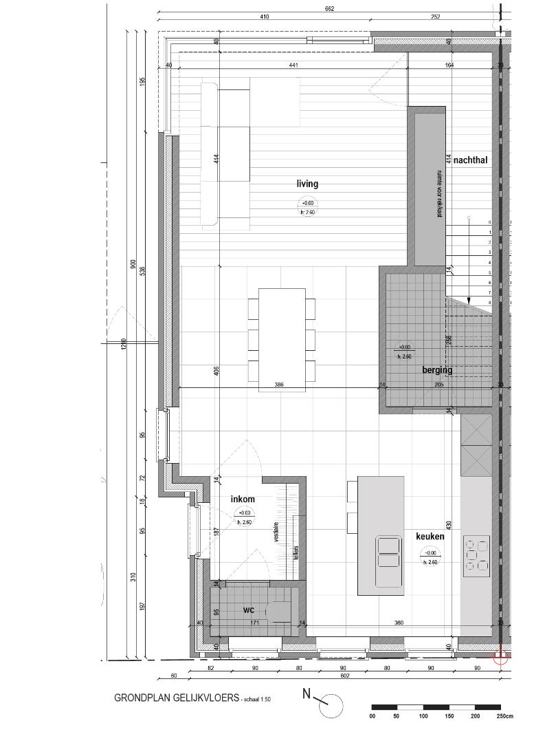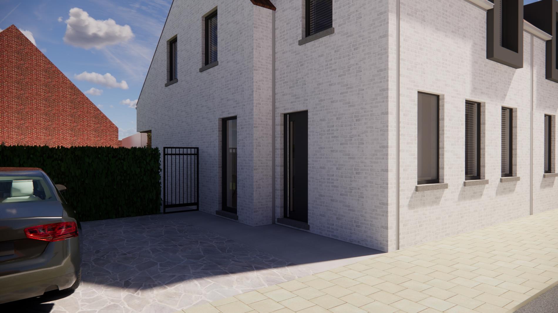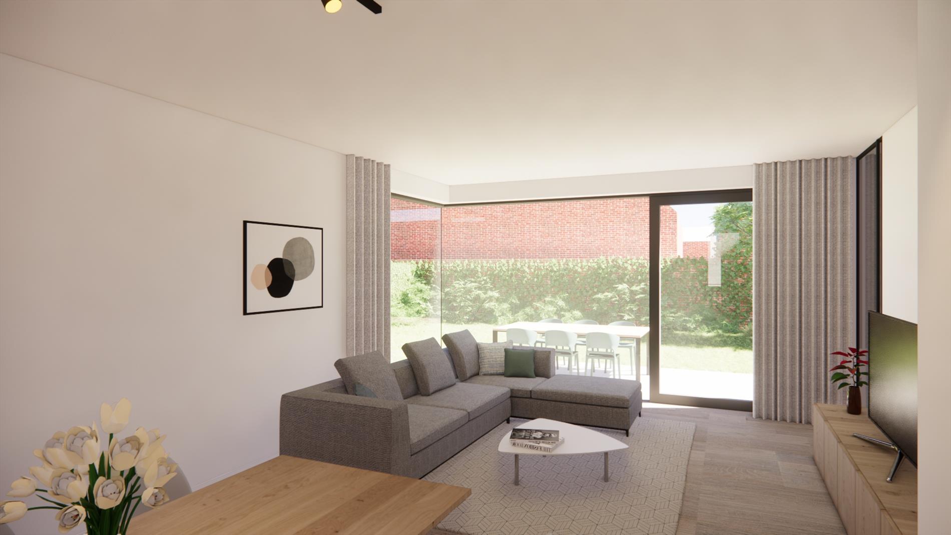 Vlakbij winkels, scholen en openbaar vervoer vinden we deze mooie nieuwbouwwoning terug. Deze maakt deel uit van de kleine verkaveling ‘’t Roodhuys’ bestaande uit 2 nieuwbouwwoningen en een totaalrenovatie van een oude herberg. De buitenkant onthult reeds dat het om een eigendom gaat die met de grootste precisie is afgewerkt. Langs de oprit, met plaats voor 2 wagens, bereiken we de voordeur die ons binnenleidt in een inkomhal met gastentoilet. Doorheen de glazen deur met zwart stalen frame kunnen we reeds proeven van de smaakvol ingerichte leefruimte. Door de grote raampartij met hoekraam achteraan worden we ondergedompeld in een zee van licht en ruimte. De leefruimte is opgedeeld in een zithoek op parket en een eethoek. Vanuit beide is er mooi zicht op de tuin. De open keuken bevindt zich langs de voorzijde van de woning. De keuken beschikt over een eiland en kan volgens eigen smaak worden ingericht. Aanpalend is er een handige berging.