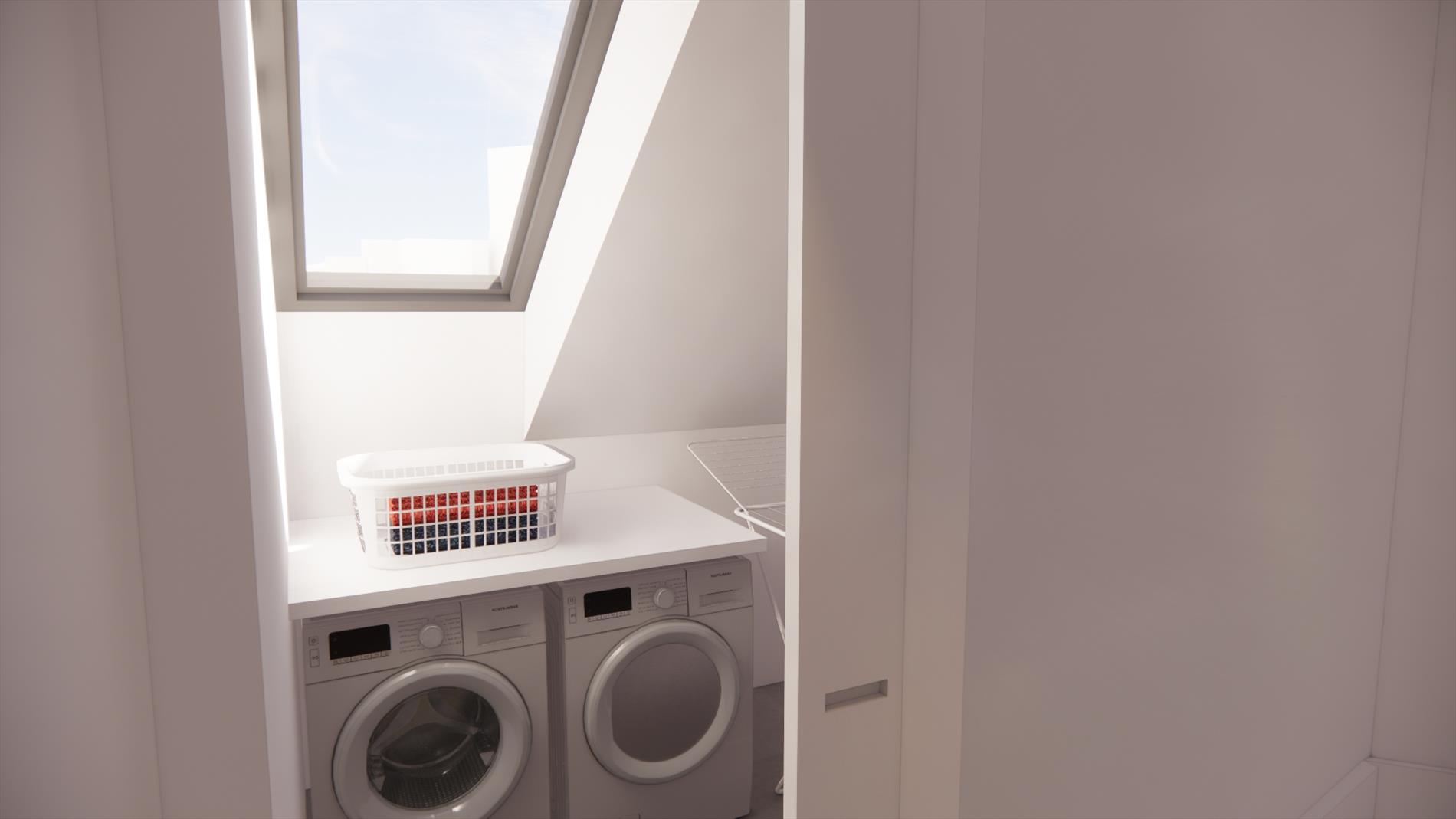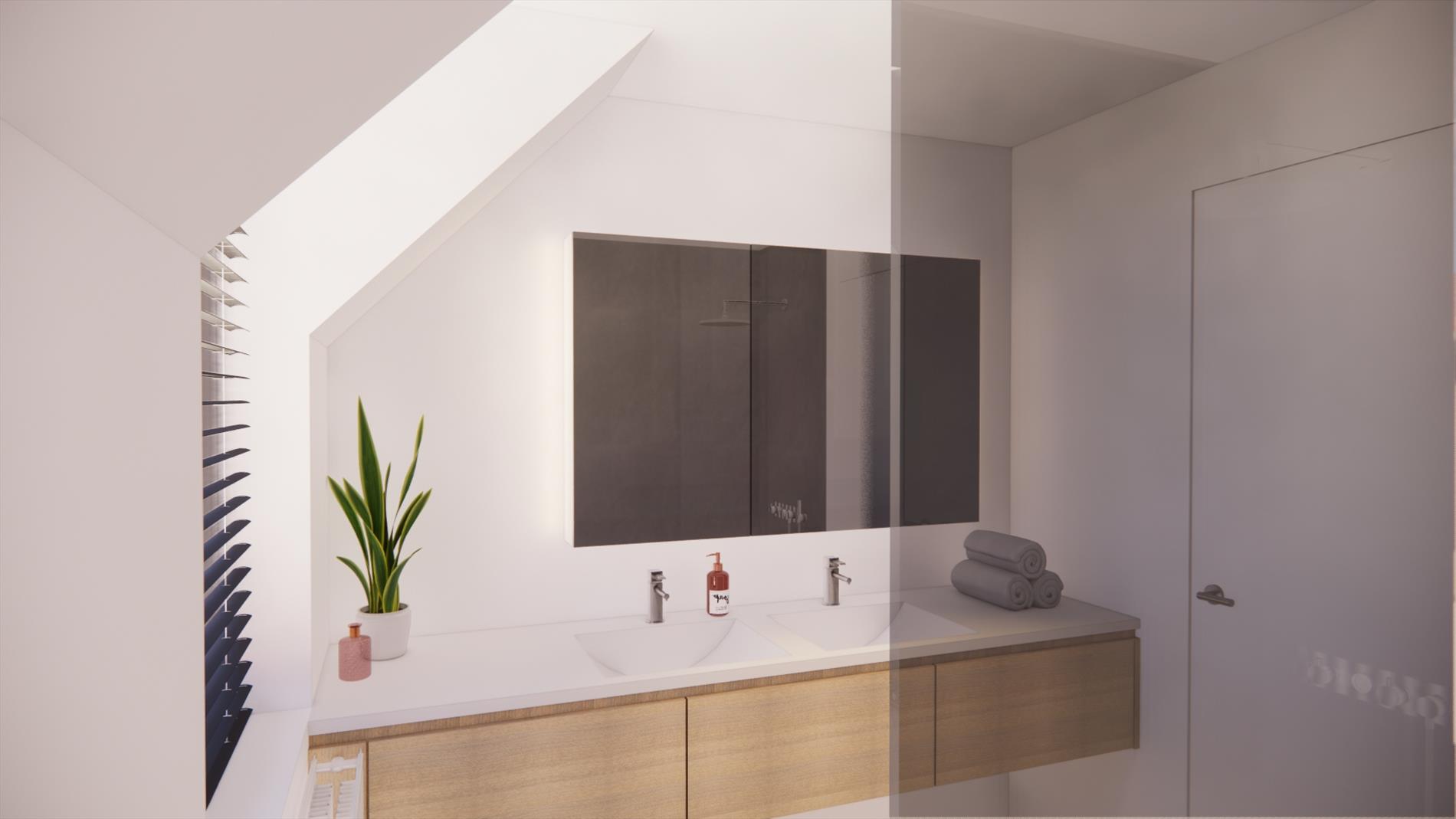 Op de bovenverdieping vinden we de ouderslaapkamer, 2 kinderkamers, een apart toilet, de wasberging en de badkamer terug. De badkamer bestaande uit een dubbele lavabo en inloopdouche kan nog naar eigen smaak worden afgewerkt.