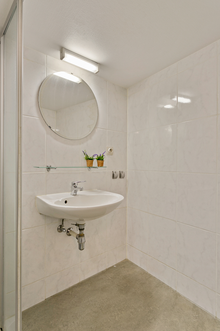 Op de volte bevindt zich de badkamer met lavabo en douche. De bovenverdieping beschikt over 3 slaapkamers en een zolderruimte. Op de bovenverdieping kan men ook perfect kamers maken die open zijn tot in de nok.