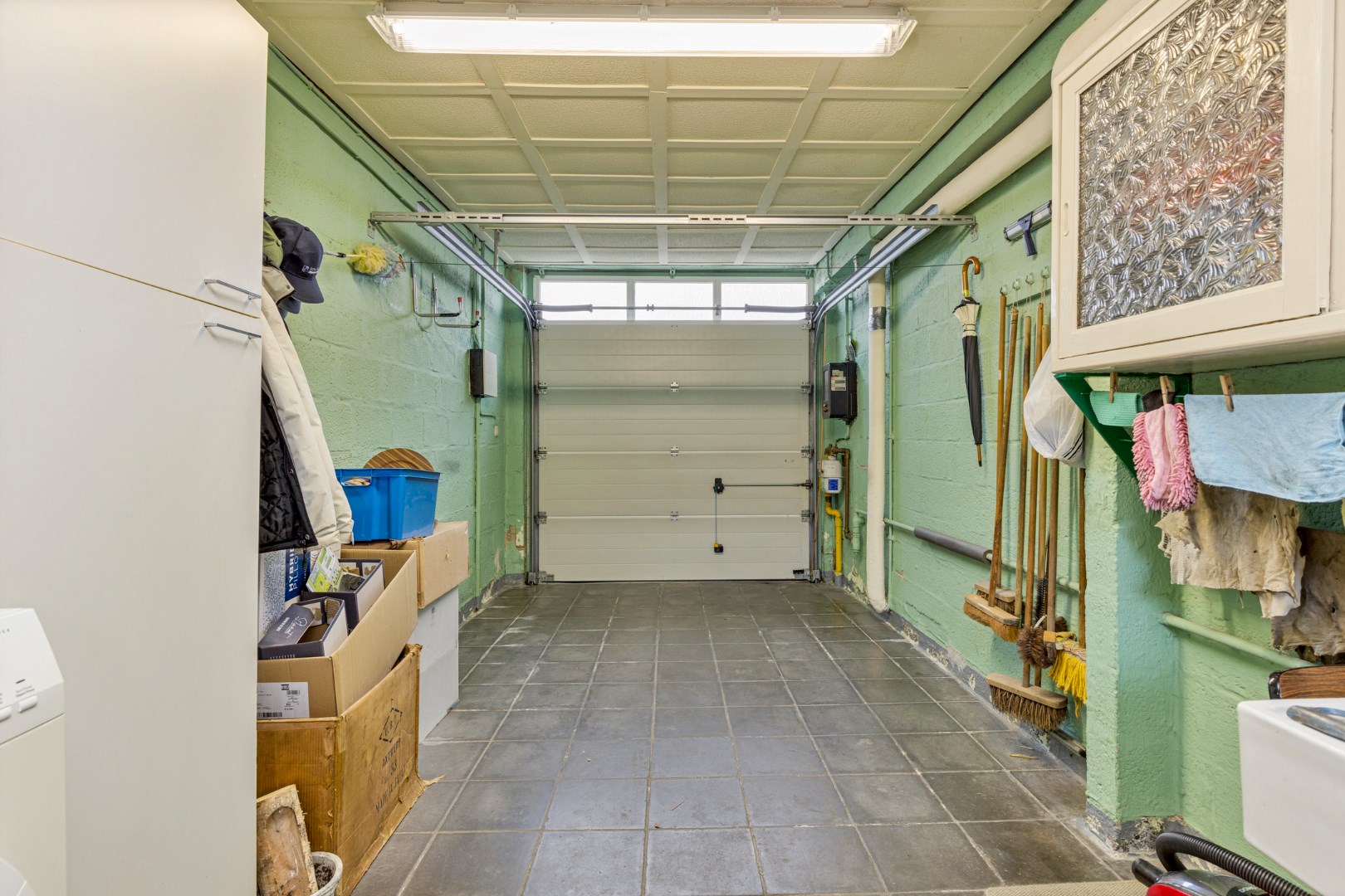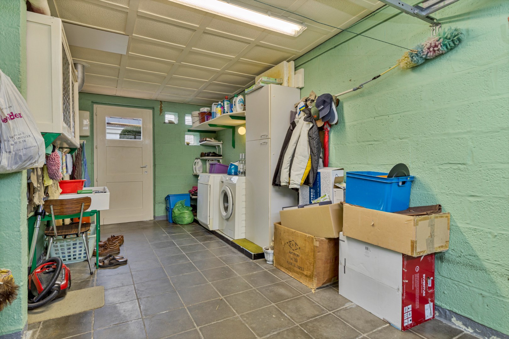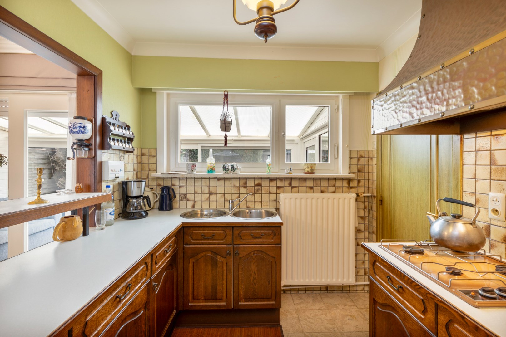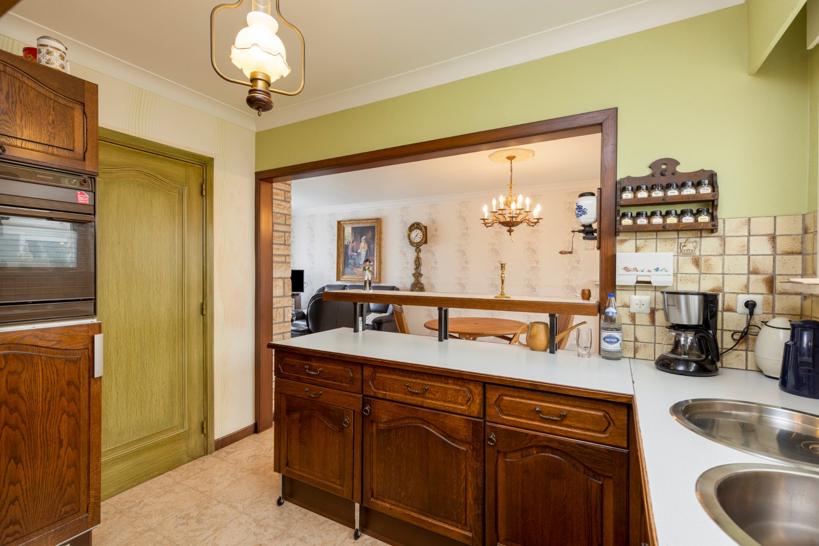 De praktische keuken sluit aan bij de leefruimte en is eveneens grenzend aan de veranda. Vanuit de keuken hebben we ook toegang tot de handige bergruimte en kelder. Via de keuken kunnen we naar de garage die ruim genoeg is voor extra stockage, wasmachine, ....