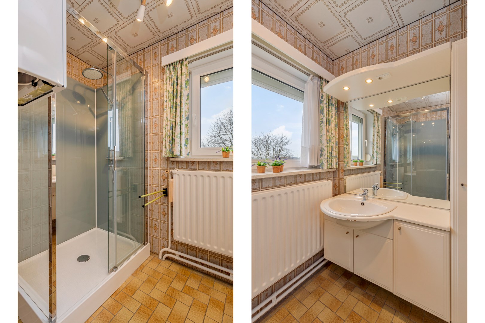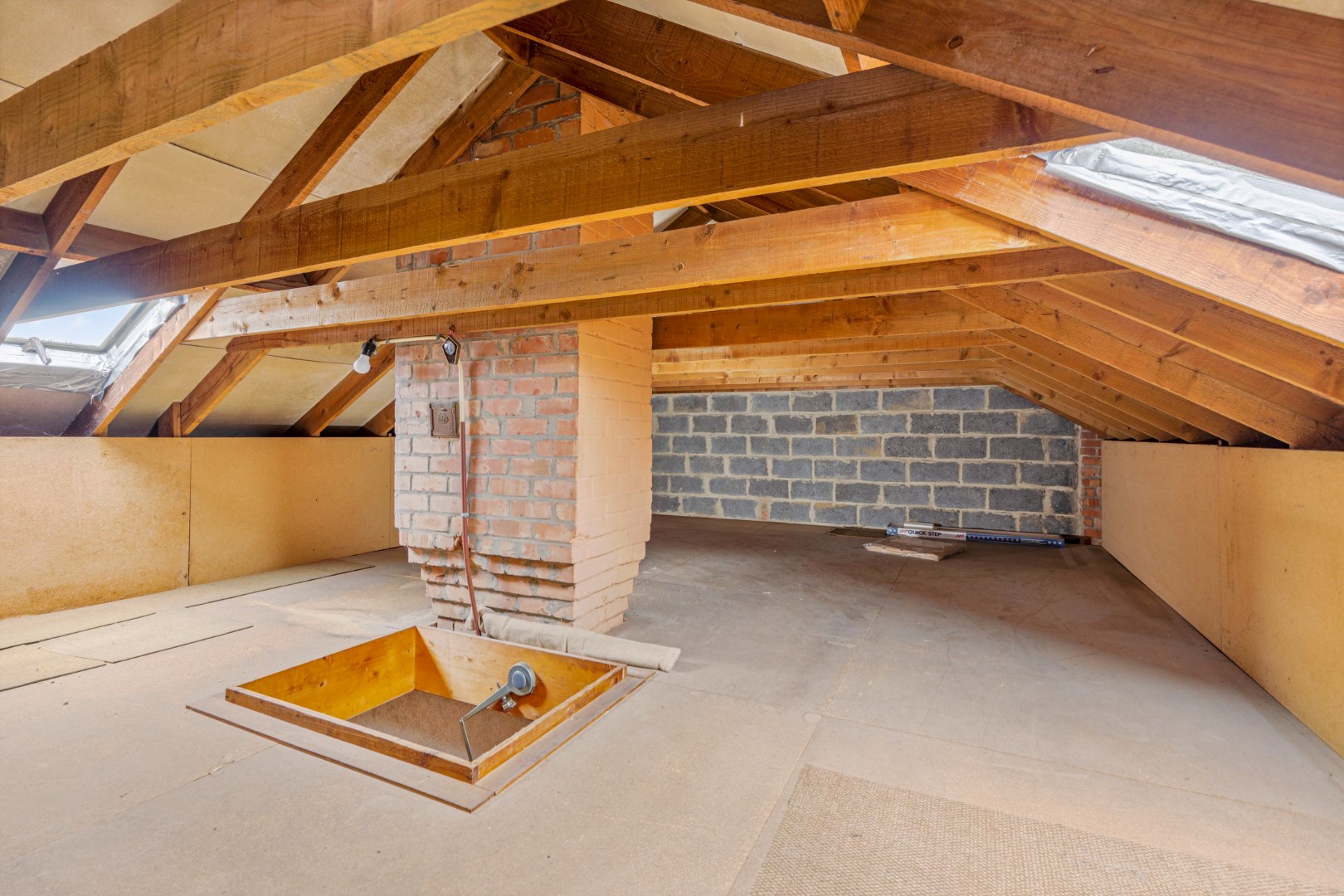 De verdieping beschikt over 3 slaapkamers en een badkamer met lavabo en inloopdouche. De bergzolder is voorzien van een onderdak maar is nog niet geïsoleerd.