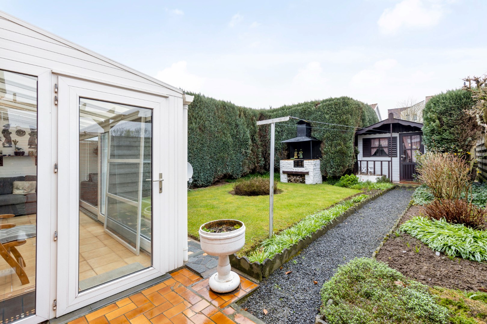 De hele dag rond kan u in de tuin zalig genieten van de zon. Het tuinhuis biedt bergruimte voor tuinmateriaal en tuinmeubels. Achter de haag is er zelfs nog een stukje tuin dat als vroeger moestuin werd gebruikt.