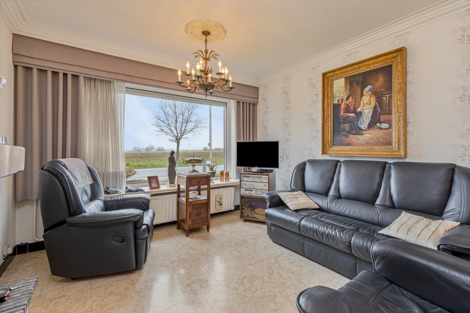 We parkeren de wagen op de oprit en komen de woning binnen in de hal met apart toilet om verder te gaan naar de living. Deze is zeer lichtrijk. Van hieruit hebben we een zicht op de weides langs de voorkant. Langs de achterzijde hebben we de veranda met zicht op de tuin.