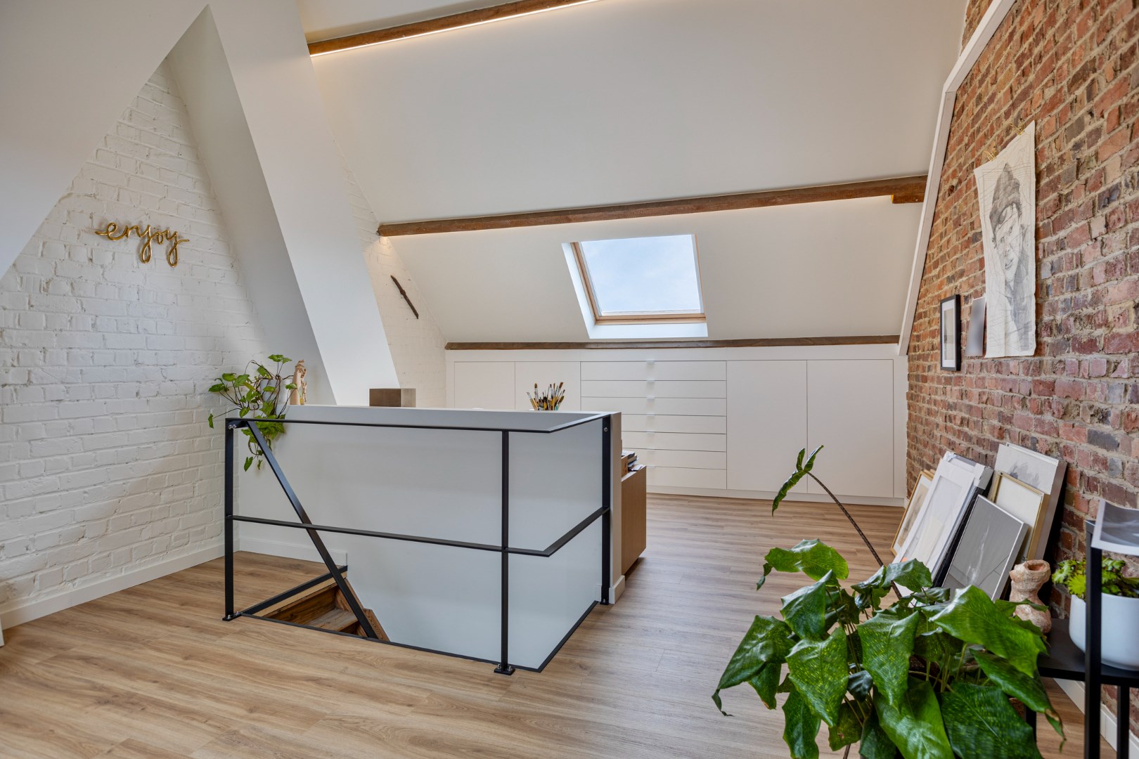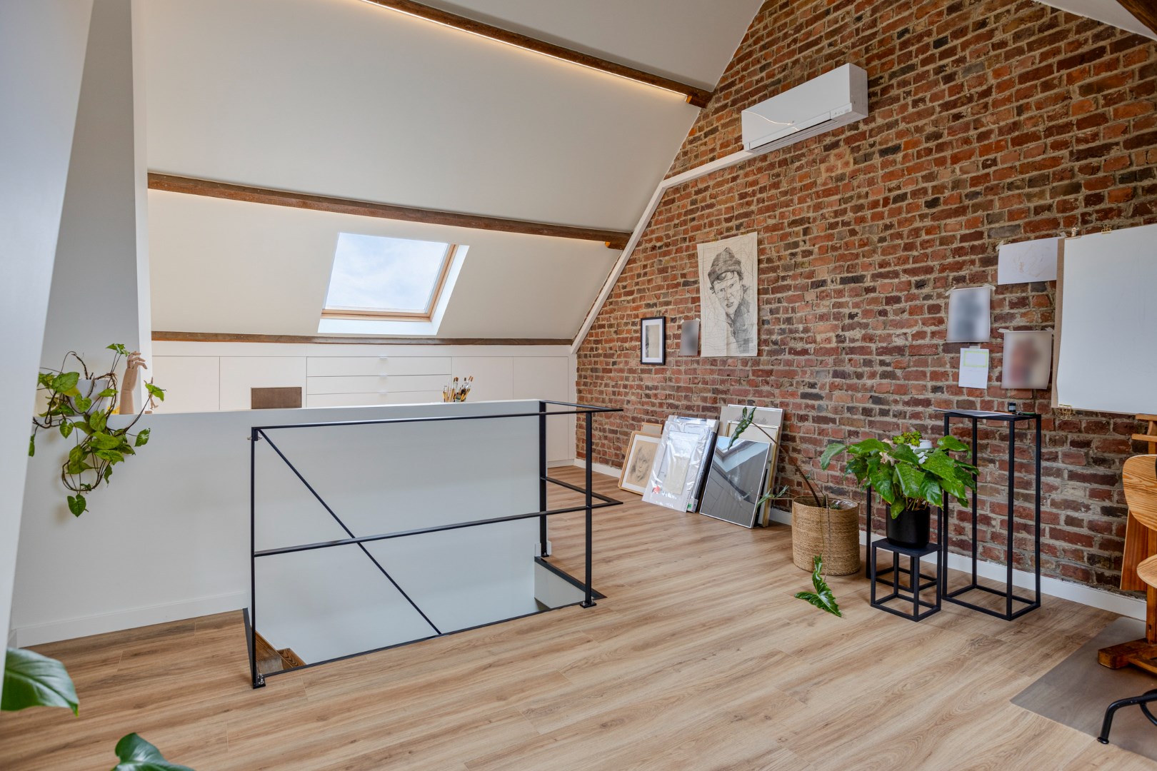 Via een vaste trap kunnen we naar de magnifieke gerenoveerde zolderverdieping. Dit is de perfecte master bedroom of bureau/hobbyruimte. Deze wordt verwarmd/gekoeld met een nieuwe warmtepomp.
