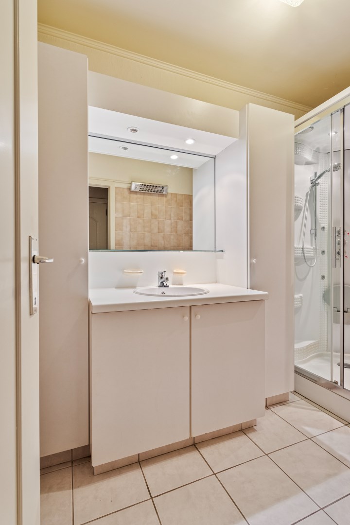 De woning beschikt over 2 slaapkamers en een badkamer met lavabomeubel en douche. Het toilet is apart.