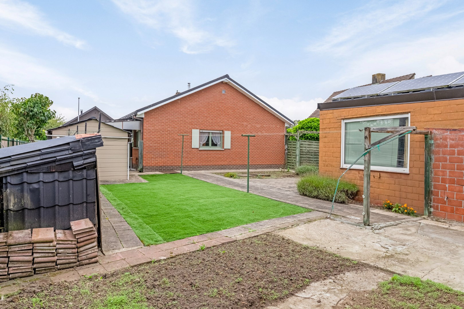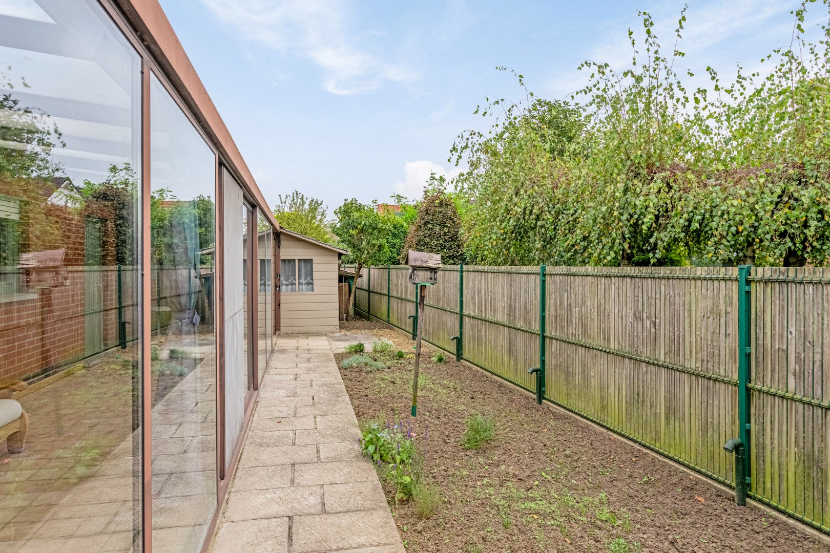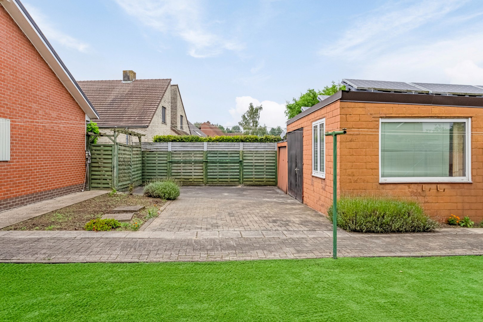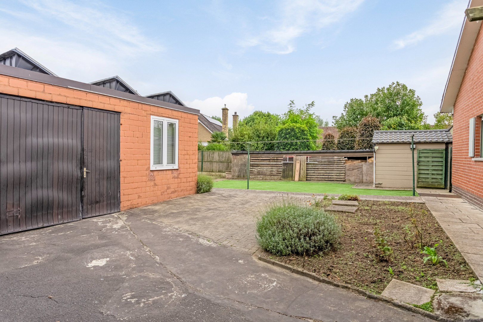 Achteraan het perceel bevinden zich een garage en een ateliertje/garage. Ideaal als werkplaatsje voor de doe-het-zelver of als berging.