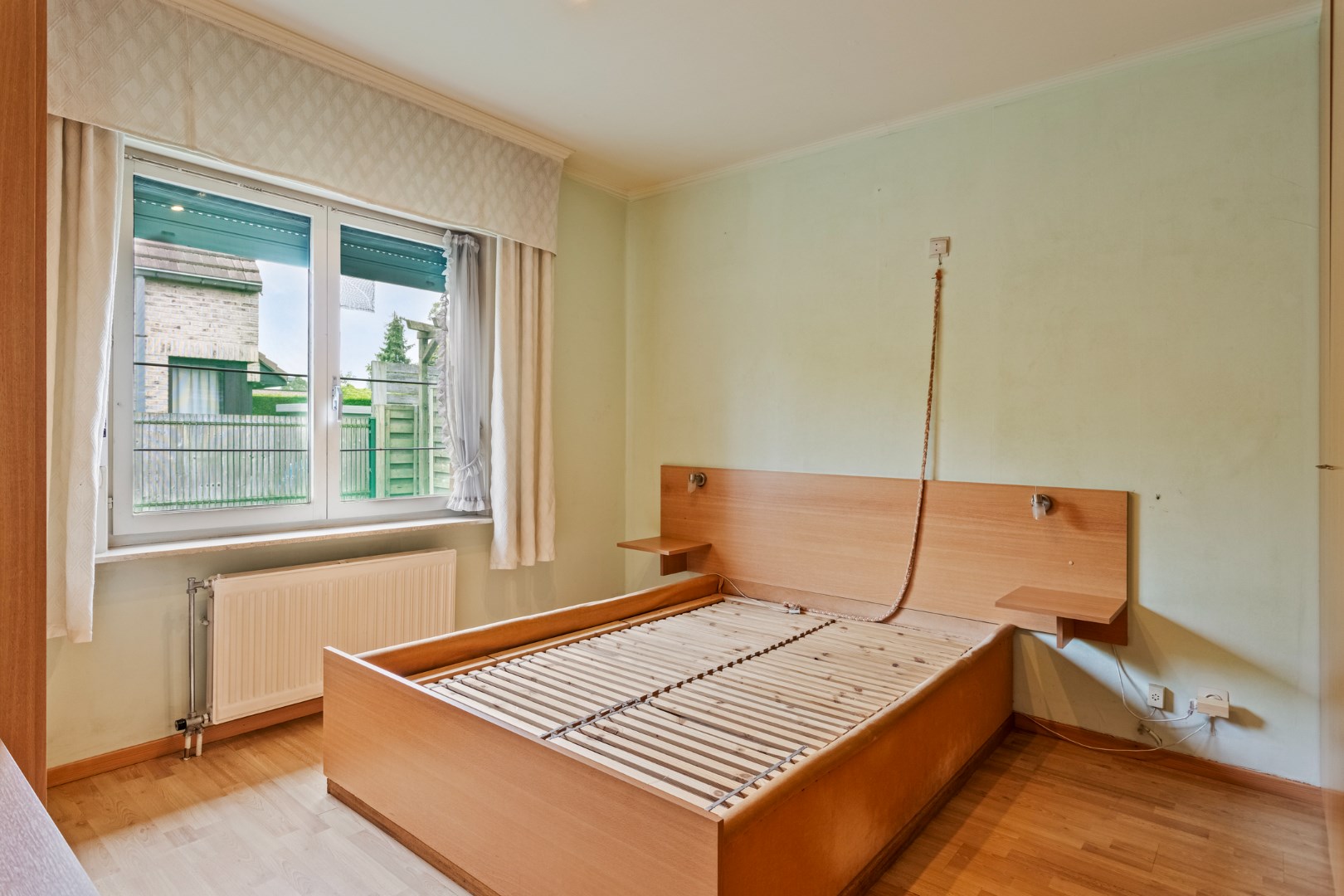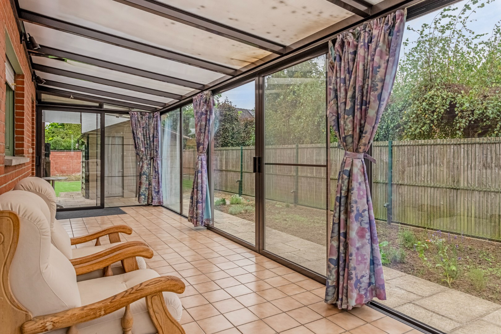 Grenzend aan de keuken en de living is er een veranda aanwezig en rondom de woning vinden we een ruime tuin met tuinhuisje.