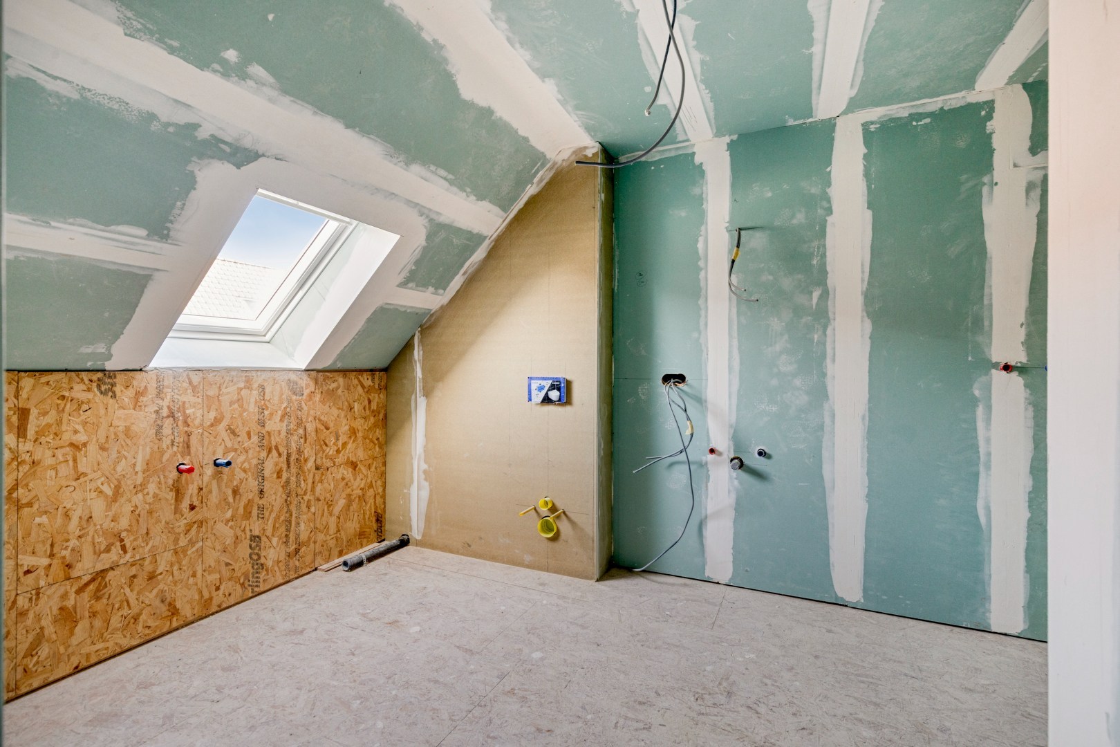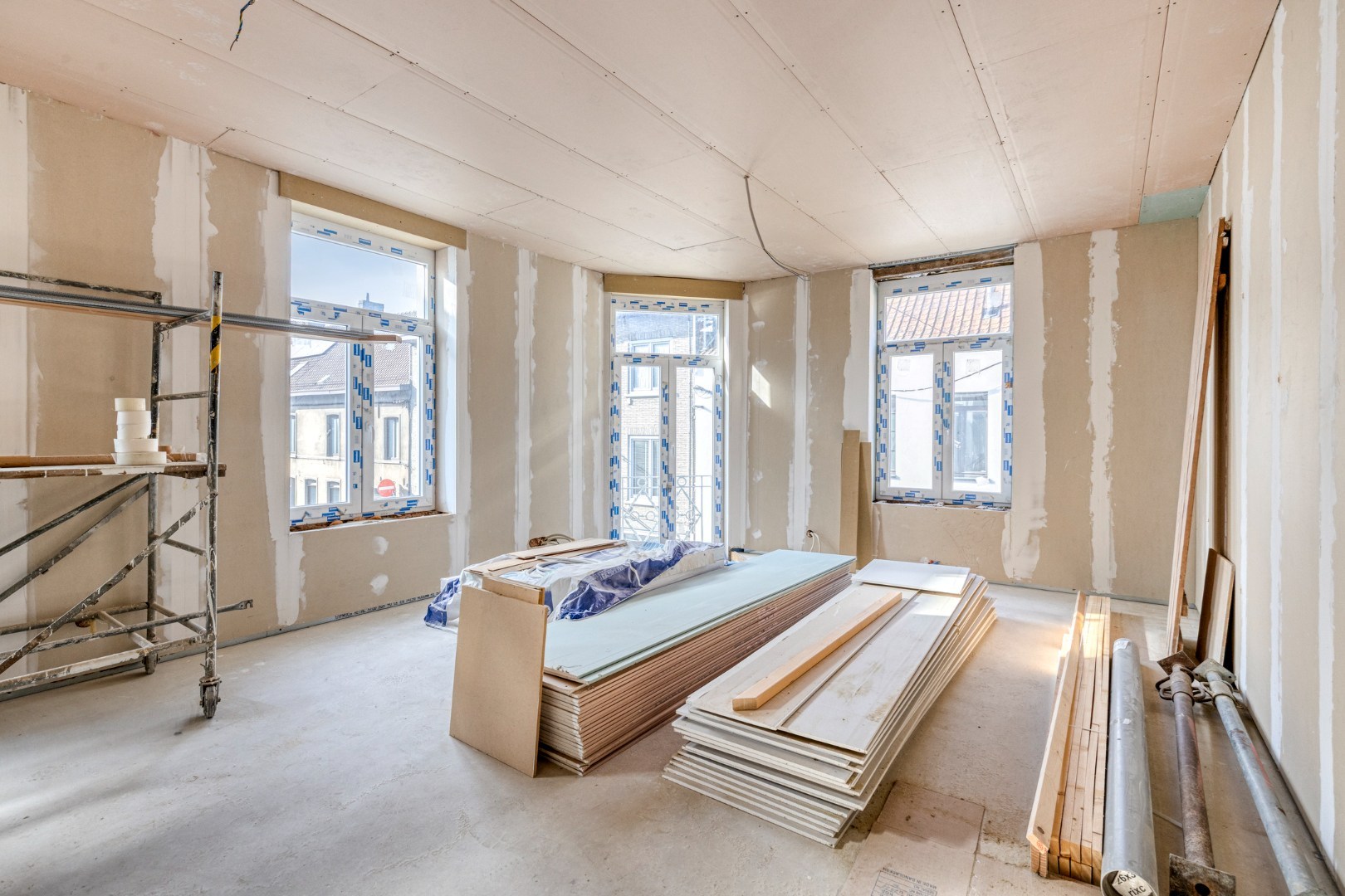 De tweede verdieping beschikt over twee slaapkamers en een badkamer. Het appartement dient nog verder afgewerkt te worden, maar vormt een bijzonder lichtrijke en aangename woonst met veel potentieel.