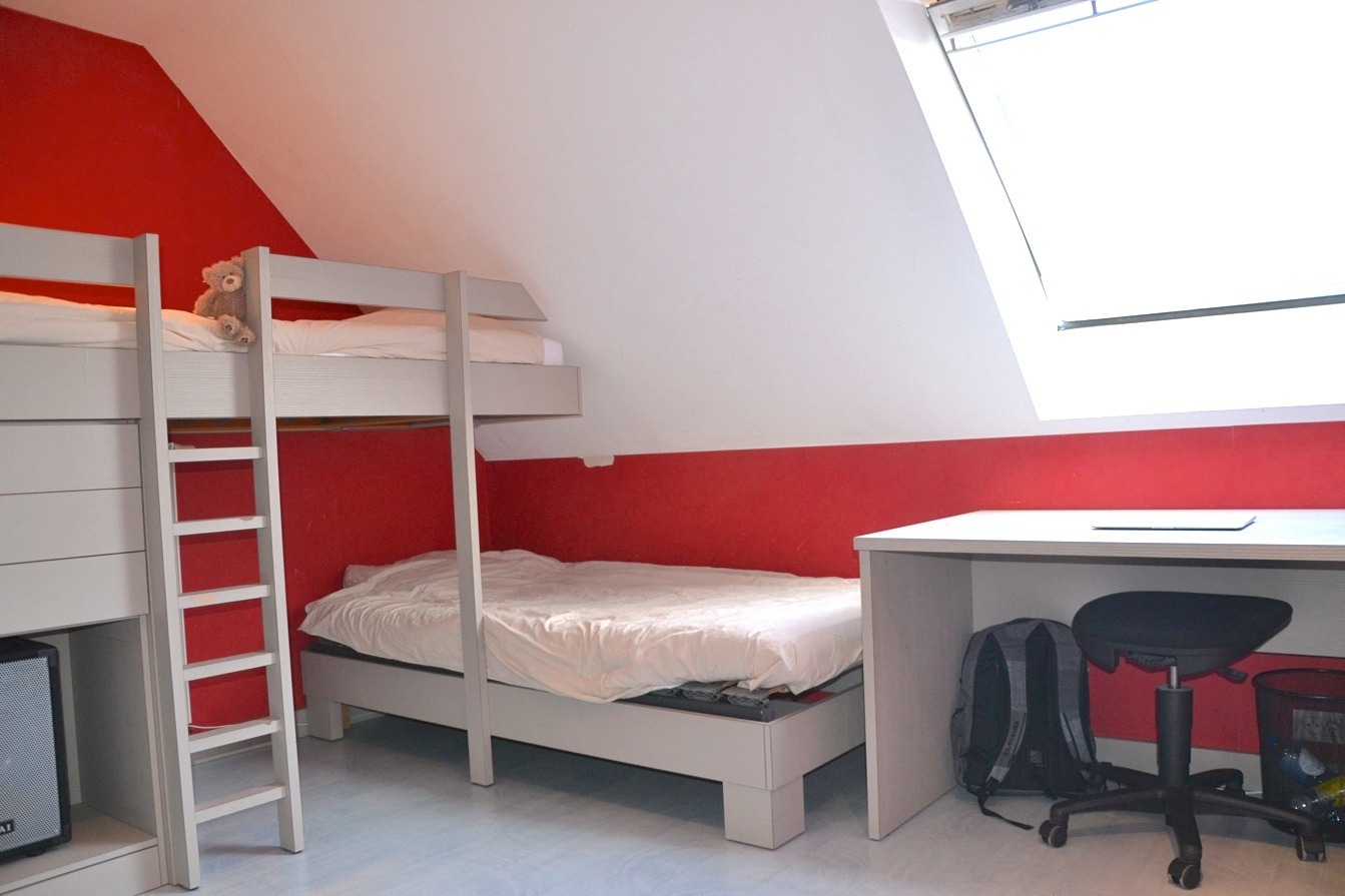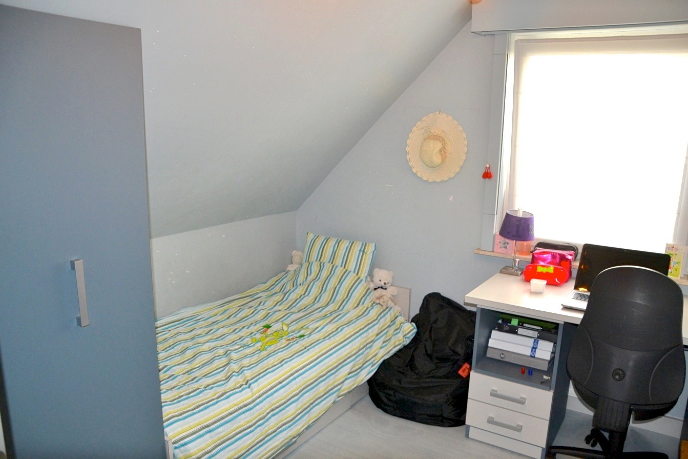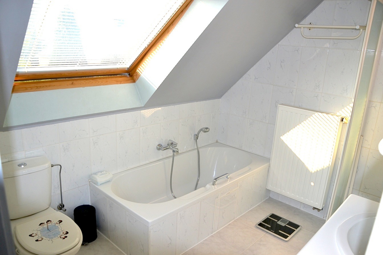 De eerste verdieping beschikt over 3 degelijke slaapkamers en een ruime badkamer. Deze is voorzien van een lavabomeubel, bad, douche en toilet.